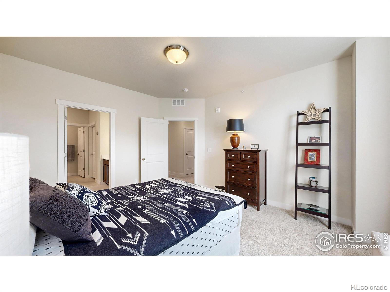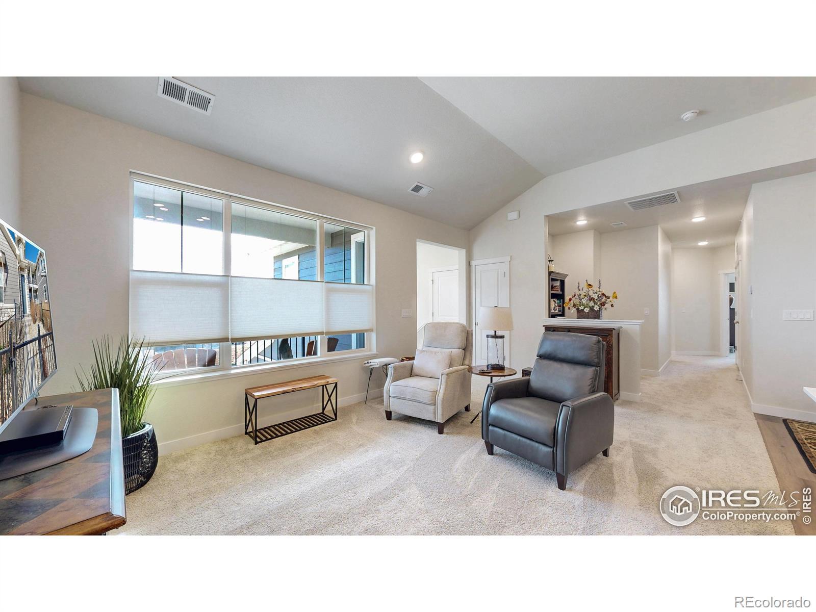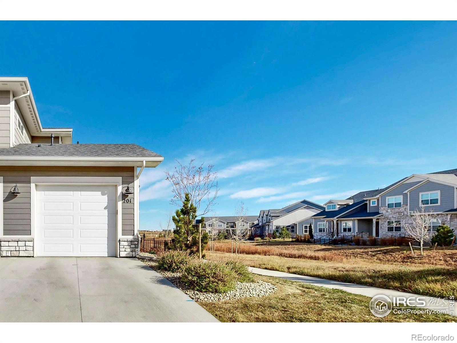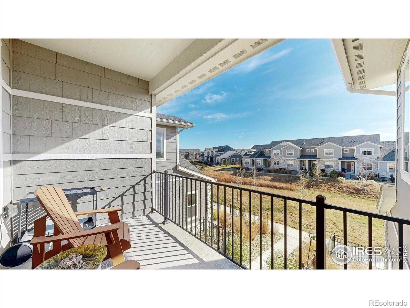 Beautiful, nearly new 3-bedroom, 2-bath condo offering effortless main-level entry with attached garage and spacious upper-level ranch-style living. High ceilings, abundant natural light, and an open-concept layout create an inviting, modern feel. The south-facing entry overlooks peaceful open space, with a private deck also capturing those serene views. Located in the heart of Northern Colorado's Centerra area, enjoy unbeatable access to the interstate, shopping, dining, and community amenities. Neighborhood perks include scenic trails, park areas, and a refreshing pool. Truly better than new with upgraded window treatments throughout-and move-in ready now.