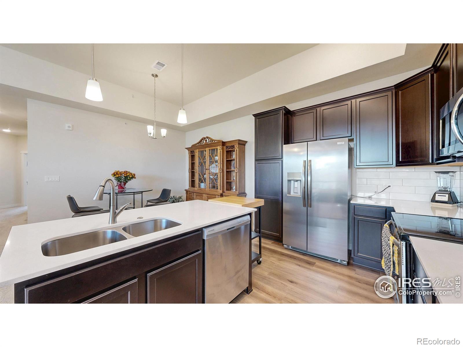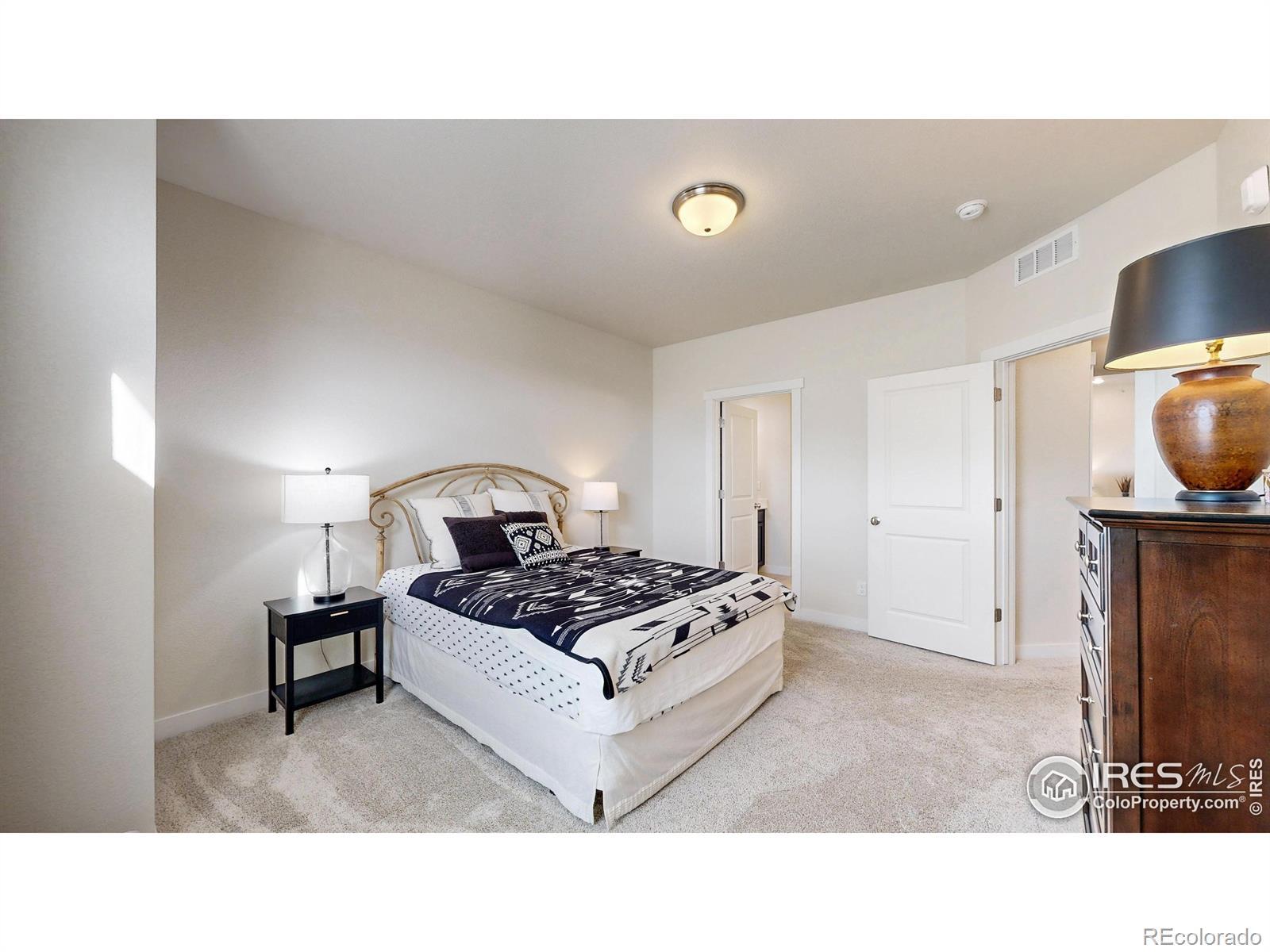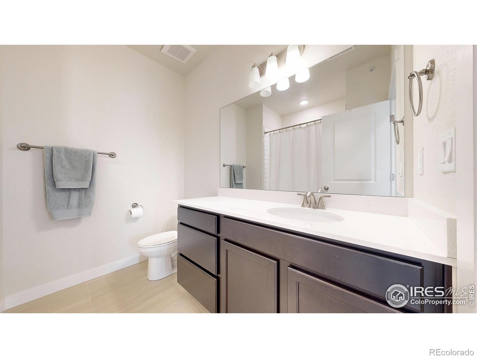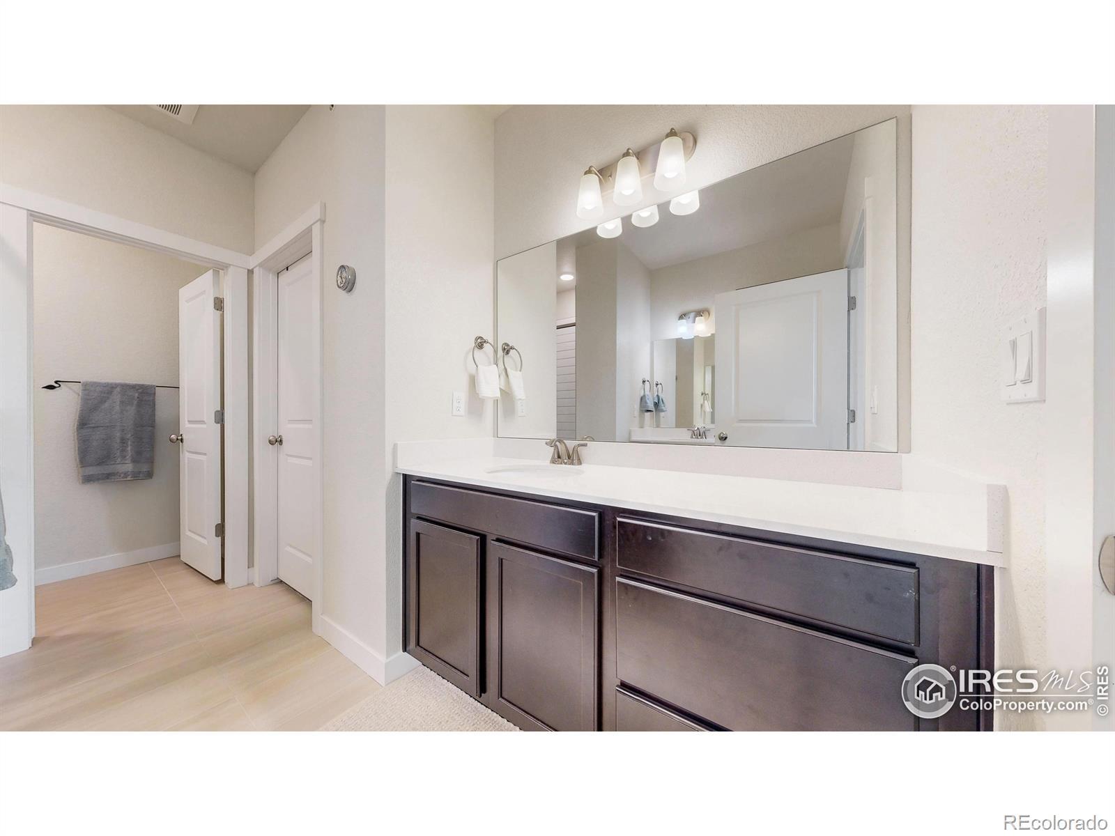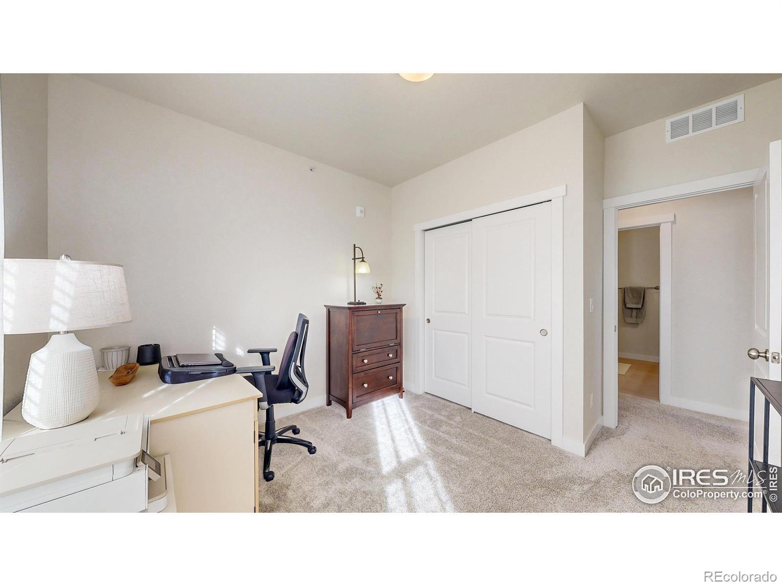 Beautiful, nearly new 3-bedroom, 2-bath condo offering effortless main-level entry with attached garage and spacious upper-level ranch-style living. High ceilings, abundant natural light, and an open-concept layout create an inviting, modern feel. The south-facing entry overlooks peaceful open space, with a private deck also capturing those serene views. Located in the heart of Northern Colorado's Centerra area, enjoy unbeatable access to the interstate, shopping, dining, and community amenities. Neighborhood perks include scenic trails, park areas, and a refreshing pool. Truly better than new with upgraded window treatments throughout-and move-in ready now.