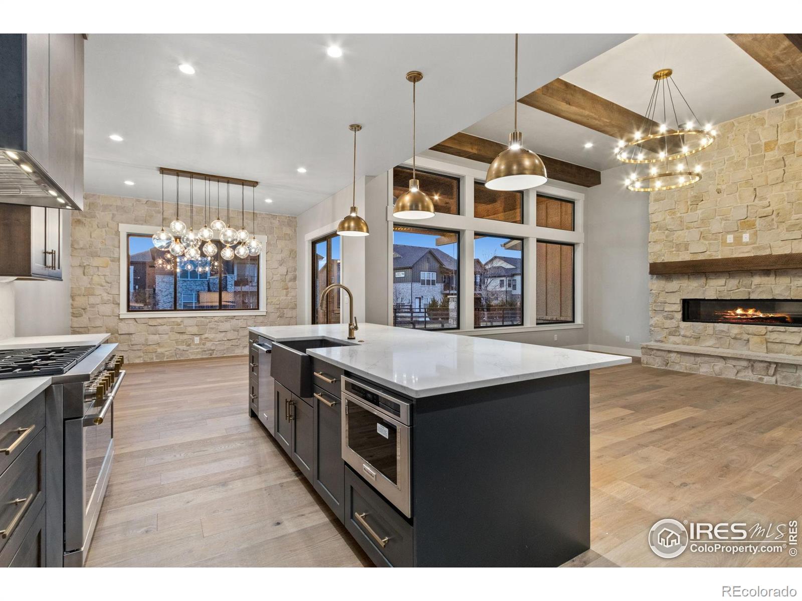 Incredible move-in-ready semi-custom ranch by Haven Builders, showcasing high-end finishes and thoughtful design throughout. This home is built for entertaining, featuring an open-concept kitchen, dining, & living room, plus a spacious basement w/rec room, media area, wet bar & custom wine room. Luxurious primary suite offers a spa-like bath, expansive walk-in closet & direct access to the patio. Additional highlights include wide-plank white oak flooring on the main level, rough-sawn custom beams, gourmet appliances with a built-in Miele coffee machine, and a cozy gas fireplace. Enjoy the covered back patio and an oversized garage. Enjoy pool & tennis courts included in metro district! Move-In Ready Semi-Custom Home by Haven Builders