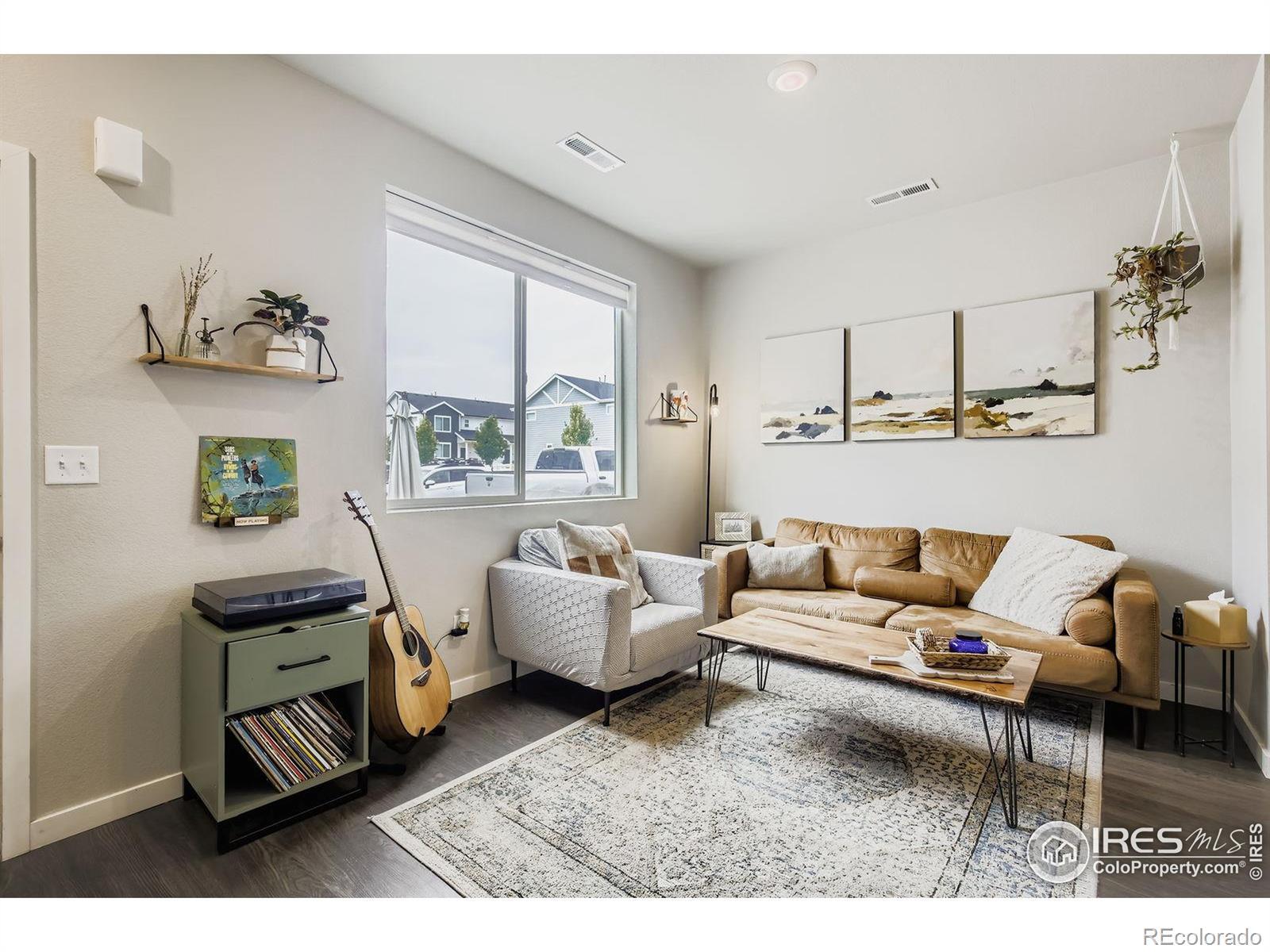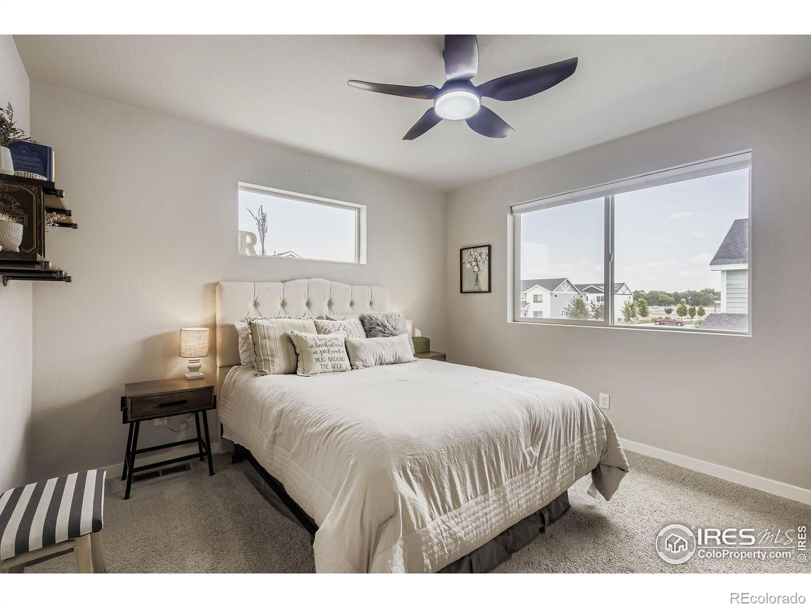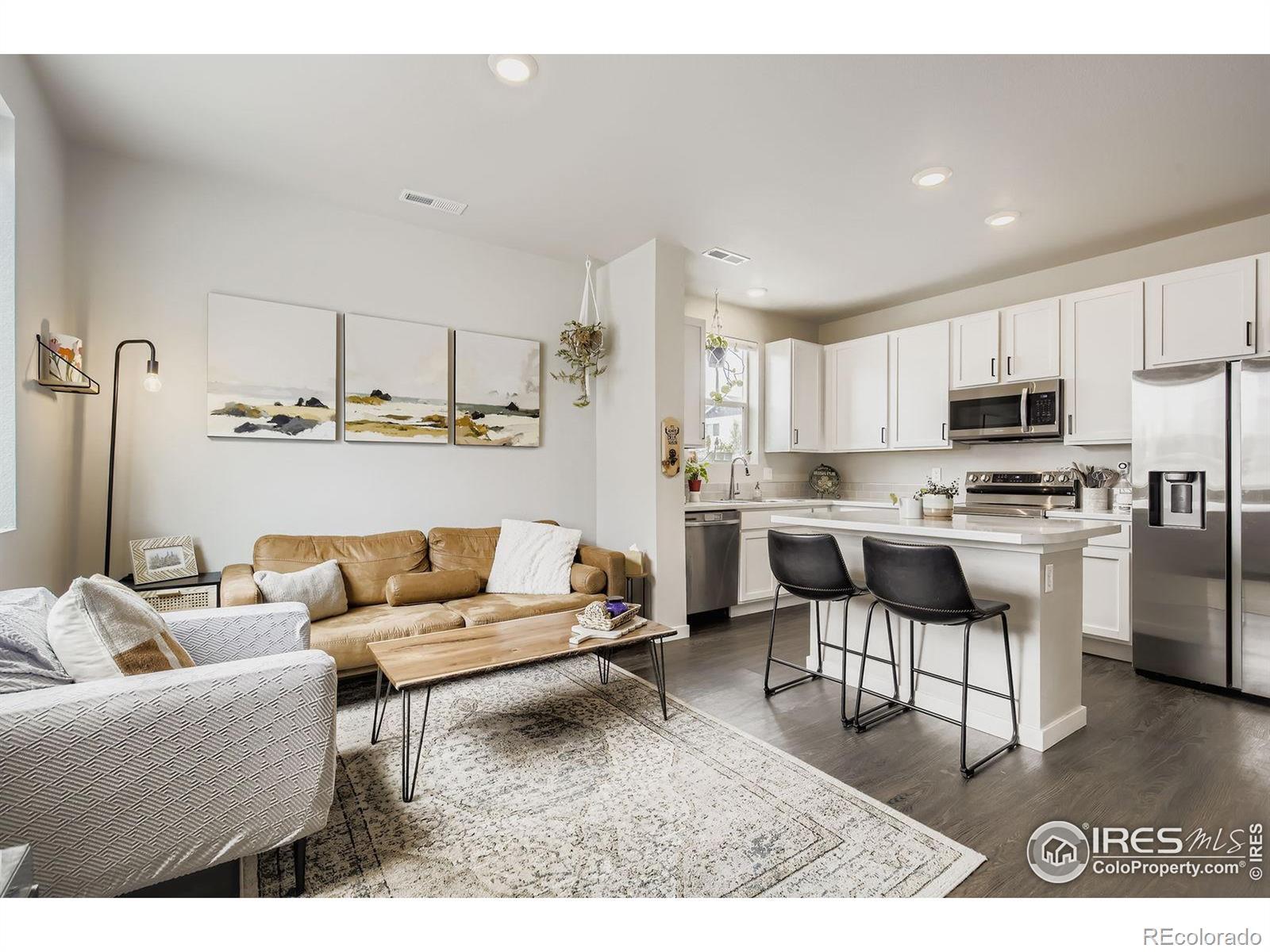 Welcome to this 2 bedroom, 3 bathroom townhome in Ault, CO. Built in 2022 and offering 1,041 sq ft of modern, low-maintenance living. Featuring a spacious 2-car heated garage, central A/C, and a private fenced courtyard, this home is perfect for those seeking comfort, convenience, and the Colorado lifestyle. With nearby parks, schools, coffee spots, playgrounds, and mountain views, it's an ideal primary residence or lock-and-leave getaway. Step inside to soaring 9' ceilings on the main level, durable luxury vinyl plank flooring, and an open Great Room filled with natural light. The kitchen blends style and function with upgraded 42" cabinets, stainless steel appliances, ample storage, a central island, and a breakfast bar is perfect for entertaining or everyday meals. A convenient half bath completes the main level. Upstairs, both bedrooms feature their own bathrooms, providing privacy and flexibility for guests, roommates, or a home office. The primary suite includes a cozy ensuite bath, while the laundry area features a full sized washer and dryer and is just steps away for added ease and convenience. Enjoy evenings on your front porch, ideal for relaxing or hosting friends. With a high-efficiency furnace, thoughtful design, low-maintenance exterior, and plenty of parking this townhome is ready to welcome its next owner.