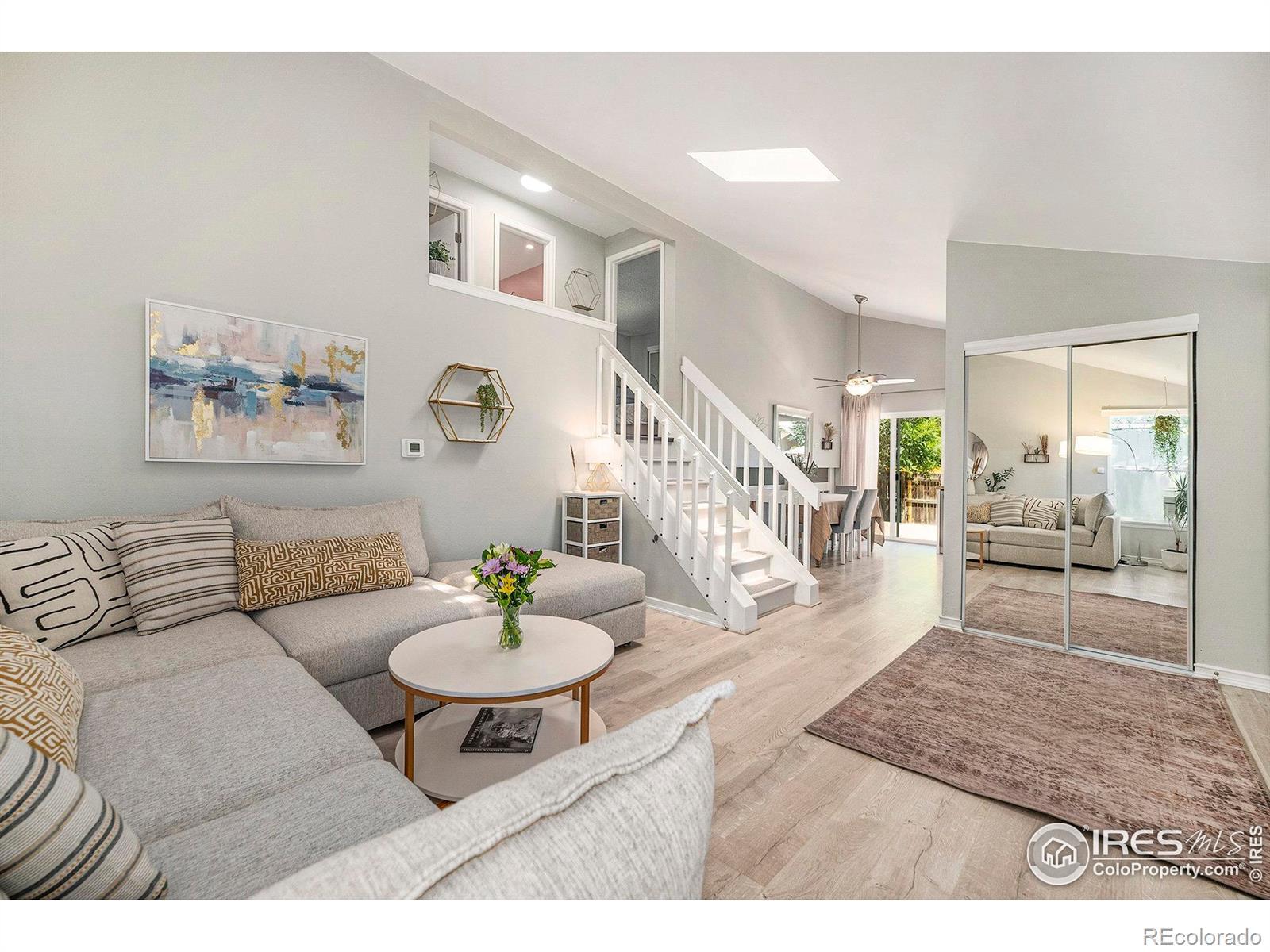 Light and bright tri-level home on a large corner lot. Tasteful, modern updates throughout including all major systems (Roof, Windows, Kitchen, Baths, Appliances). Featuring an open main level with vaulted ceiling and skylights. 4 bedrooms, 2 baths, durable surface laminate flooring throughout. Low maintenance interior, 2-car garage. No HOA, no metro tax. Fully fenced back yard with expansive deck, patio, mature trees, and storage. 24 hour notice to show (tenant occupied). Lot backs to Hwy 66.