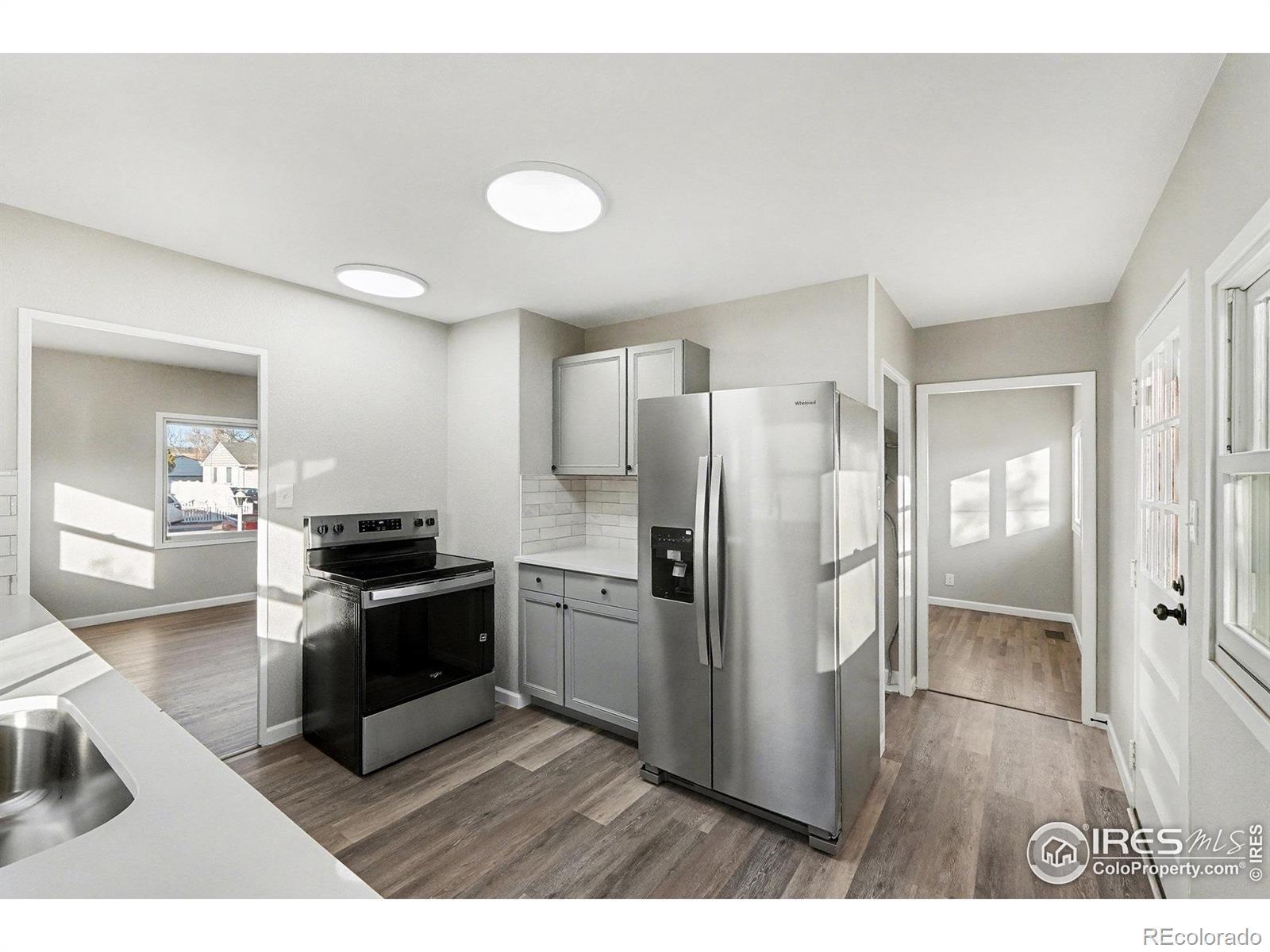 Must See! This beautifully renovated ranch blends classic character with modern finishes. Refinished original hardwood floors welcome you into the light-filled living room and continue through the main level. The brand-new kitchen features stylish new cabinets, quartz countertops, tile backsplash, and stainless steel appliances, with a separate dining room just off the kitchen for easy entertaining. The main floor offers 2 bedrooms and an updated bath and living room, while the fully finished basement adds 2 bedrooms with egress windows, a large recreation/family room, and a refreshed second bath. Several new windows, new textured walls, and fresh interior and exterior paint make the home feel truly move-in ready. Outside, you'll find alley access to a 2-car detached garage with attached covered workshop, plus a storage shed and NO HOA. Central air, a newer furnace, and all-new appliances add everyday comfort and efficiency. Just two blocks from the elementary school with convenient access to shopping and parks-this one is ready for you! Seller is a licensed Realtor in the State of Colorado.