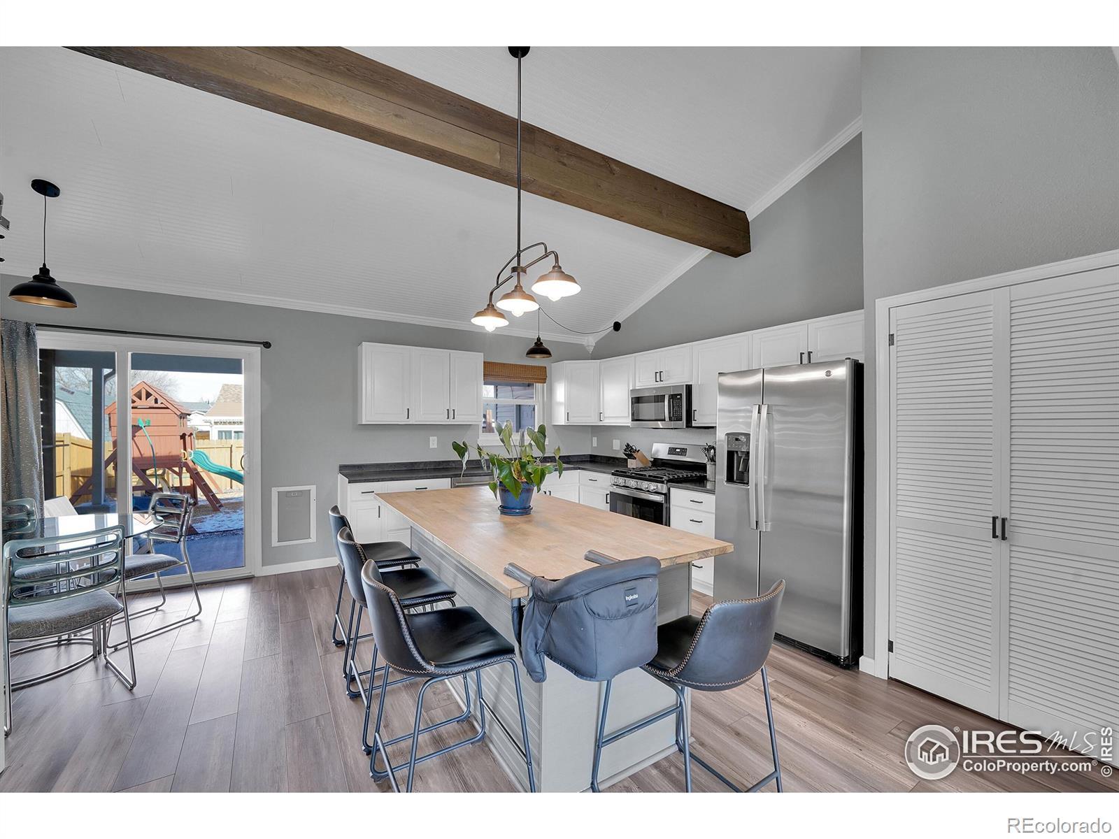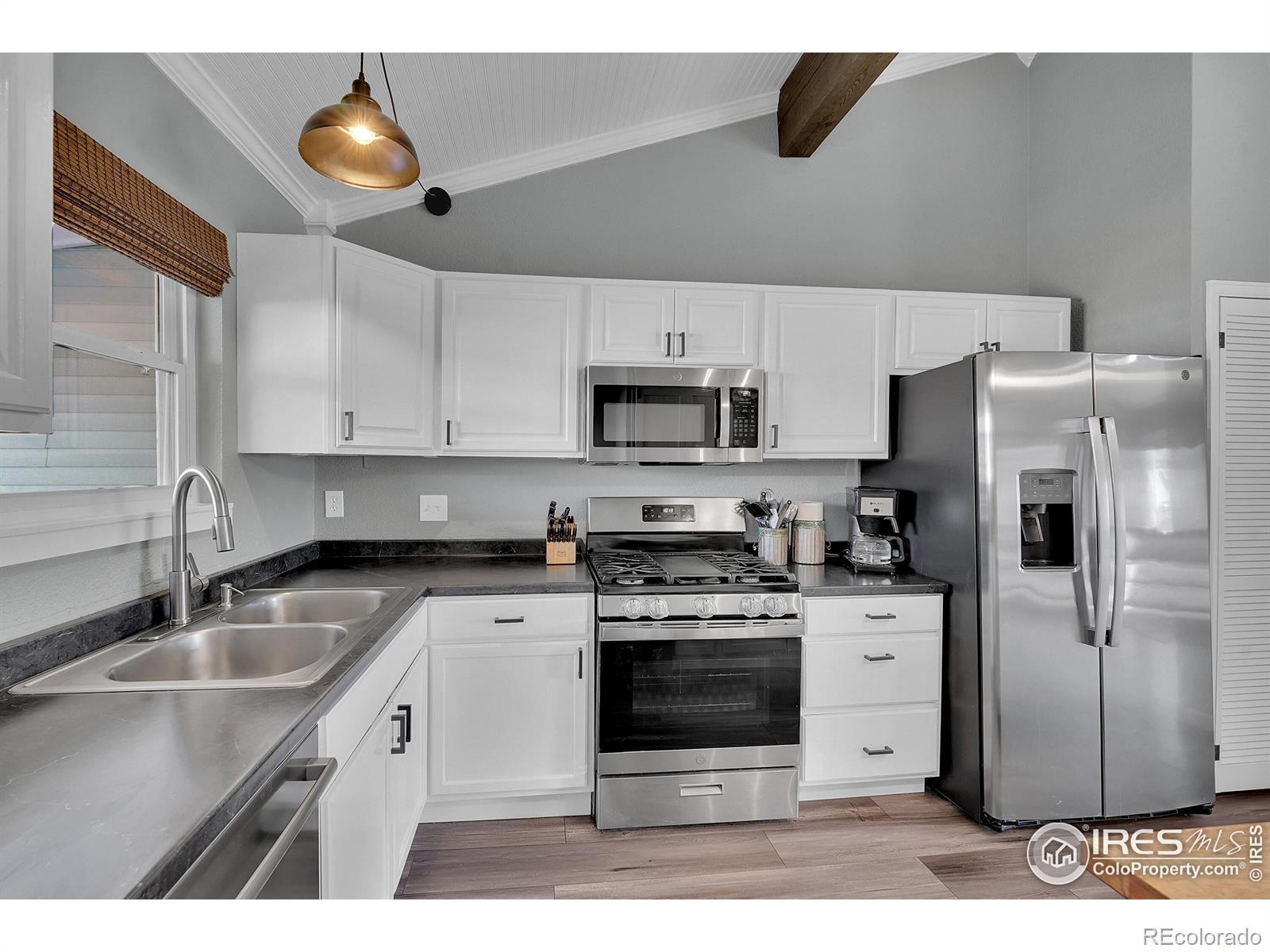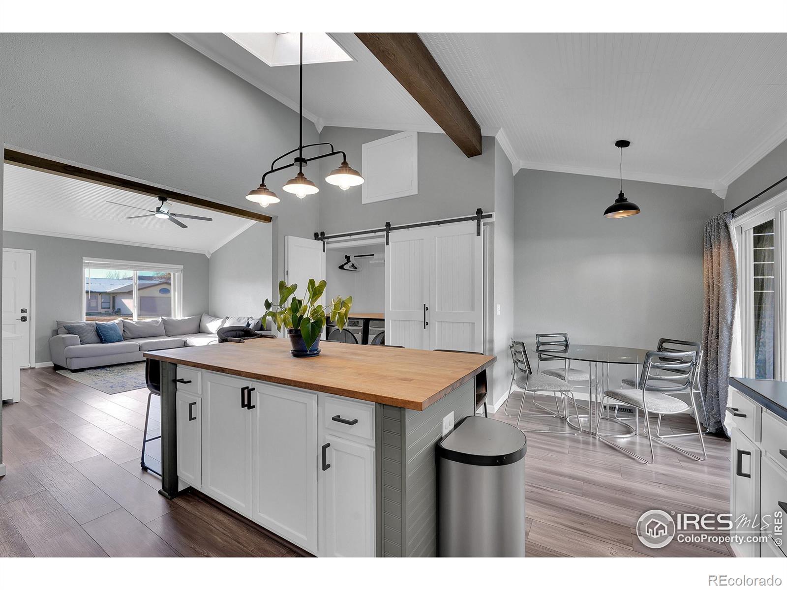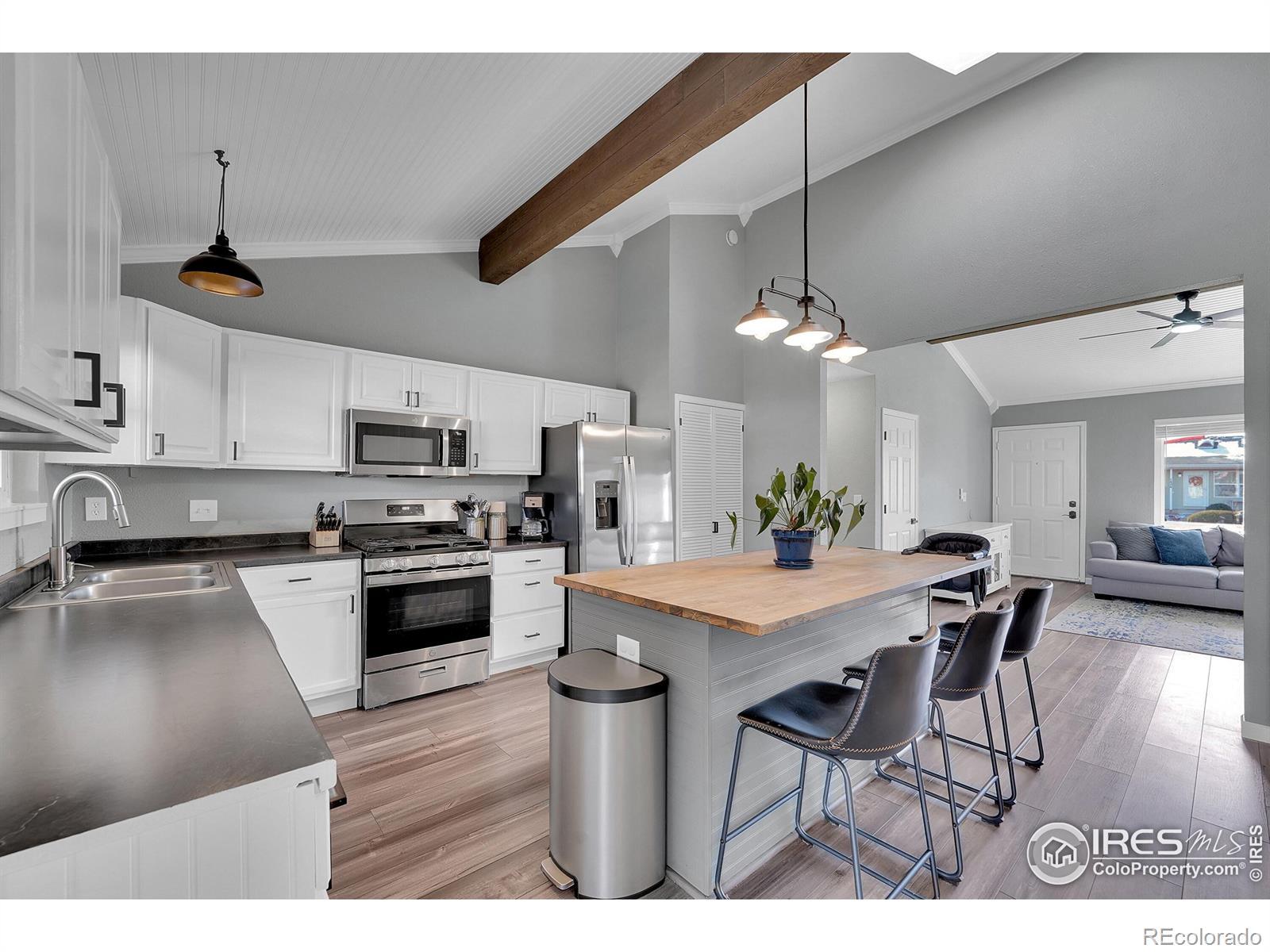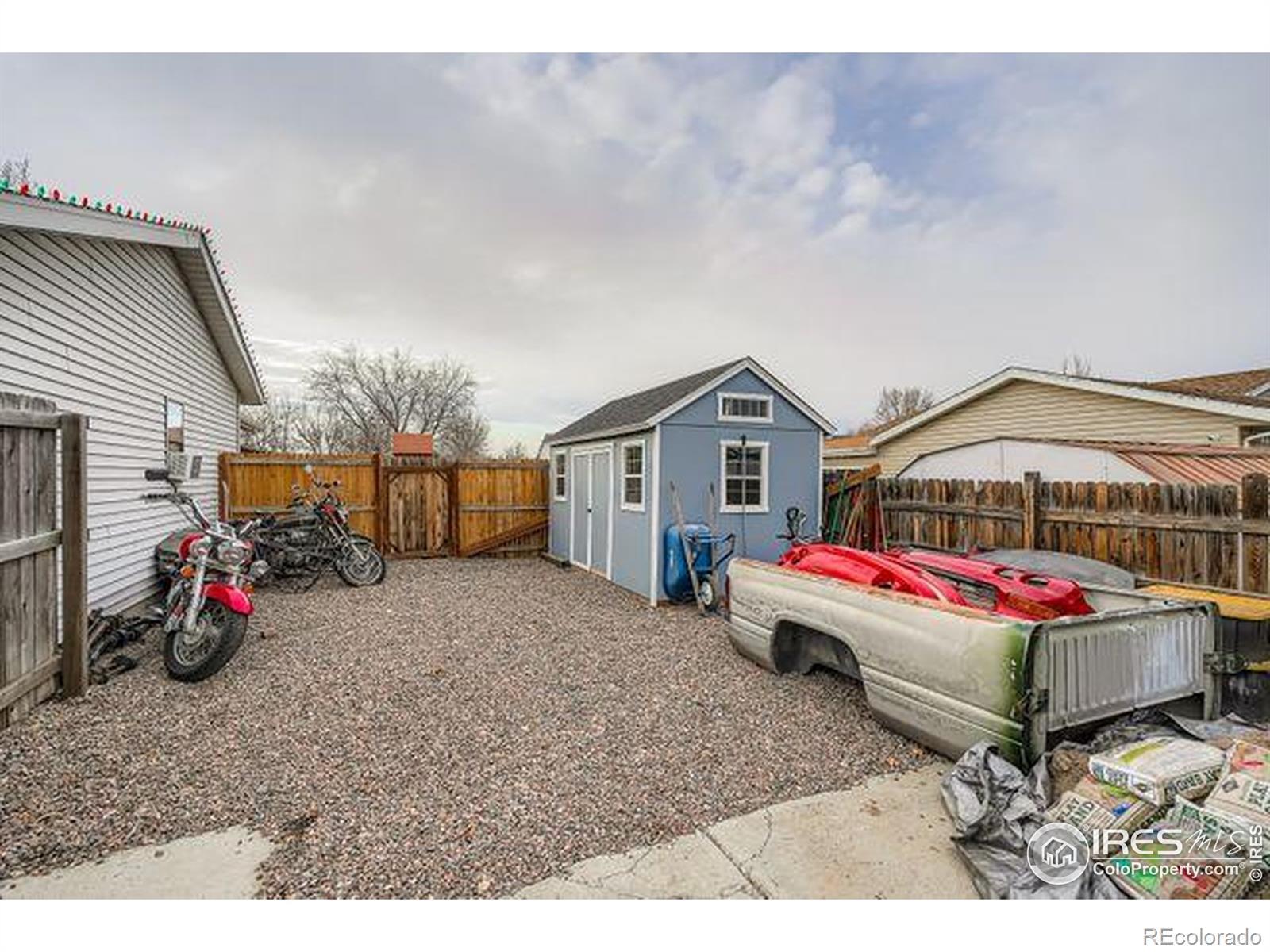 Discover this beautifully remodeled, turnkey home set on a spacious corner lot with no HOA, just moments from Coyote Creek Golf Course. Tall vaulted ceilings and an open, airy layout create an impressive sense of space that far exceeds expectations from the exterior. The owners have invested approximately $40,000 in thoughtful upgrades, making this home truly move-in ready. The main living area features a wood fireplace, perfect for cold Colorado winters, and flows effortlessly into the kitchen and dining spaces, creating an inviting atmosphere for daily living and entertaining. The primary suite includes its own private bathroom, while two additional bedrooms sit across the hall alongside another full bath, offering a functional and comfortable layout. Major improvements include a tankless water heater, newer AC, newer appliances, a new washer and dryer, custom barn doors, a new garage door, and a newer roof. There is also a full crawl space for interior storage. Outdoors, the xeriscaped backyard offers low-maintenance enjoyment with a covered patio ideal for gatherings. The side yard next to the detached garage provides concealed parking for a boat or RV and includes a utility shed for additional storage. The front yard is also fully fenced for peace of mind and elevated visual aesthetic appeal. With quick access to I-76, Hwy 85, and Hwy 52, commuting in any direction is a breeze. This is a rare opportunity to own a tastefully updated home in a convenient location, ready for you to move in and enjoy.