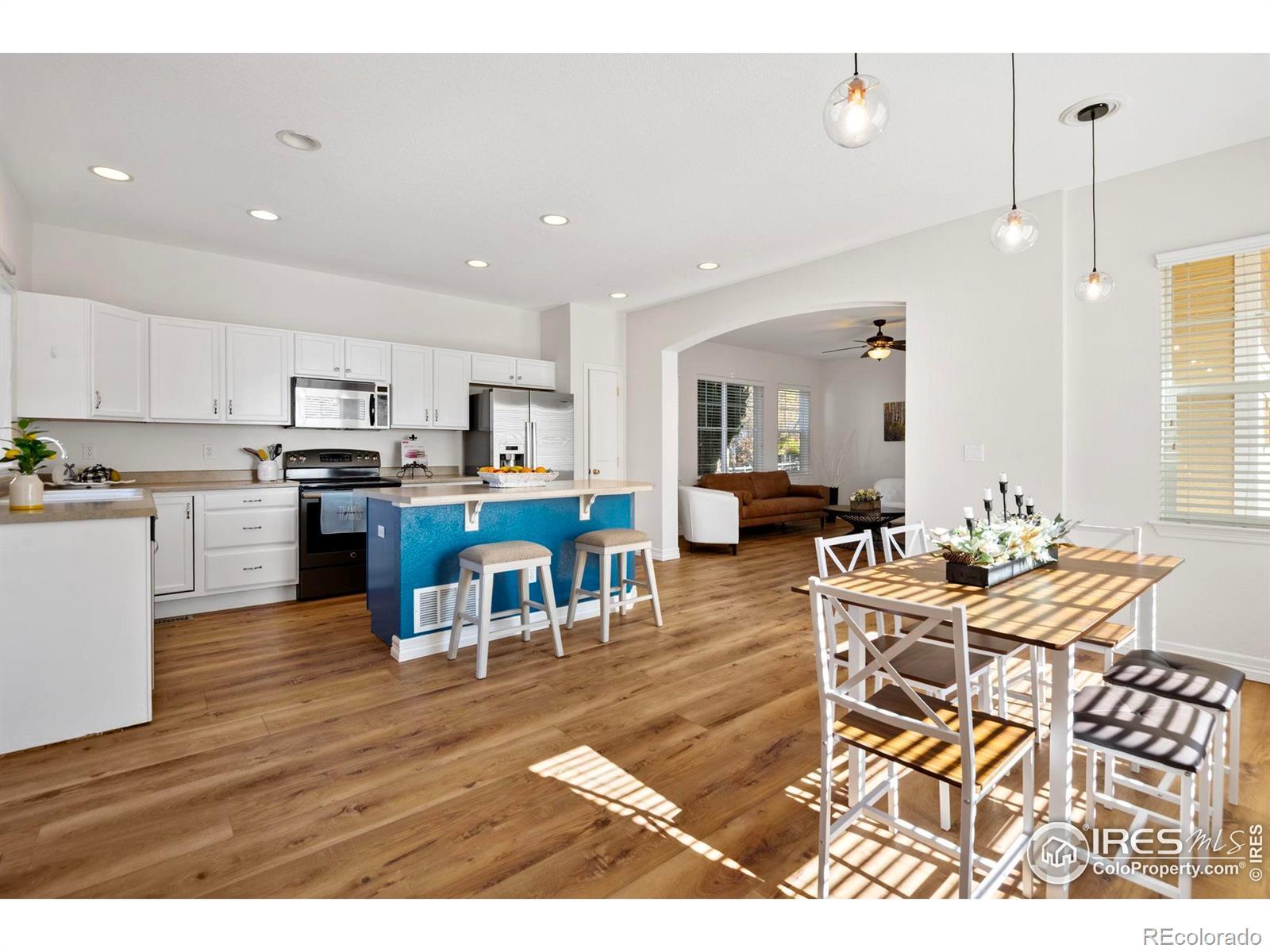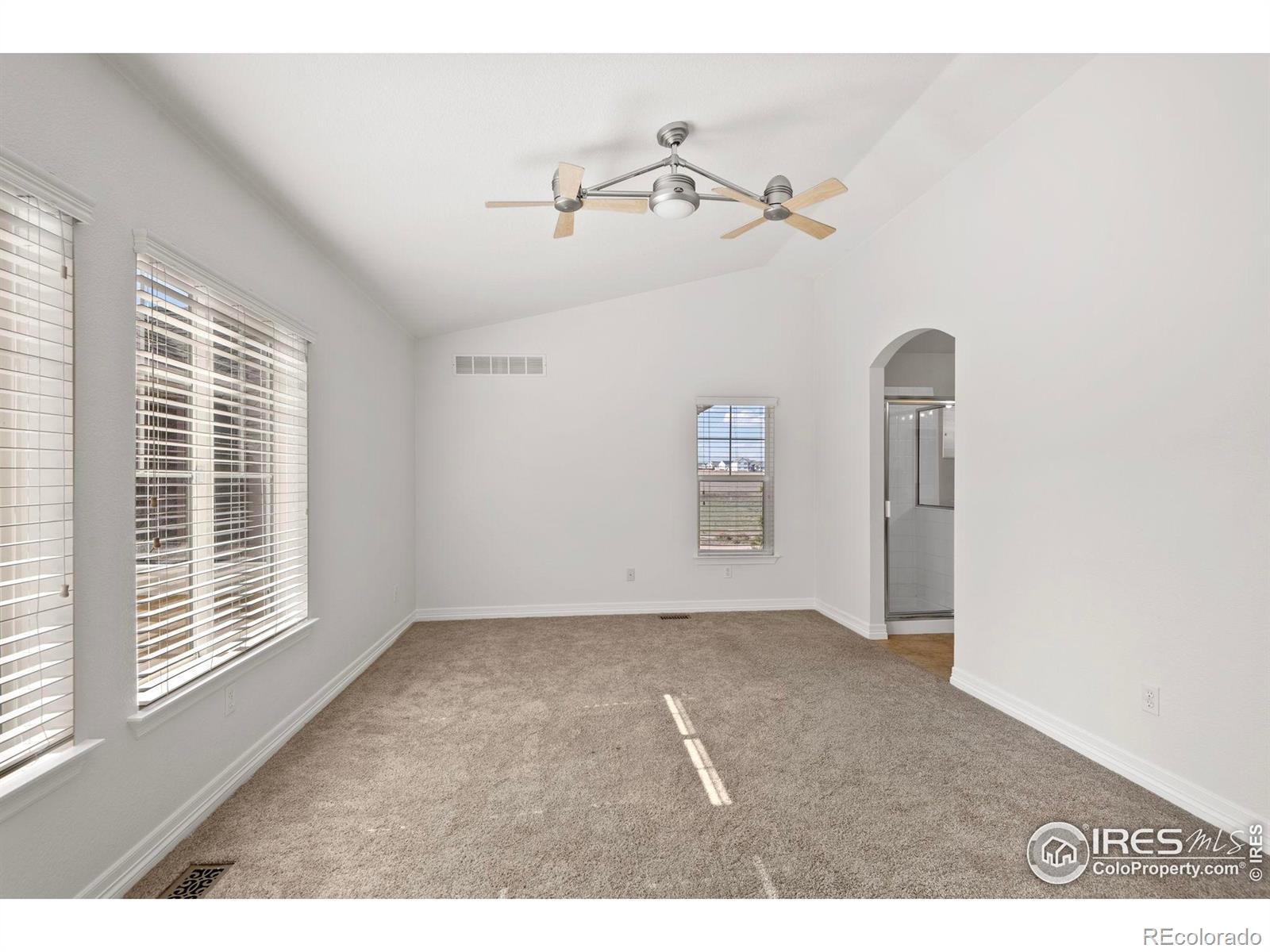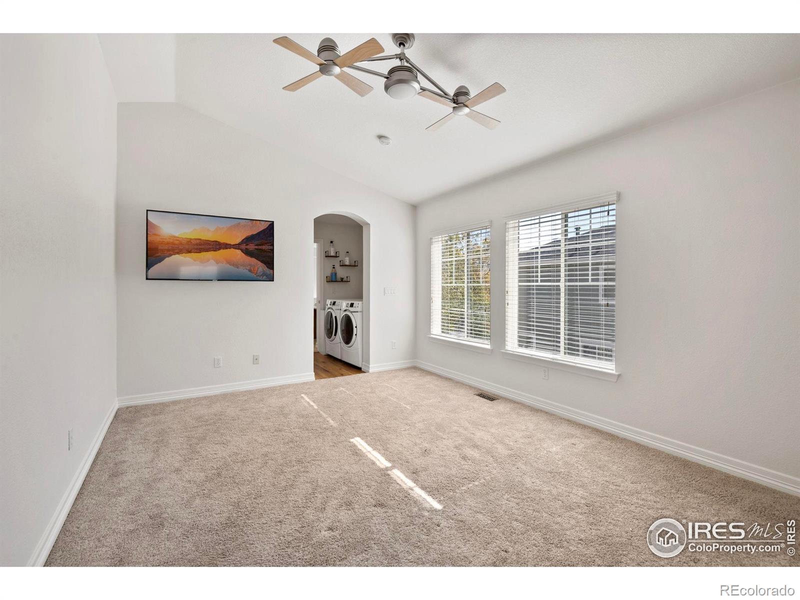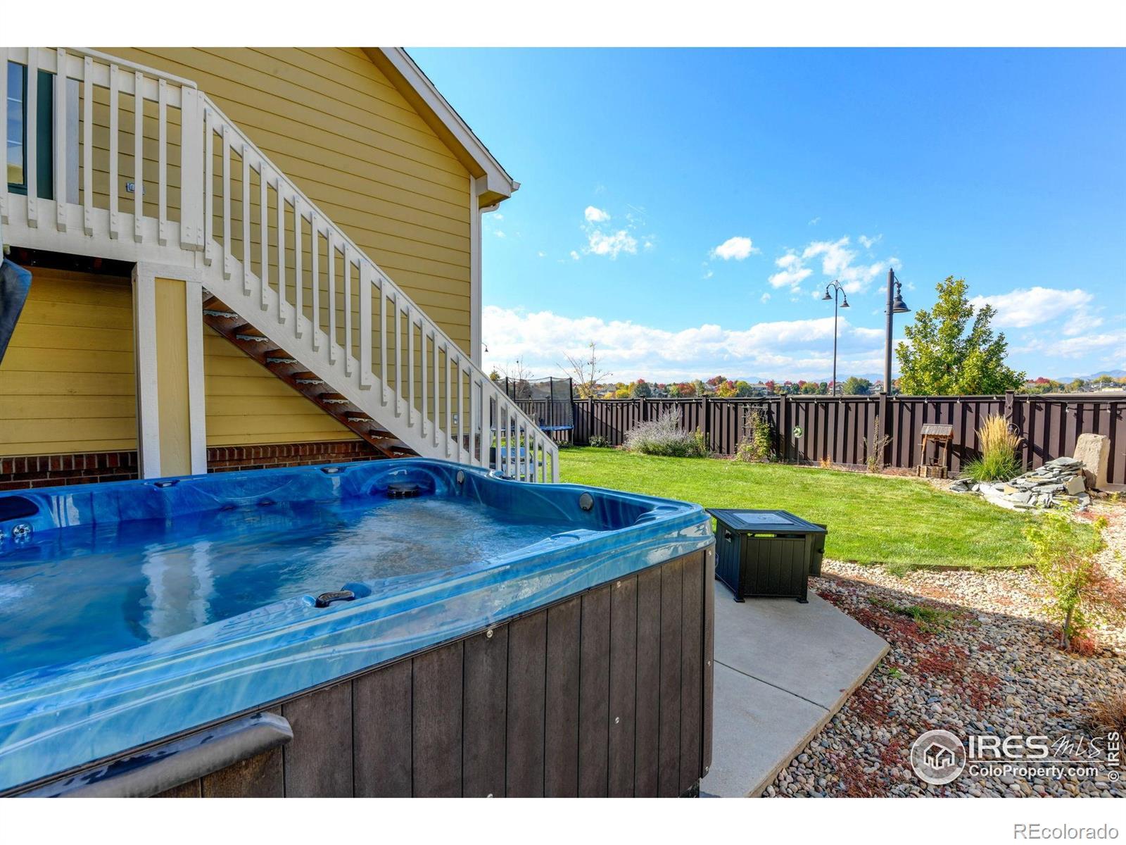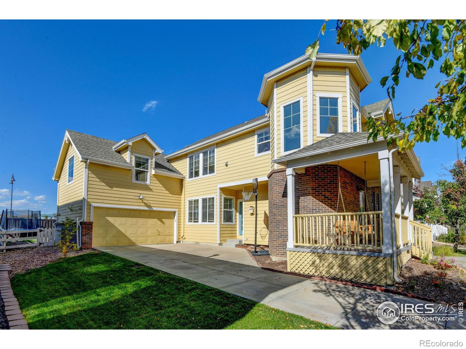 Magnificent mountain views and a prime location across from the community park! This beautiful Broadlands home features a versatile carriage house with its own bathroom-ideal for guests, in-laws, multi-generational living or older children. Enjoy peaceful mornings on the front porch swing overlooking the park. Inside, the main level offers an open layout with new LVP flooring, fresh paint, and a cozy gas fireplace in the living room. The kitchen features stainless steel appliances, a center island, pantry, and new overhead lighting, while the large dining area is perfect for gatherings. Upstairs are three spacious bedrooms including a primary suite with a five-piece bath and large walk-in closet. A built-in desk in the loft creates the perfect homework or home office nook. The partially finished basement provides additional space for recreation or media use. Step out back to enjoy the mountain views from the patio and relax in the included hot tub. The fenced, landscaped yard offers privacy and charm. The carriage house, accessed from the rear stairs, adds incredible flexibility and value. Located in The Broadlands, one of Broomfield's most desirable communities featuring golf, pools, trails, and multiple parks, this home delivers comfort, beauty, and convenience in every detail.