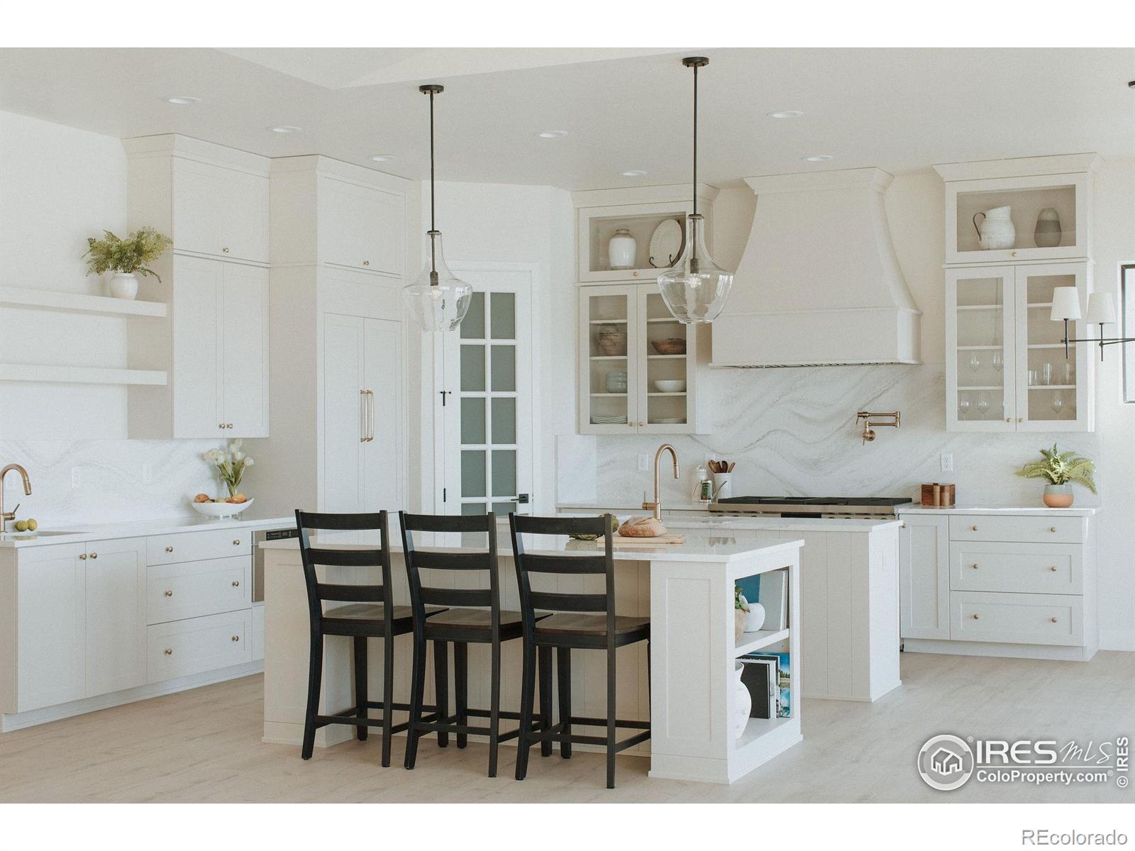 This thoughtfully designed ranch sits on a premium garden-level lot in the sought-after Greenspire at Windsor Lake community. Backing to a tranquil canal that flows directly into Windsor Lake, it offers beautiful water and foothill views from the great room, covered patio, and primary suite. With walking paths leading to downtown Windsor, the lake, and year-round community events, this location perfectly combines small-town charm with Colorado's outdoor beauty. Inside, arched front doors open to vaulted ceilings with exposed beams and large windows that fill the home with natural light. The soft, airy color palette and warm wood tones create a welcoming feel throughout. The open layout flows seamlessly between the kitchen, dining, and great room, where a stone fireplace and custom built-ins provide a comfortable place to gather. The gourmet kitchen is the centerpiece of the home, featuring soft off-white cabinetry, quartz countertops, timeless brass fixtures, and a secondary prep sink. Designed for both everyday living and special occasions, it's equally suited for family dinners or casual evenings with friends. The primary suite is tucked away for privacy and offers a spa-like bath with dual vanities, a freestanding soaking tub, and a walk-in shower, creating a serene retreat to unwind at the end of the day. The finished garden-level basement expands the living space with a large recreation room, two bedrooms, a full bath, and a wet bar, perfect for entertaining or hosting overnight guests. A dedicated theater room completes the space for movie nights or game-day gatherings. A spacious 3-car plus half-tandem garage provides ample room for storage, hobbies, and all the gear that comes with Colorado living. Full yard landscaping and fencing are included, allowing you to enjoy your new home from day one. Schedule your private tour today and experience the best of life at Greenspire at Windsor Lake.