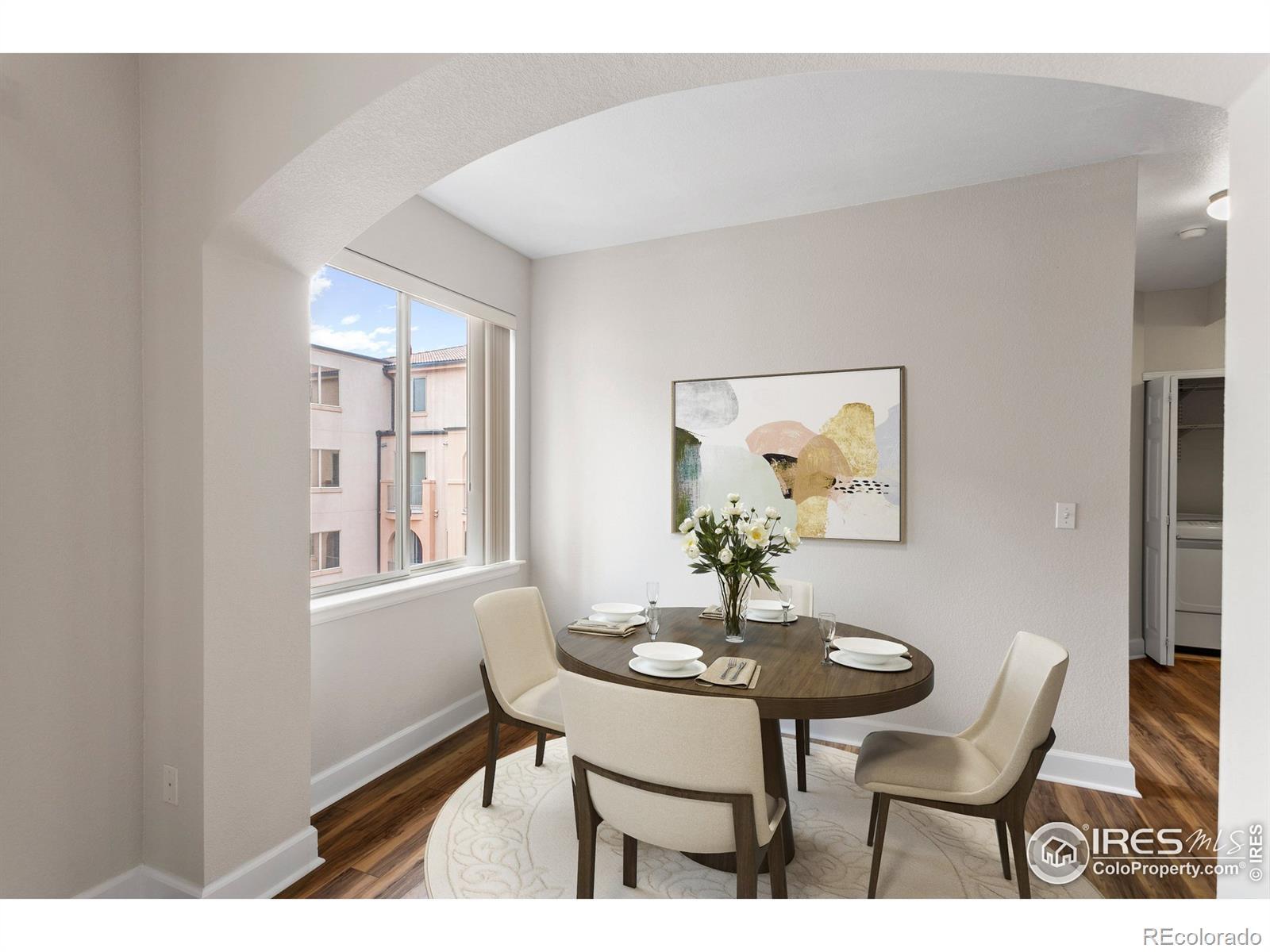 Prime location on 3rd floor overlooking a well-designed and inviting courtyard, with mountain views from three balconies. This spacious condo boasts LVP flooring, granite countertops, a custom coffee bar and pantry with slow-closed doors, gas fireplace, 9'ft ceilings and arched interior walls adding charm and character. Newer central A/C, water heater, W/D and appliances. Bedrooms enjoy individual bathrooms and are separated by the living and kitchen spaces, providing privacy. Plenty of room for your personal items in an expansive walk-in closet in the primary suite or your private storage unit in the heated and secured underground garage. Vistoso provides one parking spot and bike racks in garage and plenty of onsite parking for guests. Close proximity to CU, Hwy 36, grocery, and downtown Boulder. Pets allowed with restrictions.