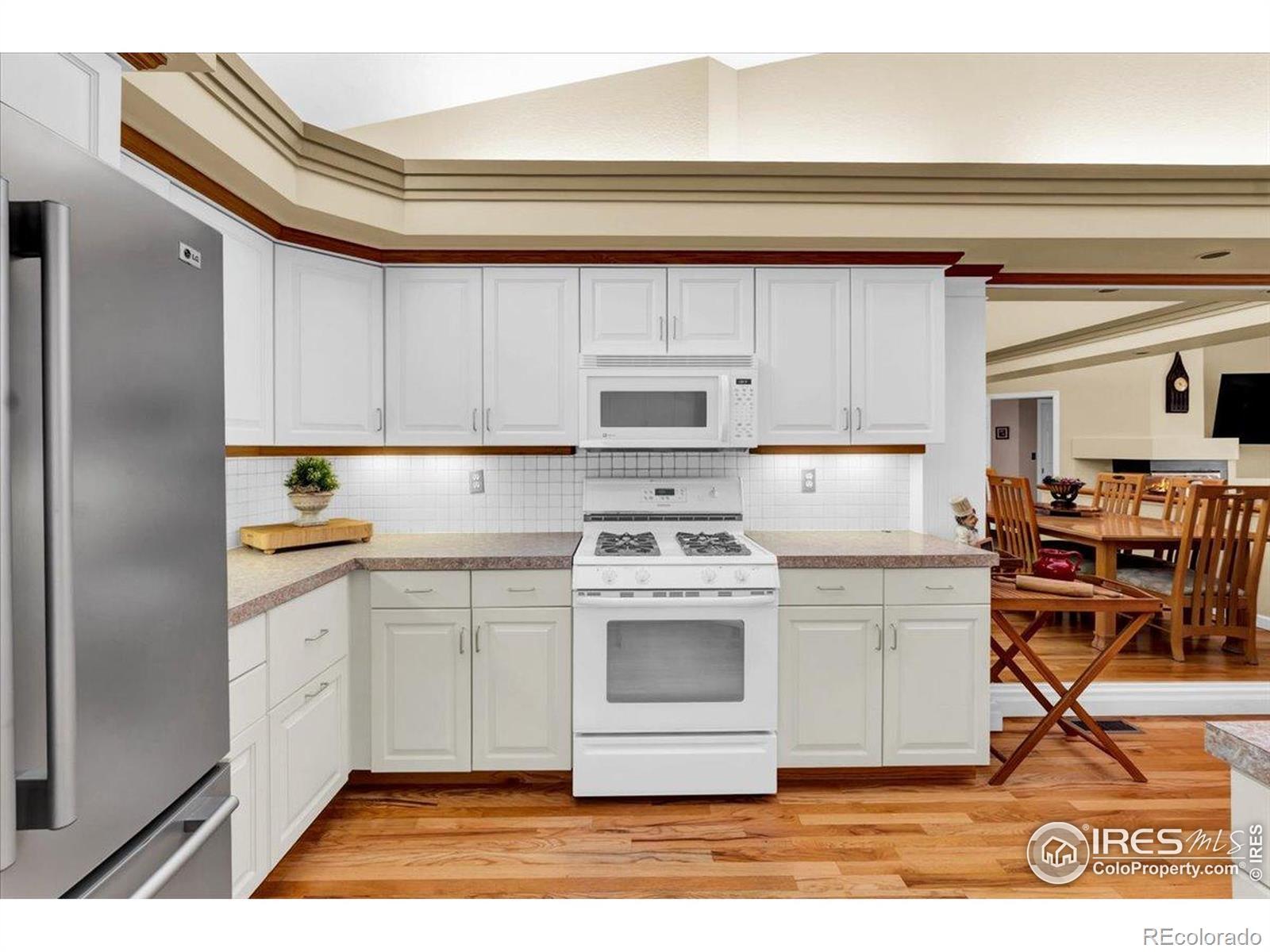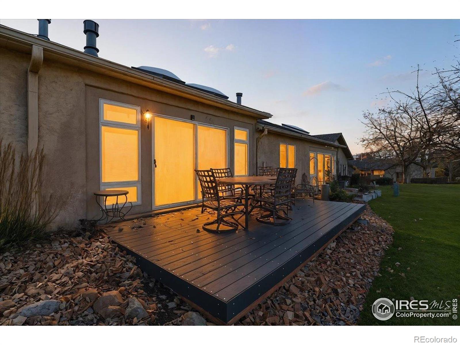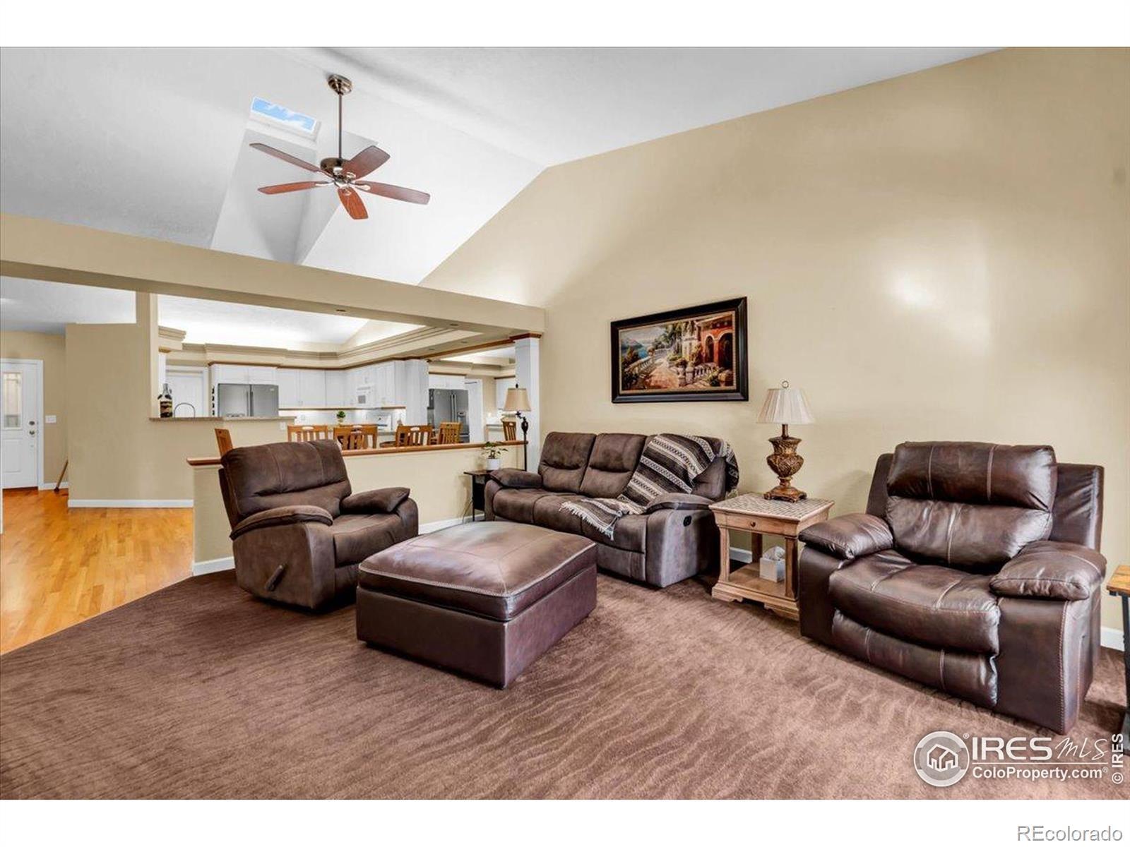 Discover this "must-see" condo adjacent to the Greeley Country Club, blending comfort and style with an entertaining floor plan perfect for easy, no-maintenance living. Step into a light-filled space highlighted by an open floor plan with cathedral ceilings and soaring skylights. This perfectly maintained home features 3 bedrooms and 3 baths, including a tranquil, enclosed tiled sunroom with a freestanding gas fireplace, making it an ideal retreat for year-round enjoyment. From there, move effortlessly outdoors onto a durable Trex sundeck that opens directly onto a lush greenbelt, offering a Colorado oasis for relaxation or entertaining. The spacious finished basement provides versatile extra living space and the 3rd bedroom/bathroom. There's no lack of storage space either! Practical updates ensure peace of mind and minimal upkeep, with a brand-new HVAC system installed in 2024 and a new water heater added in 2025. Completing this fantastic package is an oversized two-car garage, offering abundant storage and built-in workbench. Experience seamless indoor-outdoor living in a prime Greeley location without the exterior maintenance worries.