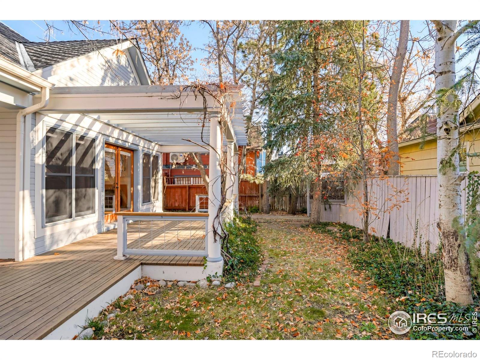 Timeless charm and abundant natural light define this enchanting alley house, privately tucked within the Whittier neighborhood Just moments from vibrant Pearl Street, this residence, built in 1987, offers exceptional livability with no HOA, an inviting front deck and rich southern exposure. Cathedral ceilings rise over an open-concept living and dining area anchored by warm hardwood flooring and a cozy gas fireplace. A bright kitchen offers generous cabinetry and effortless flow for daily living. French doors extend to a south-facing deck with a pergola - a serene setting for indoor-outdoor dining and entertaining. Three bedrooms include two on the main level for flexible guest or office use, while the secluded upper-level primary suite features a walk-in closet, full bath and a loft-style flex space overlooking the living room. Complete with a small, low-maintenance yard perfect for pets or gardening and a one-car carport, this is downtown Boulder living with privacy, charm and sunlight at its core.