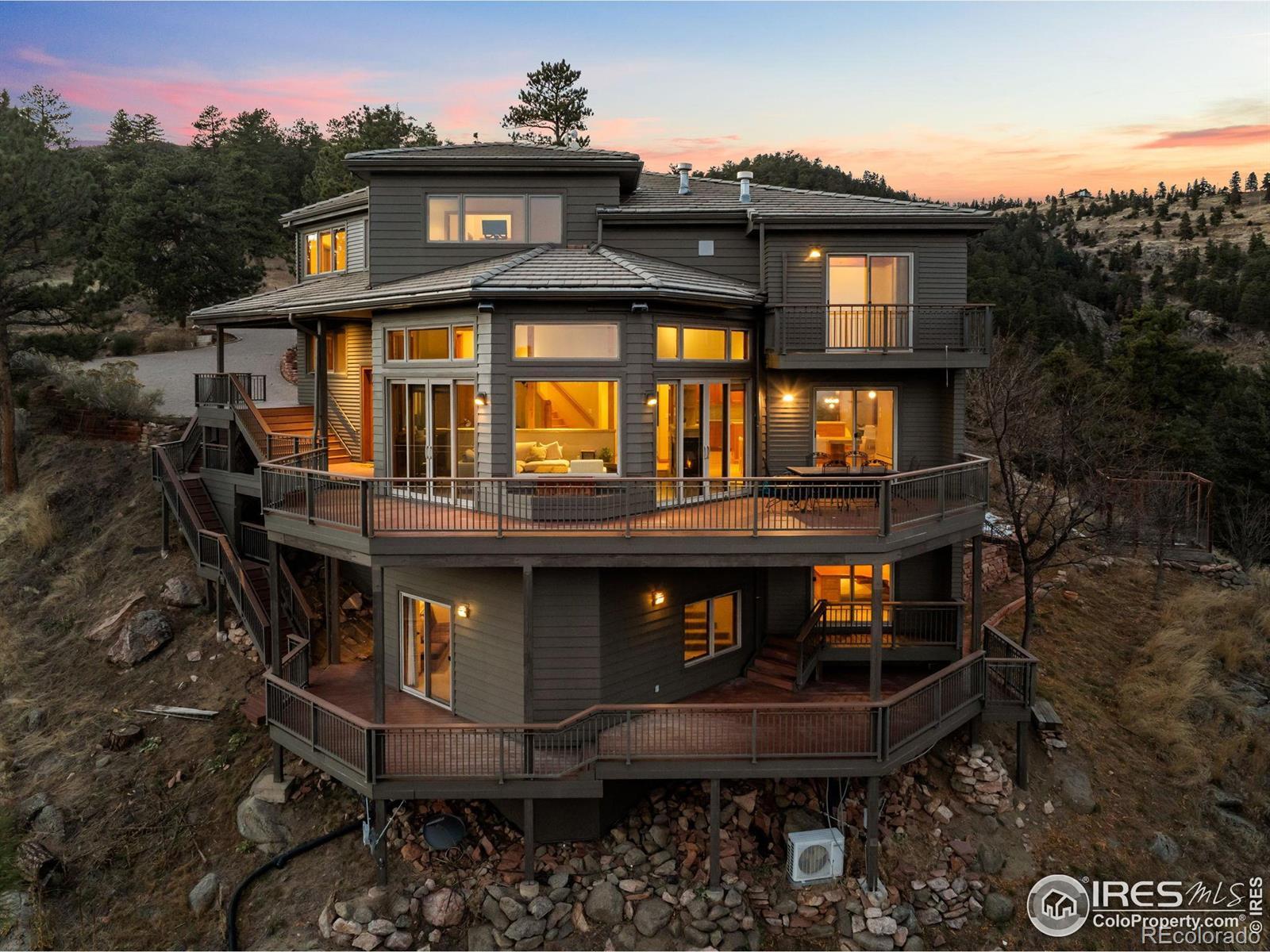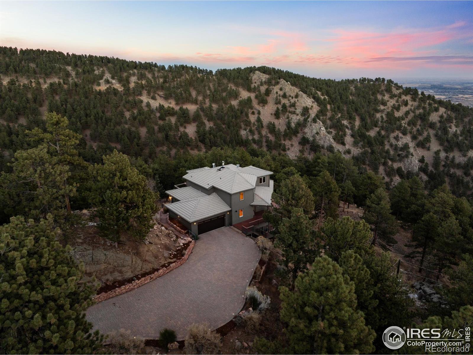 Just eight minutes from Broadway Street, in a secure, gated community, 1448 Carriage Hills Drive soaks up sun across the entirety of its 22 acres. Multi-level, wrap-around decks, windows and eastern exposure guarantees maximum natural lighting no matter the season. 1448 Carriage creates a rare balance between secluded mountain living and urban accessibility. The gated community keeps the privately maintained roads in pristine condition for any winter storms while the at-home garden and ability to own horses ensures the possibility of living off the land. After entering through the attached three-car garage that doubles as a workshop, the main level unfolds to wrap-around windows that guarantee every bit of sunlight from the south-eastern exposure is captured. The kitchen has top of the line appliances with a Sub-zero fridge a Wolf cook top, and a brand-new Kitchen Aid built-in double oven. Up a floor you will find the primary bedroom with a steam shower in the primary bath, radiant floor heating and a view that can't be ignored with two private patios. Mini splits provide cooling within the home. Outside, a private garden space (that is critter protected) ensures you can sleep at night knowing your garden is safe. 1448 Carriage is Boulder County Wildfire Partners Certified and has Starlink meaning it is move in ready tomorrow.