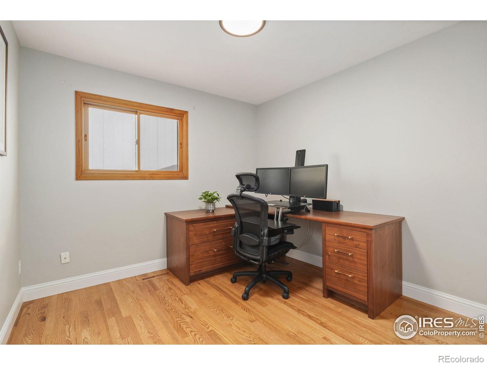 Welcome to 1854 Marlborough Court - a beautifully updated home in one of Fort Collins' most established and connected neighborhoods. Just a short stroll from Rolland Moore Park and the Spring Creek Trail, this home pairs timeless charm with modern efficiency and thoughtful upgrades inside and out. The main level's open layout flows naturally between the living, dining, and kitchen spaces, all highlighted by gleaming oak floors and abundant natural light from the east-facing bay window. The kitchen shines with oak cabinetry, slide-out pantry drawers, stainless steel appliances-including a Bosch dishwasher and Samsung range-and low-maintenance laminate countertops. The dining area is framed with a custom white oak bench seat for relaxed gatherings. The primary suite offers a private retreat with new closet doors, a tiled ensuite bath, a custom queen bed frame and headboard, and modern fixtures. The two additional main floor bedrooms add flexibility, with one featuring a built-in white oak bookshelf and slide-out printer tray. The beautifully updated main bath is centered with a custom floating vanity. Downstairs, the finished basement adds nearly 700 square feet of versatile living space with built-in storage, a laundry area featuring a matching Maytag washer and dryer, and a utility sink for projects or gear. Outside, you'll find a xeriscaped front yard designed for Colorado's climate-no regular watering needed-and irrigated raised garden beds ready for your favorite herbs, vegetables, and flowers. The backyard includes a Trex deck with a pergola, dog door access, and direct gate entry to a lush, HOA- maintained green space. Dual heating and cooling systems (both replaced in 2024), an active radon system, and a whole-house fan provide year-round comfort and energy efficiency.With quick access to neighborhood parks, schools, and optional pool membership, this Fort Collins gem blends craftsmanship, character, and convenience in one perfectly balanced home.