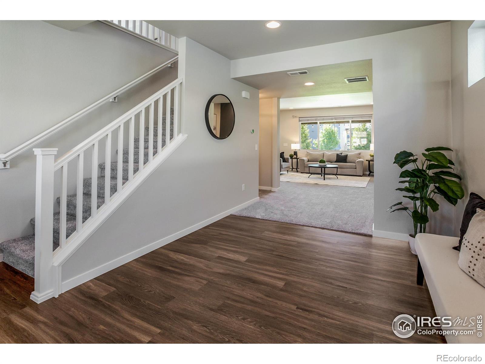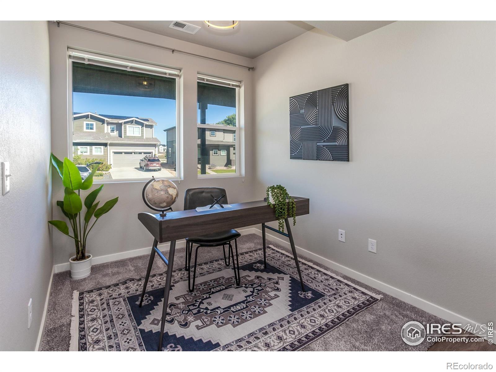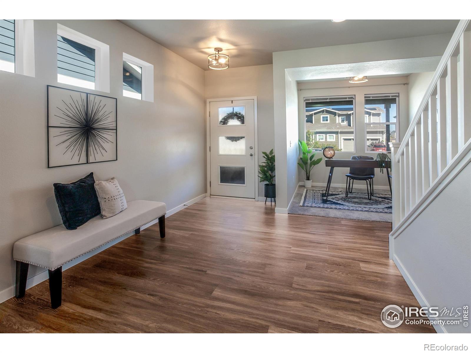 Seller NOW offering a $15,000 credit at Closing. BUYERS use this credit to cover out of pocket Closing Costs, get a LOWER INTEREST RATE, add in additional fencing, or REDUCE THE PRICE of the house to $574,899!!! Take advantage of this huge incentive before the market picks up in the Spring of 2026! This one owner contemporary home has been beautifully maintained with an open layout, modern finishes, & thoughtful details. Just 10 mins to Old Town & 5 mins to I-25. The exterior blends clean lines, stylish brickwork, large windows, & a welcoming front porch. Inside, a flex area/office sits off the entry, followed by a half bath & a spacious living area anchored by a cozy gas fireplace. The living room flows seamlessly into the chef's kitchen, featuring a 5-burner gas range with hood, in-island microwave, breakfast bar, walk-in pantry, & alder cabinets with upgraded pull-outs & hardware. All new tile runs counter-to-ceiling behind the stove and the addition of the butler's pantry is a stunning and super practical upgrade that extends into the dining room, complete with contrasting quartz counters, custom wine rack, & extra storage. The dining area comfortably seats 8+, opening out to a spacious covered back porch, back yard, & HOA maintained greenbelt - an ideal spot for morning coffee or evening gatherings. A mudroom / drop zone connects the oversized garage (576 sq ft vs. a typical 440 sq ft garage) to the main floor. An upgraded open rail staircase leads you upstairs to a spacious loft - separating the private primary suite from the guest rooms. The primary features a huge walk-in closet, custom sliding barn door, walk-in shower, & dual sinks with ample counter space. Two generously sized guest rooms share a full bath, & a fabulously updated laundry room adds extra storage. Brand new carpet, upgraded lighting throughout, & spaces designed for both entertaining & everyday comfort. Low HOA & no Metro Tax. Click on video/virtual tour for great guided tour.