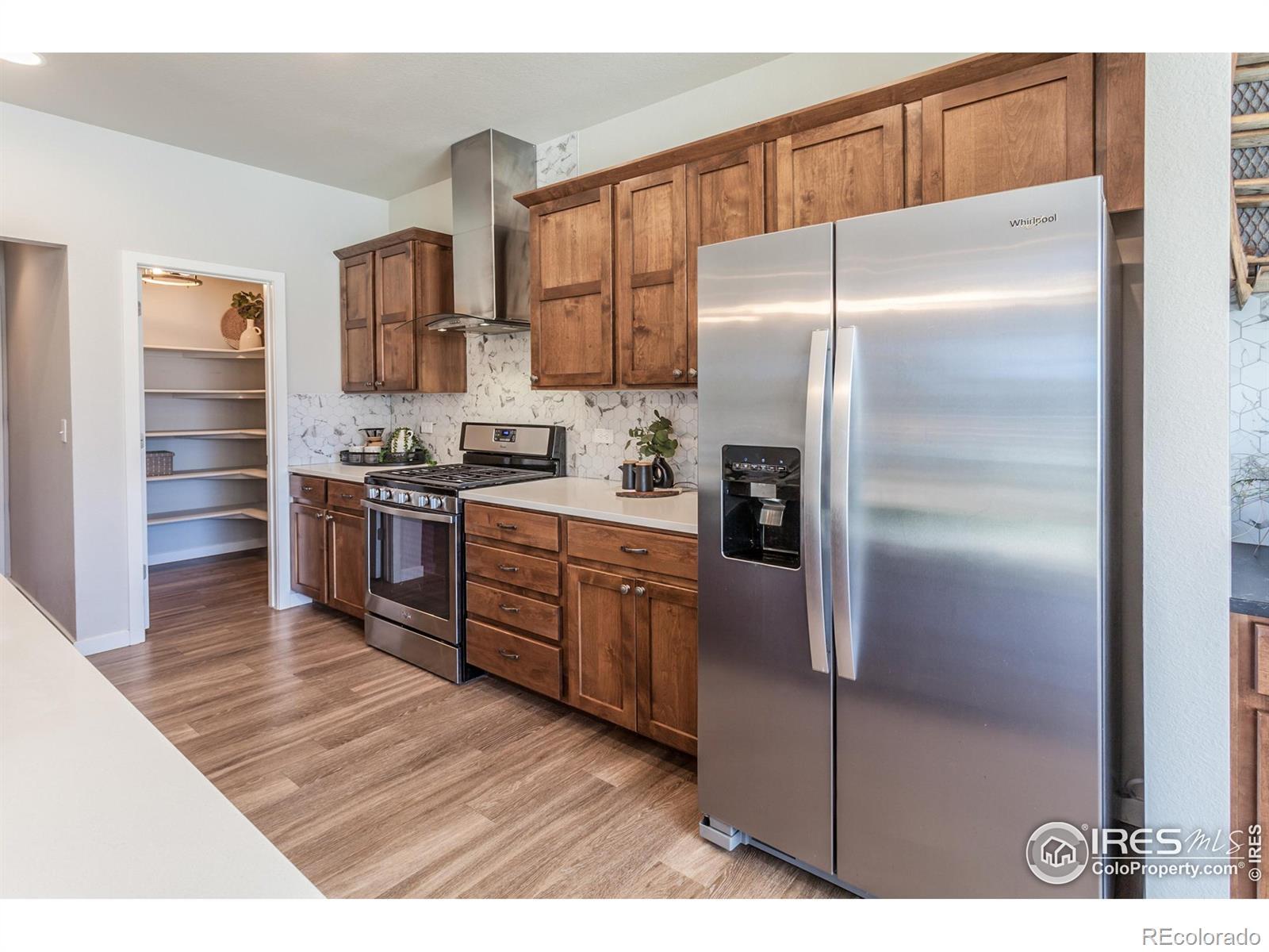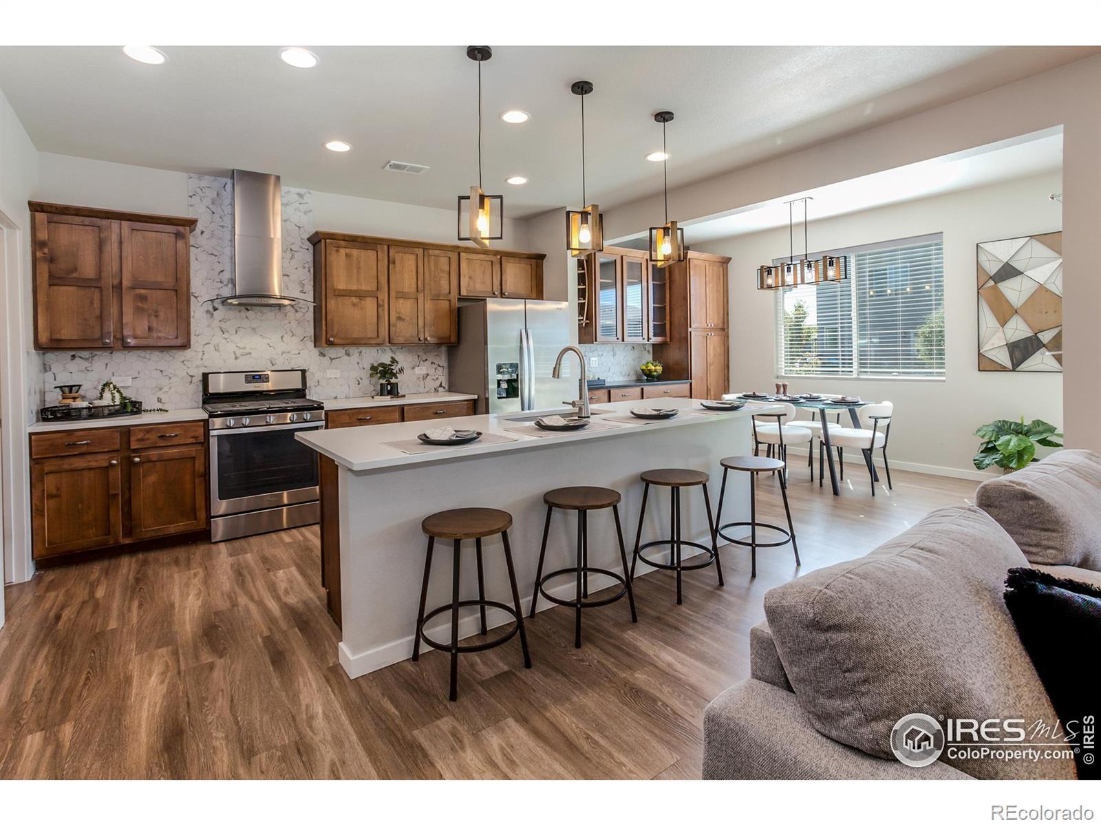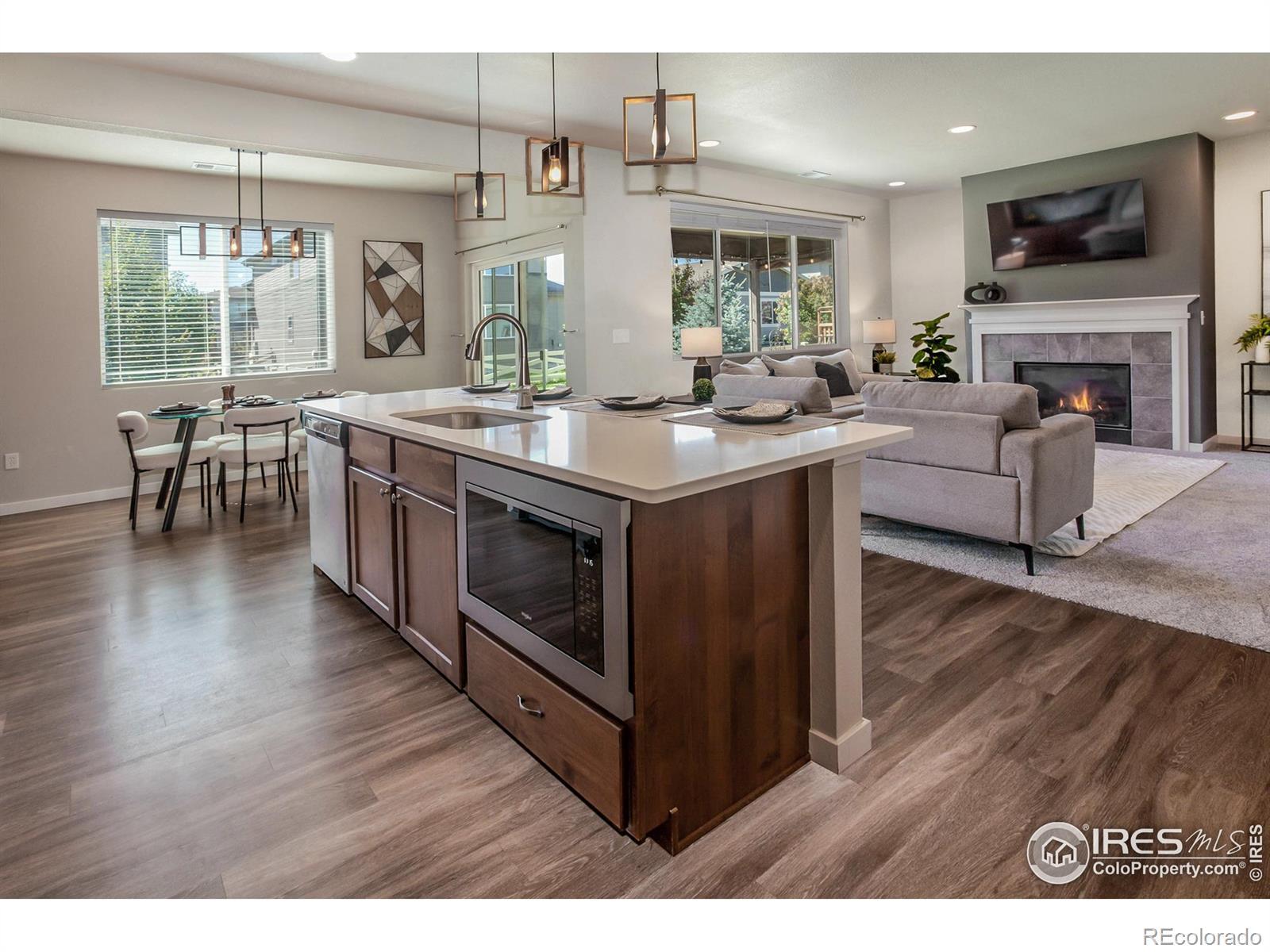 Seller NOW offering a $15,000 credit at Closing. BUYERS use this credit to cover out of pocket Closing Costs, get a LOWER INTEREST RATE, add in additional fencing, or REDUCE THE PRICE of the house to $574,899!!! Take advantage of this huge incentive before the market picks up in the Spring of 2026! This one owner contemporary home has been beautifully maintained with an open layout, modern finishes, & thoughtful details. Just 10 mins to Old Town & 5 mins to I-25. The exterior blends clean lines, stylish brickwork, large windows, & a welcoming front porch. Inside, a flex area/office sits off the entry, followed by a half bath & a spacious living area anchored by a cozy gas fireplace. The living room flows seamlessly into the chef's kitchen, featuring a 5-burner gas range with hood, in-island microwave, breakfast bar, walk-in pantry, & alder cabinets with upgraded pull-outs & hardware. All new tile runs counter-to-ceiling behind the stove and the addition of the butler's pantry is a stunning and super practical upgrade that extends into the dining room, complete with contrasting quartz counters, custom wine rack, & extra storage. The dining area comfortably seats 8+, opening out to a spacious covered back porch, back yard, & HOA maintained greenbelt - an ideal spot for morning coffee or evening gatherings. A mudroom / drop zone connects the oversized garage (576 sq ft vs. a typical 440 sq ft garage) to the main floor. An upgraded open rail staircase leads you upstairs to a spacious loft - separating the private primary suite from the guest rooms. The primary features a huge walk-in closet, custom sliding barn door, walk-in shower, & dual sinks with ample counter space. Two generously sized guest rooms share a full bath, & a fabulously updated laundry room adds extra storage. Brand new carpet, upgraded lighting throughout, & spaces designed for both entertaining & everyday comfort. Low HOA & no Metro Tax. Click on video/virtual tour for great guided tour.