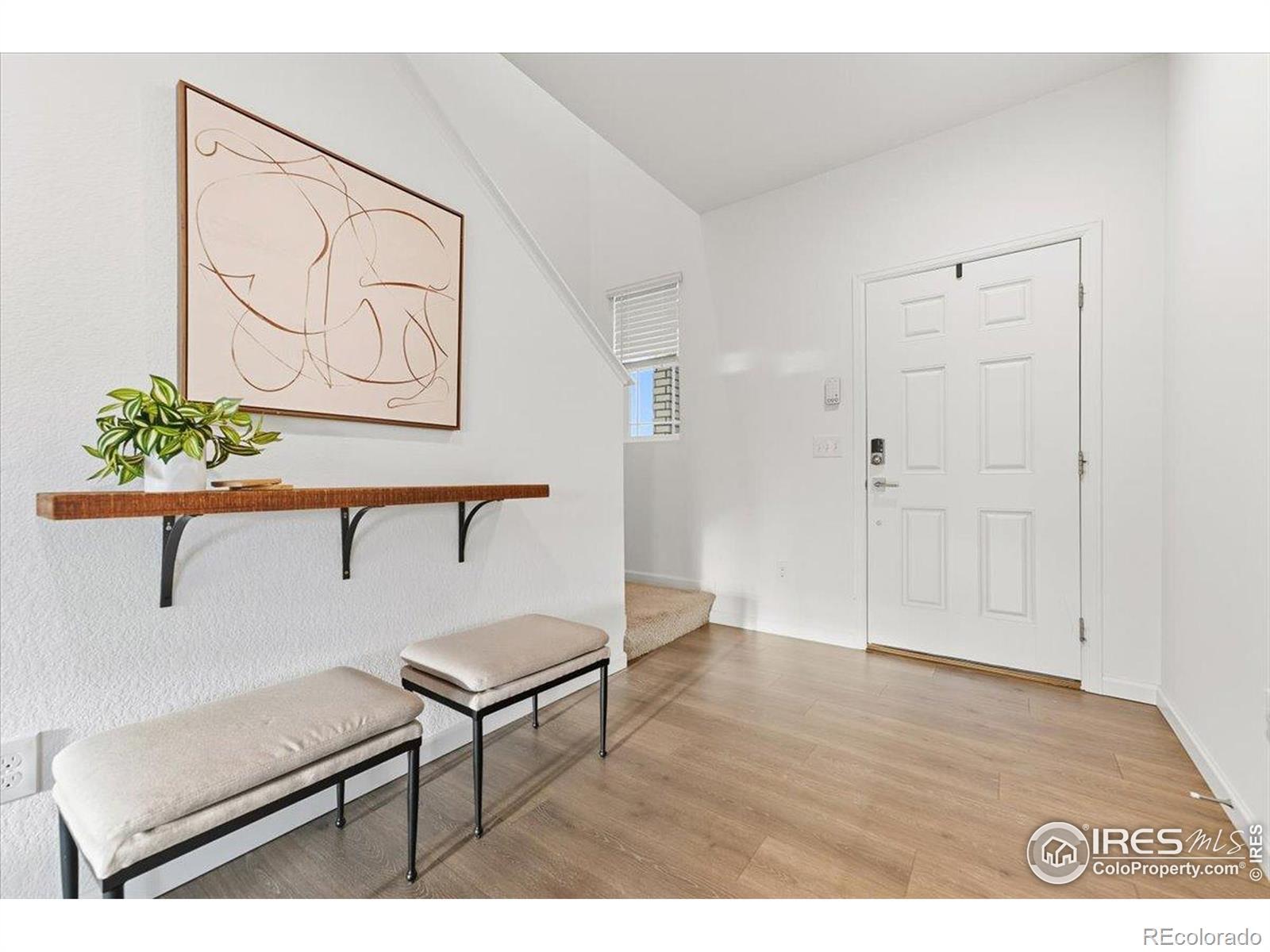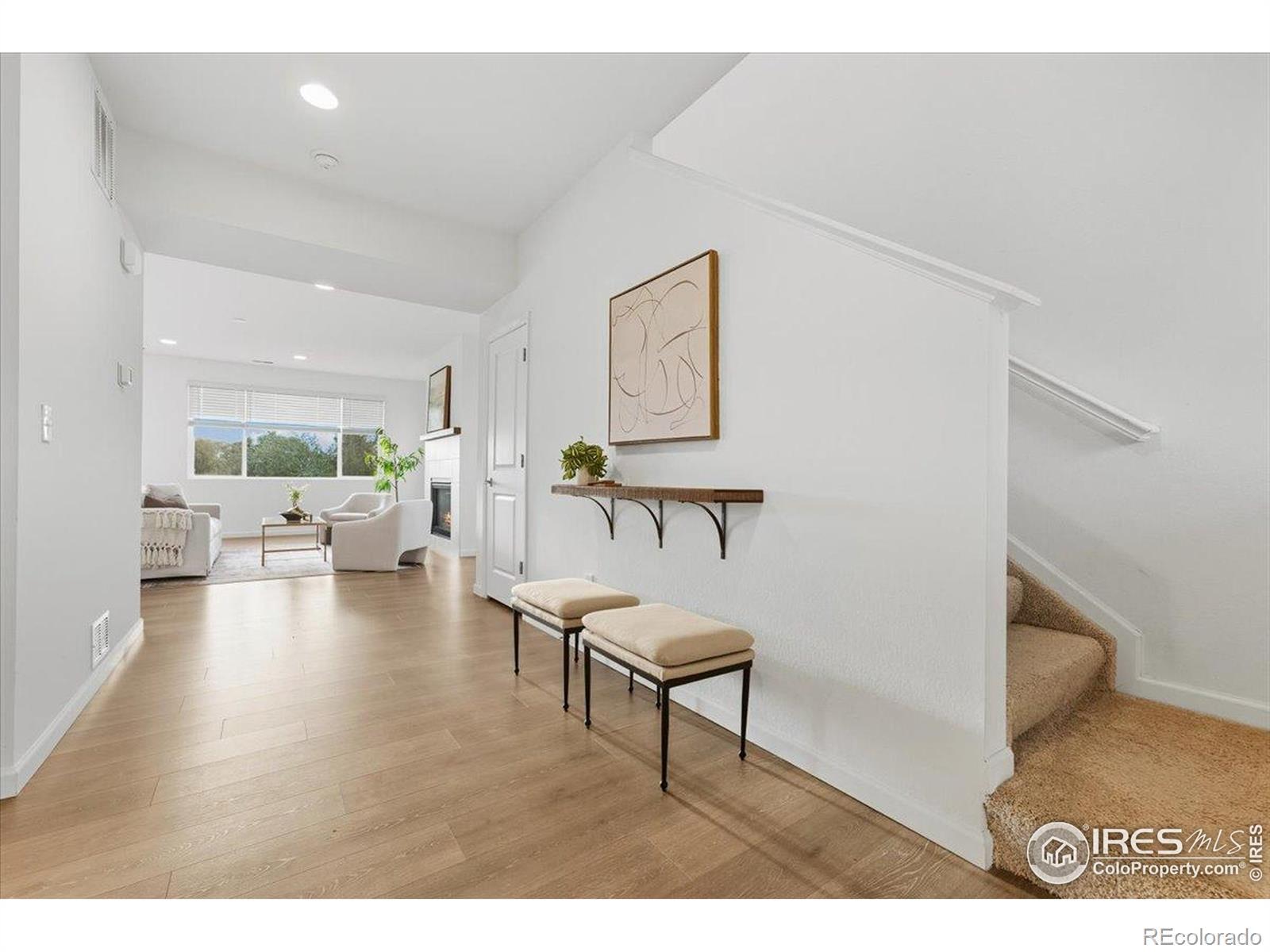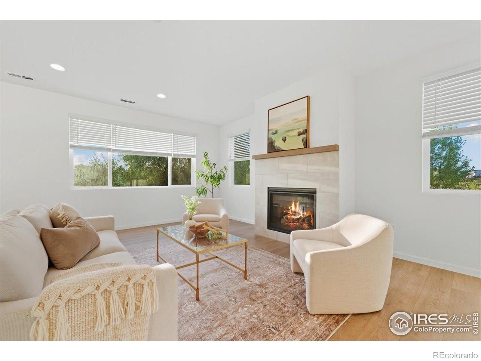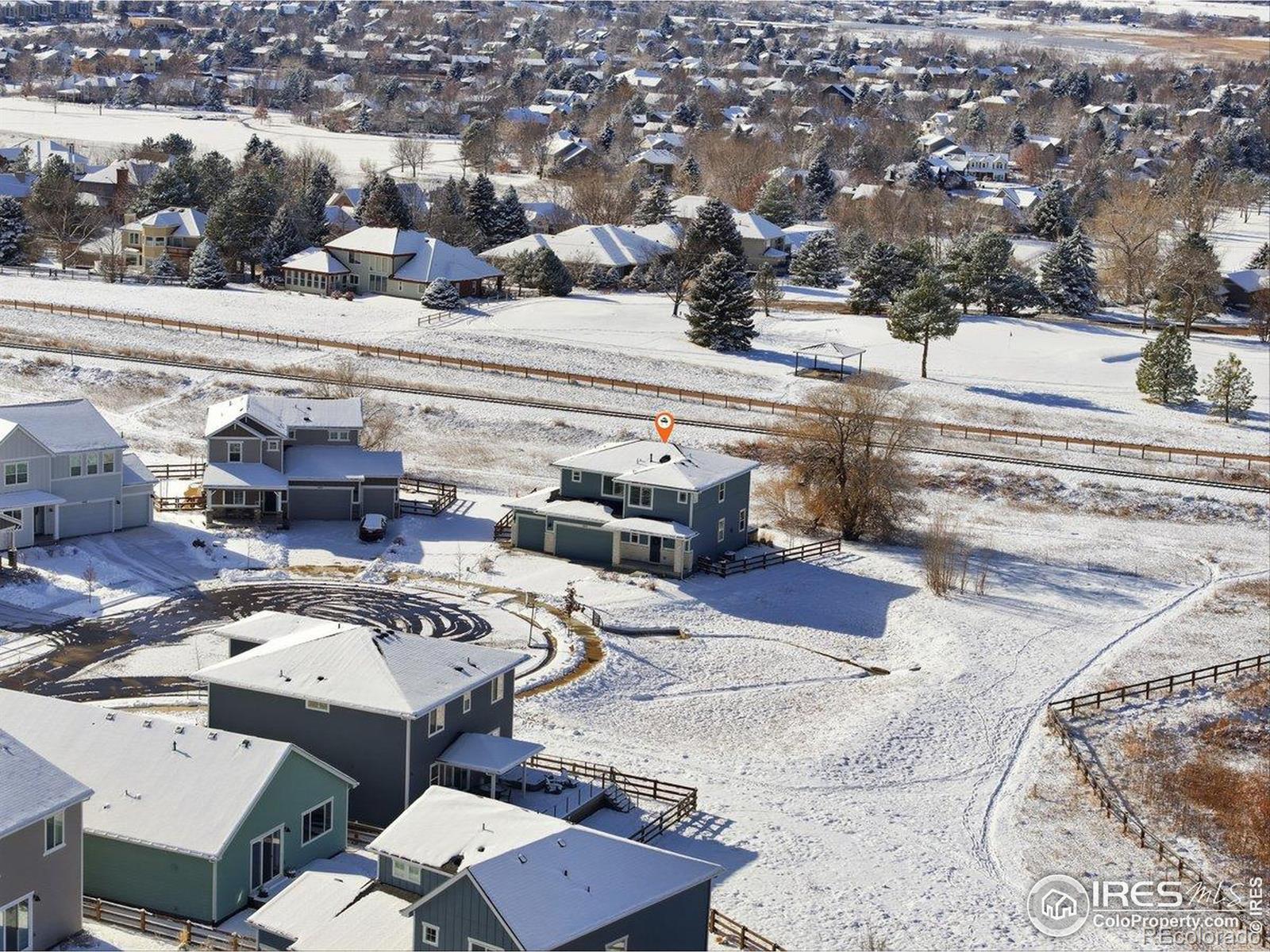 Open house Sat 12/13 (1-3) & Sun 12/14 (1-4). Imagine sitting in your hot tub watching the snow flakes fall this holiday season. Not sure about interest rates? We have you covered.. our preferred lender is offering 1% temporary rate buy down, plus for your peace of mind the seller is offering a 1 year 1st American home warranty. This is a unique 2-story haven tucked away on a quiet cul-de-sac, must see to believe it! Imagine breathtaking sunset views from your back porch while the world meanders along the Power Trail right behind you. On a quiet evening you might even see fox, hawks, or geese. This 3 bedroom + loft (near-new beauty) is decked out with all the bells and whistles (approximately $80,000 in upgrades): luxury plank flooring, an open floor plan, and a cozy gas fireplace with a chic mantle. Loads of natural light flow into the home making it feel bright, happy and airy. Entertain guests or family in the stunning kitchen, boasting timeless slab granite, sleek stainless appliances, subway tile backsplash and a gas cooktop. Venture upstairs to discover three delightful bedrooms and a versatile loft! Two of the bedrooms boast stunning mountain views. The primary suite is a nice retreat with plush carpeting, a breezy ceiling fan, heaps of space, and an ensuite bath featuring double sinks, quartz counters, a walk-in closet, and a separate toilet room with a bidet. Plus, there's a handy laundry area right up there! The loft (library or additional living room) faces east-perfect for enjoying a spectacular sunrise. And don't overlook the rare gem of a finished 3-car garage (by Mile High Coatings )with sleek epoxy flooring ! And to top it all off, a 1 year home warranty is included. Come see for yourself! Note: cameras and vivint security system in place. Train runs approximately 2 times a day, very quiet- only about 5-10 cars and does not blow horn as there is no street crossings.
