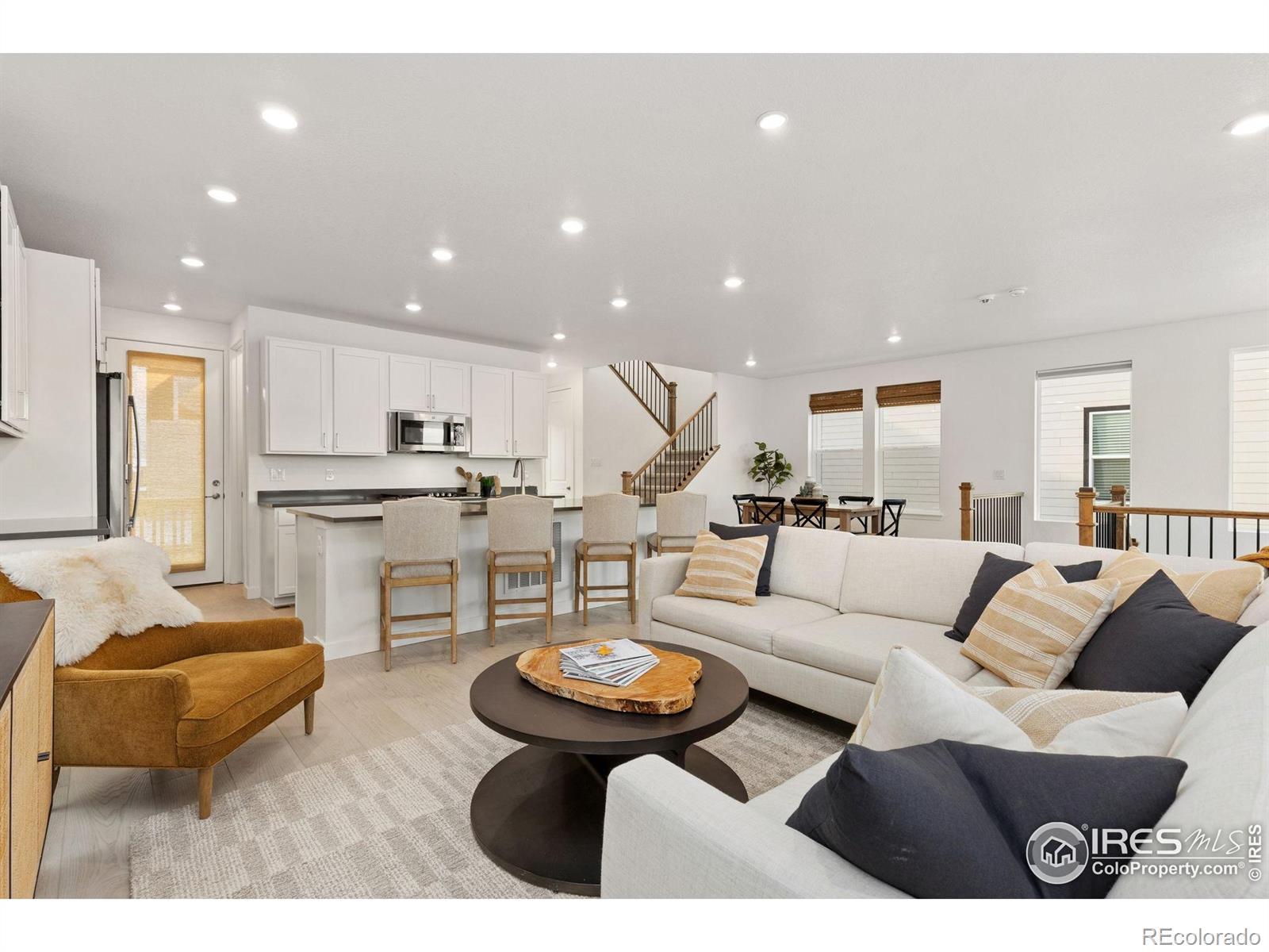 Beautifully designed and incredibly versatile, this Parmelee floor plan offers three levels of thoughtfully crafted living space. The main level features a true private suite-complete with its own bedroom, bathroom, laundry, living area, and kitchenette-ideal for multigenerational living, long-term guests, or a quiet home office retreat. On the second floor, you'll find two outdoor terraces, a spacious great room, and a stylish gourmet kitchen with a generous eat-in island and sunny breakfast nook, along with a convenient half bath. The top level hosts the serene primary suite with an en-suite bath, a secondary bedroom, full bathroom, laundry room, and a large loft perfect for a lounge, play area, or additional workspace. Additional highlights include a 2-car attached garage, solar, and private fencing. Located within the highly regarded Boulder Valley School District, this home offers easy access to neighborhood shops, restaurants, and popular outdoor destinations such as Waneka Lake Park, Lafayette Great Park, and The Great Outdoors Waterpark. This property is also located in the Silo Community, Boulder County's first master-planned net zero energy community. Commuting to both Denver and Boulder is simple and convenient from this central location.