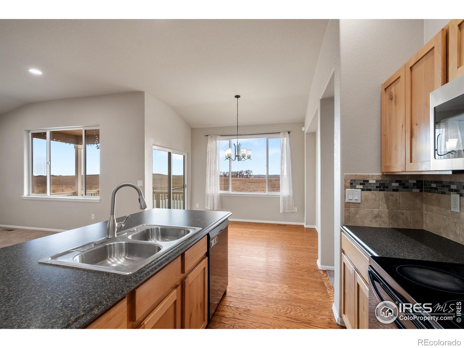 Welcome to this beautifully updated Severance home backing to open space with beautiful mountain views! Inside, you'll love the open floor plan, tons of natural light, & a cozy atmosphere that makes it feel instantly inviting. The kitchen features modern updates, stylish lighting, & plenty of storage throughout. Downstairs, you'll find a huge finished basement complete with a bar area - perfect for entertaining, relaxing, or creating your dream rec room. Custom RGB lighting adds a unique touch throughout the home, while the spacious bedrooms & large closets provide comfort & functionality. Attached 3 car garage, then step outside to enjoy a large yard, covered deck, & peaceful walking trails right behind the property. This home truly blends comfort, creativity, & Colorado charm - come see it for yourself!