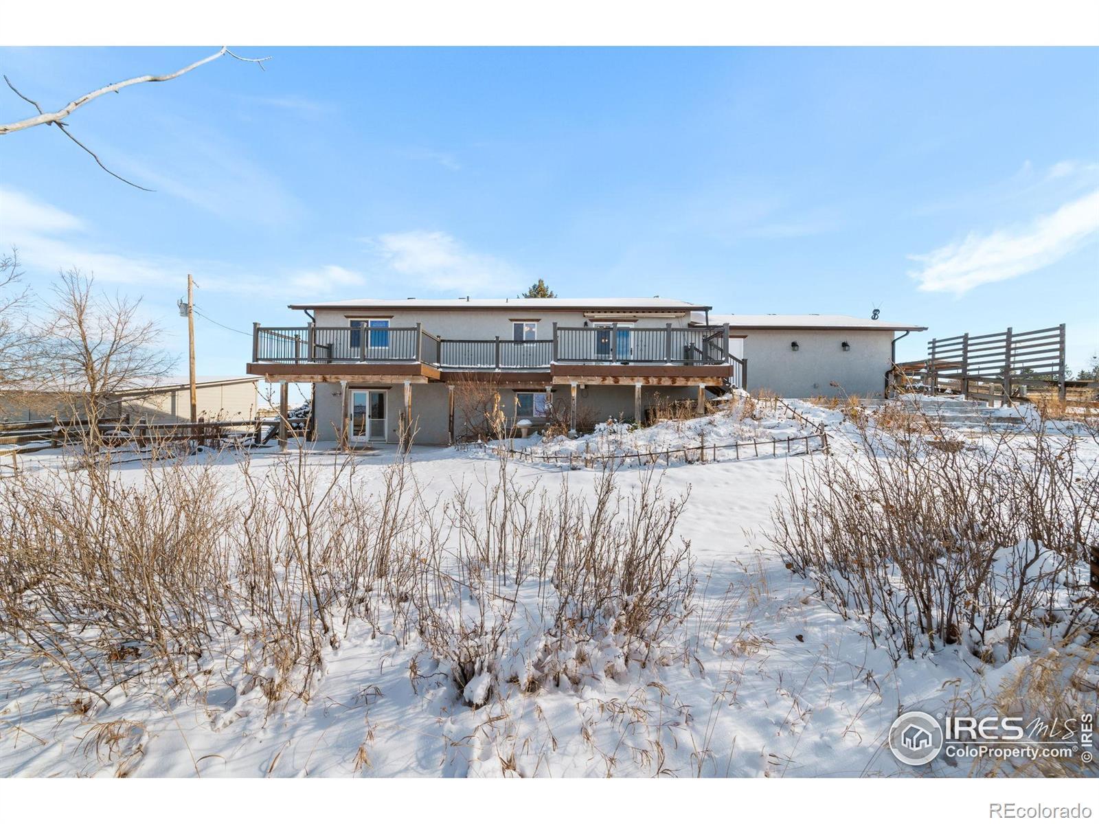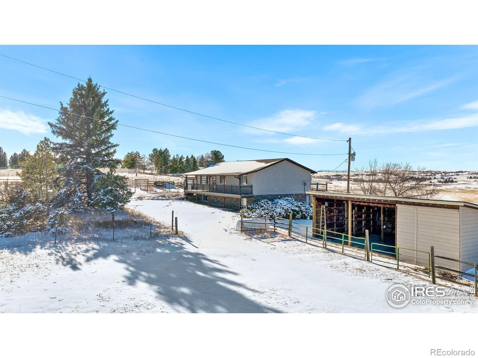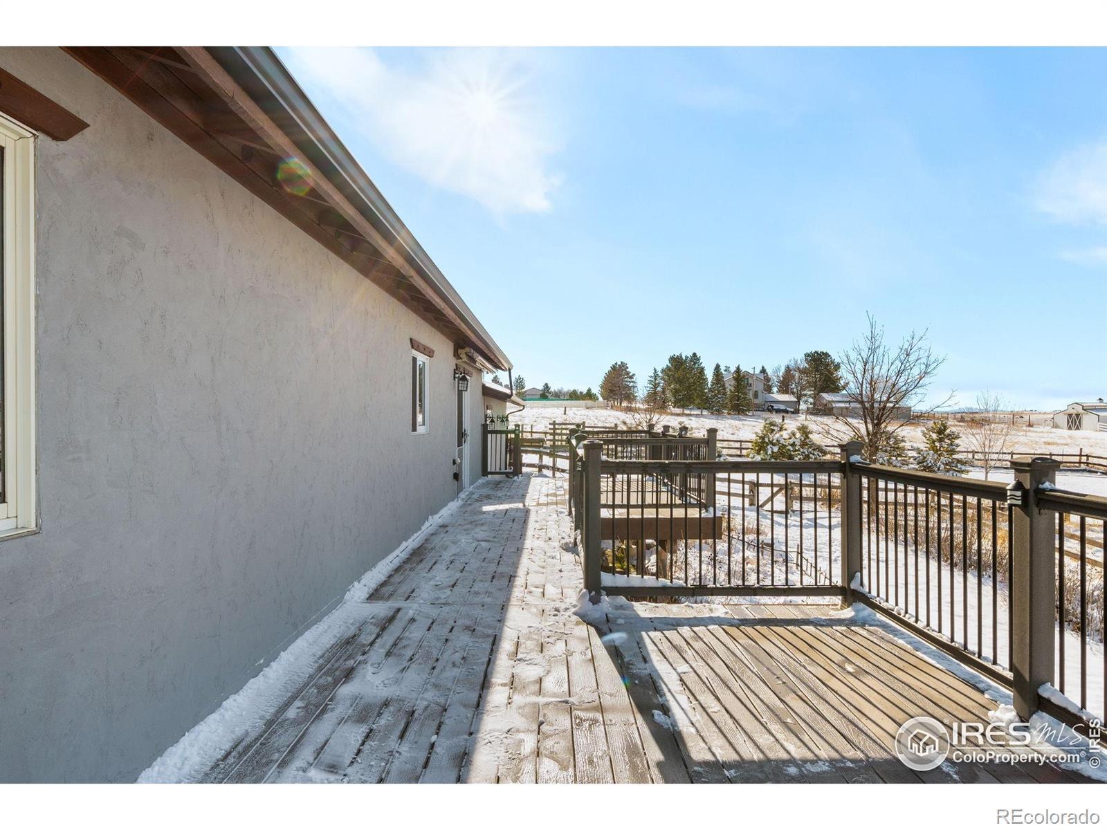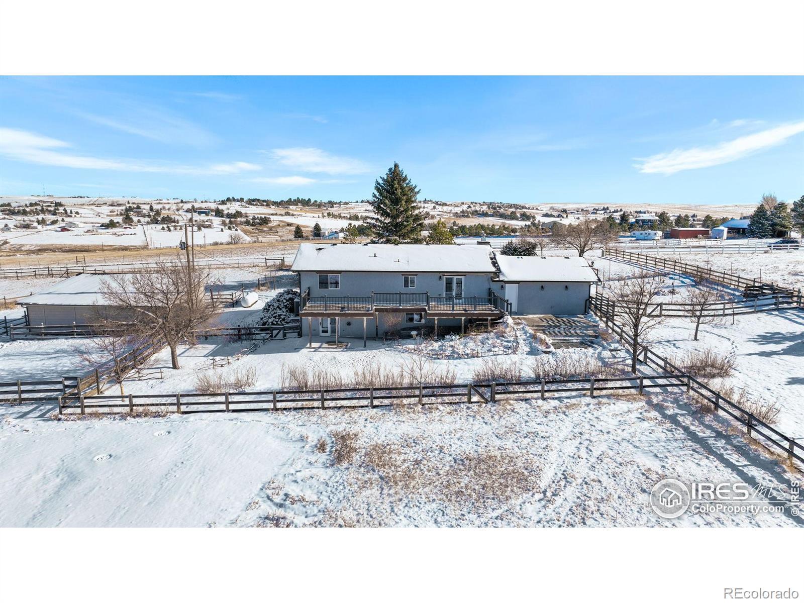 Situated on a peaceful 8.3 acres, this well-cared-for ranch home with a walkout basement offers a comfortable blend of function and rural living. The 4-bed, 3-bath layout is open and bright, with updated windows and doors, remodeled bathrooms, and a modern kitchen featuring induction cooking, solid wood cabinetry, and quartz countertops. Full-length composite decks in the front and back extend the living space and overlook the wide-open landscape and a large patio space lets you soak in the sunsets. The property is designed for equestrian use with three separate (no-climb) fenced pastures, a 3-stall Cleary barn with water and electric, a 24'x36' loafing shed, a corral, and a riding area ready for your round pen. An enclosed chicken coop, large garden with decades of enriched soil, and established native plant areas support a simple, productive lifestyle. Recent upgrades include a new impact-rated roof, enhanced attic insulation, new heat pump and AC, and a 50-gallon electric water heater. The walkout basement offers flexible living space with newer carpet and access to a concrete patio. RV parking, an insulated garage with a subpanel, and a dedicated dog run add to the outdoor perks. Adjudicated water rights (359 acre-feet) can transfer with the property, providing long-term value. Strong cellphone service and multiple internet options support work-from-home needs. You won't find another well-maintained acreage property with quiet surroundings, usable land, and a turnkey setup for horses-minutes from Parker at this price point.