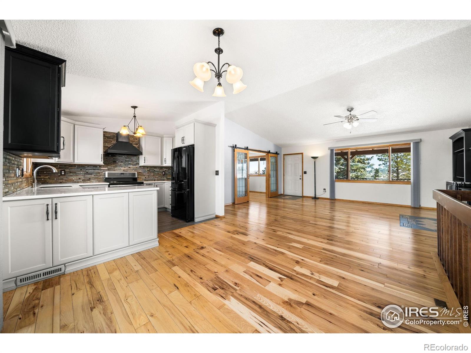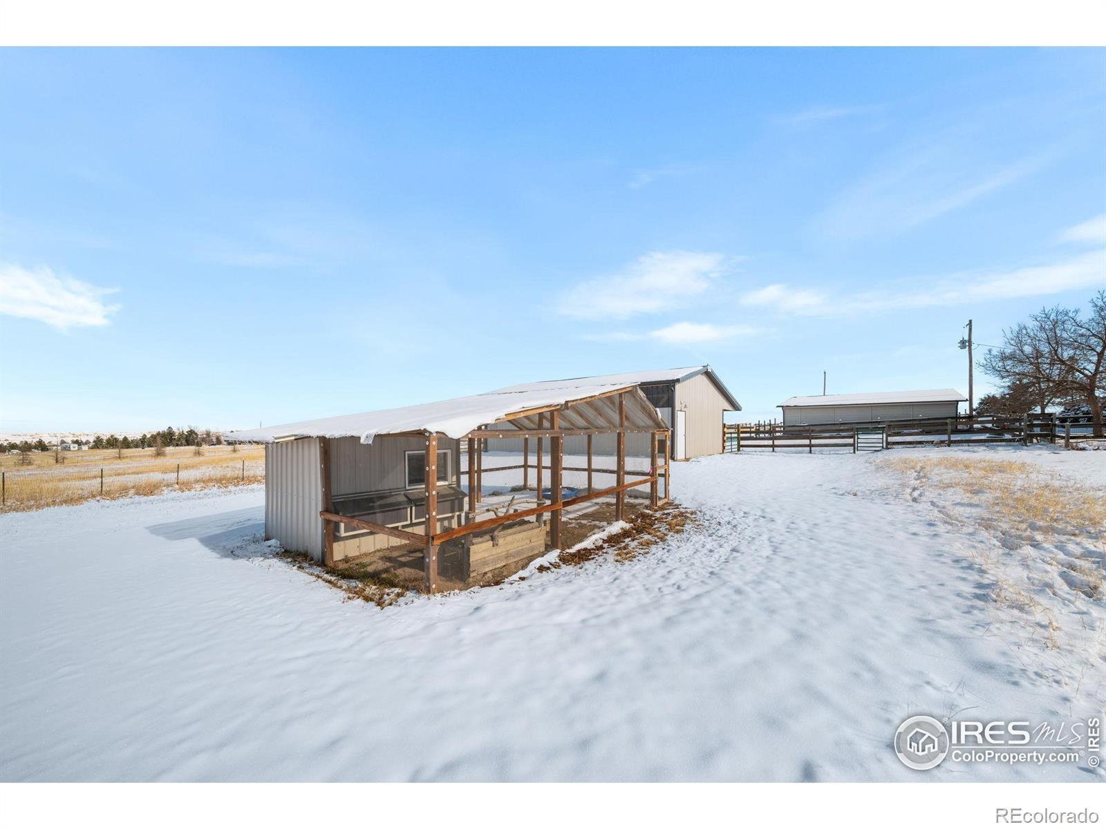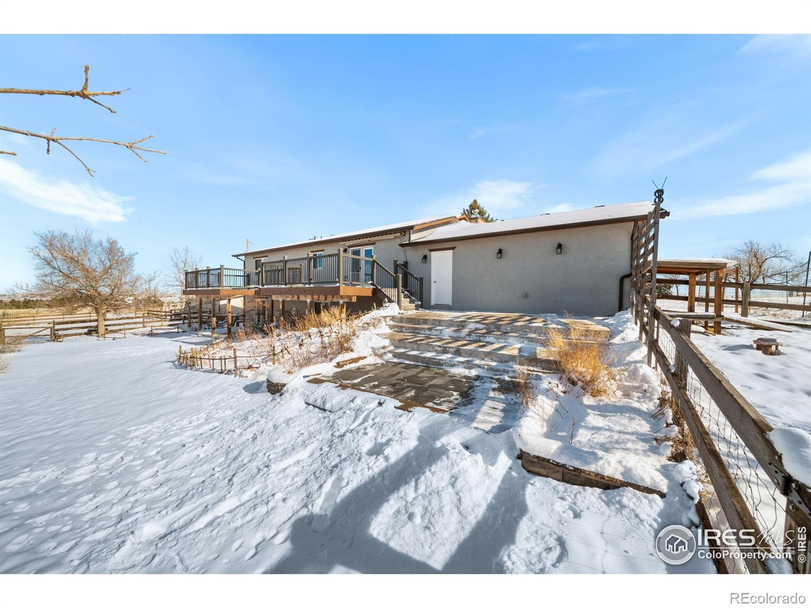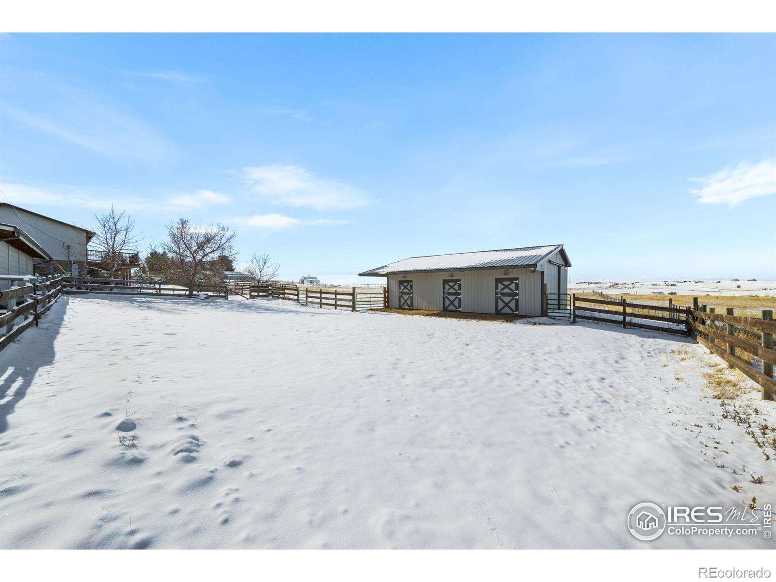 Situated on a peaceful 8.3 acres, this well-cared-for ranch home with a walkout basement offers a comfortable blend of function and rural living. The 4-bed, 3-bath layout is open and bright, with updated windows and doors, remodeled bathrooms, and a modern kitchen featuring induction cooking, solid wood cabinetry, and quartz countertops. Full-length composite decks in the front and back extend the living space and overlook the wide-open landscape and a large patio space lets you soak in the sunsets. The property is designed for equestrian use with three separate (no-climb) fenced pastures, a 3-stall Cleary barn with water and electric, a 24'x36' loafing shed, a corral, and a riding area ready for your round pen. An enclosed chicken coop, large garden with decades of enriched soil, and established native plant areas support a simple, productive lifestyle. Recent upgrades include a new impact-rated roof, enhanced attic insulation, new heat pump and AC, and a 50-gallon electric water heater. The walkout basement offers flexible living space with newer carpet and access to a concrete patio. RV parking, an insulated garage with a subpanel, and a dedicated dog run add to the outdoor perks. Adjudicated water rights (359 acre-feet) can transfer with the property, providing long-term value. Strong cellphone service and multiple internet options support work-from-home needs. You won't find another well-maintained acreage property with quiet surroundings, usable land, and a turnkey setup for horses-minutes from Parker at this price point.
