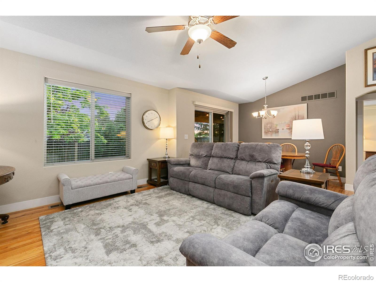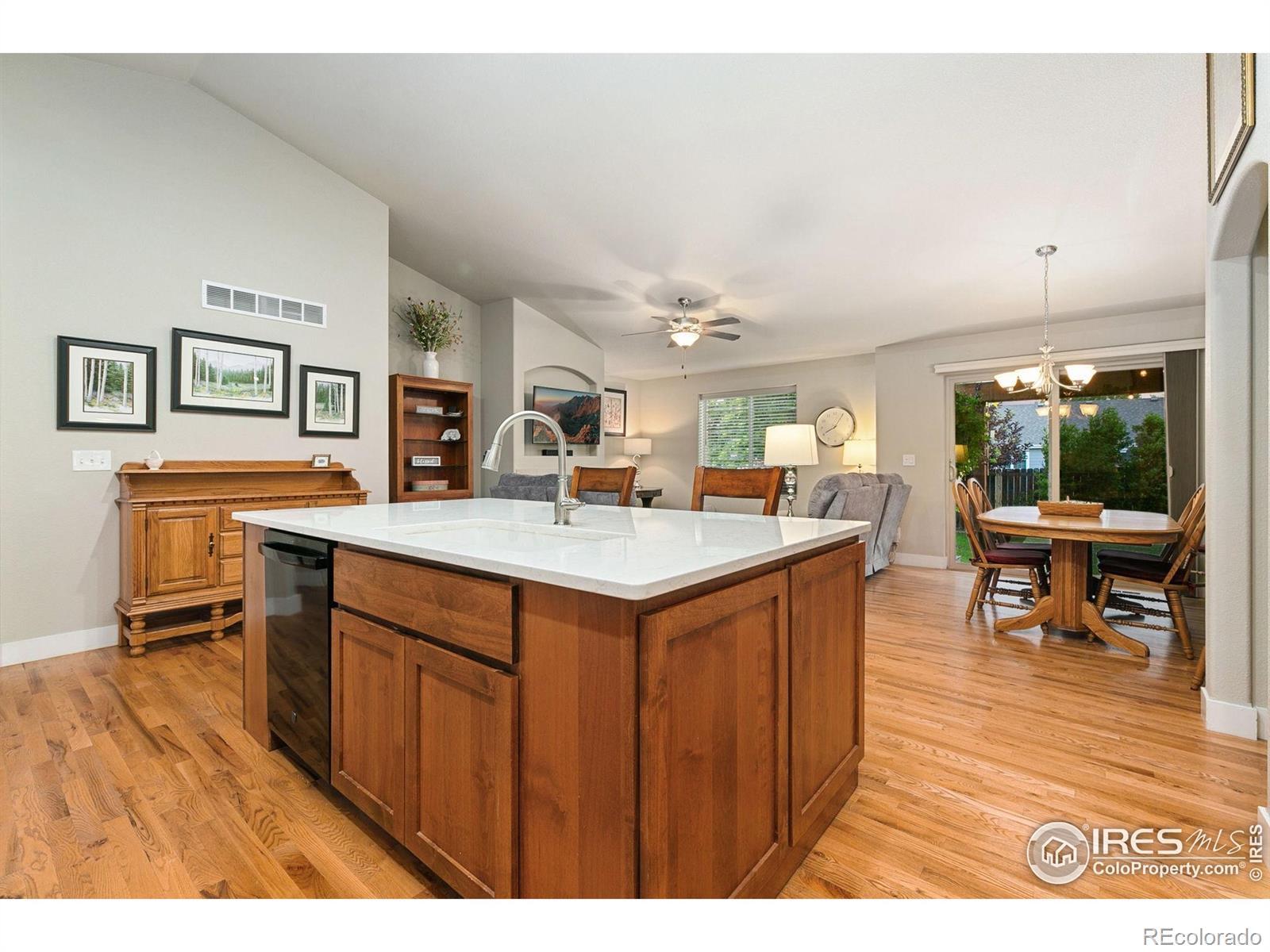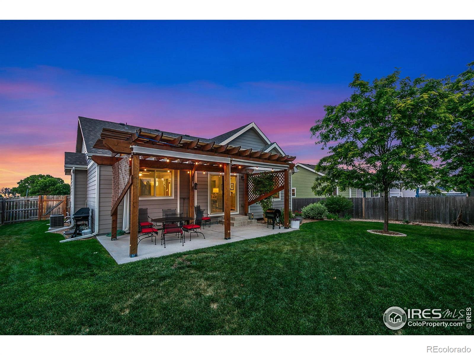 Bright & inviting Severance ranch with no metro district & a low HOA! This home is move-in ready & beautifully maintained. Open design w/vaulted ceilings, gas fireplace & wood flooring through kitchen, dining & living rooms creates a wonderful space to gather & entertain. 3 bed, 2 full bath & UF basement offers loads of potential for future growth! Great kitchen with beautiful cabinetry, island & quartz counters. Spacious backyard w/oversize patio & pergola.