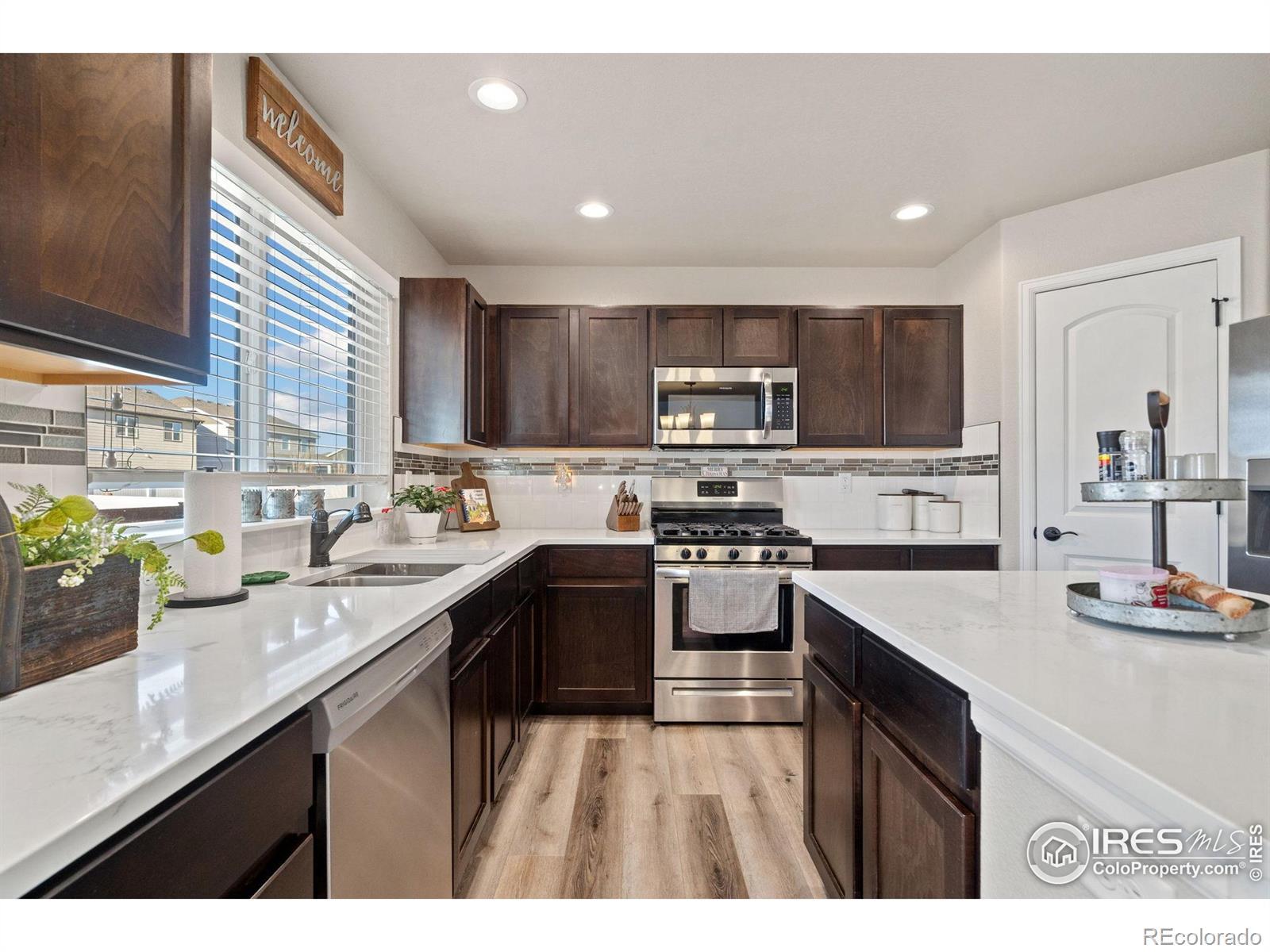 Welcome to this inviting 4-bedroom, 4-bath home in the highly desirable community of Windsor, Colorado. Perfectly positioned on a large corner lot close to downtown restaurants and shopping, beautiful local parks, and great schools. This home offers both convenience and comfort. Inside, you'll find a bright, open layout with spacious living areas and well-appointed bedrooms, including a generous primary suite. Each of the four bathrooms is thoughtfully designed for style and functionality. The kitchen and main living spaces flow seamlessly, creating an ideal setting for both everyday living and entertaining. The kitchen also includes quartz countertops and stainless steel appliances. This home has many upgrades including air conditioning, ceiling fans in all bedrooms, front all season storm door, custom blinds, fireplace and flooring! The professionally landscaped outside has full sprinkler system, window well coverings, extended concrete patio and sidewalk that goes from the front to the back. Fully fenced as well. This home does have a builder finished full basement that already has a radon system in place. With its unbeatable location and appeal, this Windsor home is ready to provide the lifestyle you've been looking for. Plenty of space in this large 3 car garage! Come see this immaculate home today.