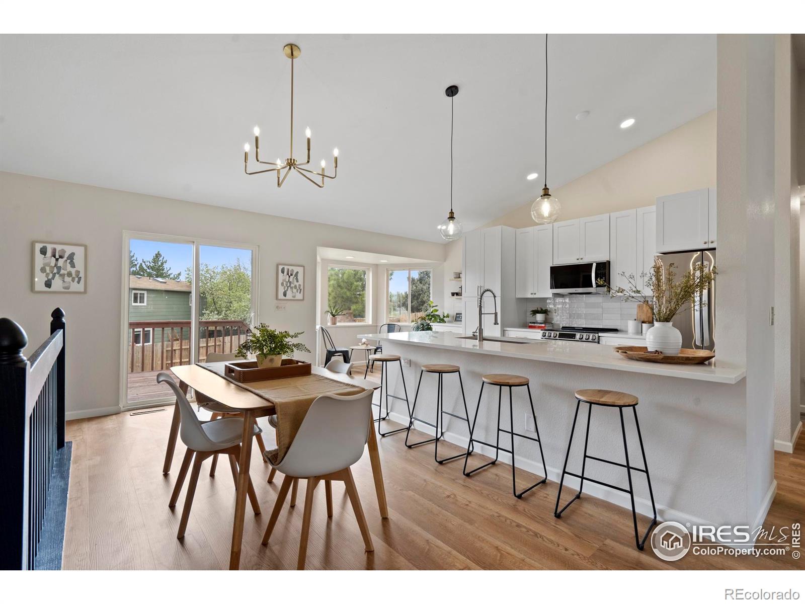 Welcome to this beautifully renovated ranch-style home in the heart of Loveland, featuring a rare walkout basement, 3-car garage, and lake views. Completely updated, from brand new roof (class 4 shingles), to the fresh paint and new flooring/trim to the upgraded bathrooms and kitchen. The standout kitchen is a true showstopper-featuring brand-new all-wood 42" cabinets, a sleek stainless steel appliance suite, quartz countertops, and an oversized island perfect for cooking, entertaining, or gathering with family and friends. From the kitchen and dining, step out onto a spacious deck with lake views or enjoy the outdoors with the other 2 separate front and lower back patios, brand-new landscaping and concrete work, that enhance the home's curb appeal and outdoor living potential. Located in a prime location with easy access to the parks, lakes, schools, shopping, commuting, etc. This move-in-ready home offers the perfect blend of comfort, style, and convenience, all of this without an on-going hoa fee. The small fee ($250) is ONE TIME only, for maintenance of the open space. Don't miss your chance to make this turnkey home your own-schedule a showing today!