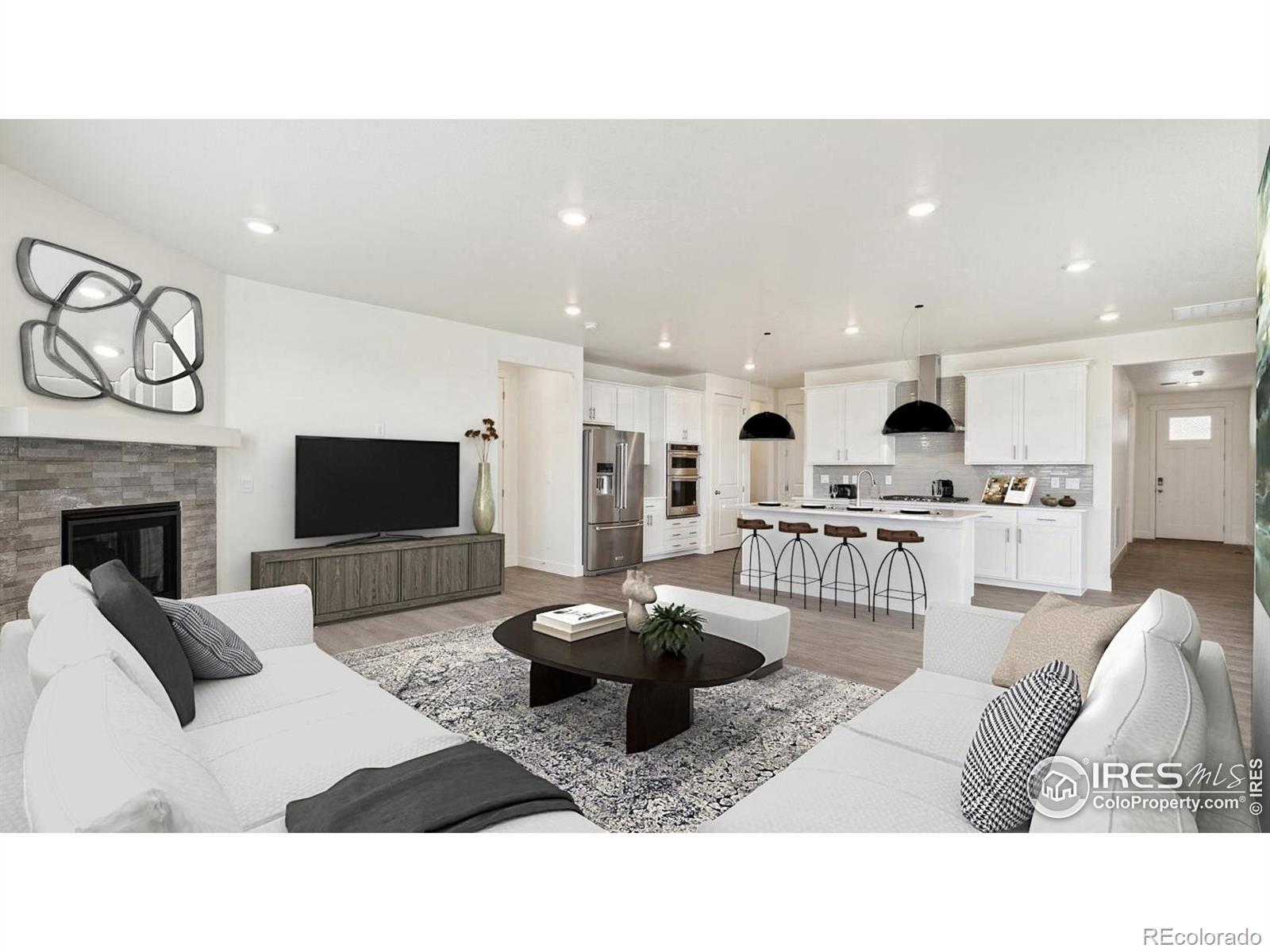 The Grover, a stunning upscale ranch-style home is designed for modern living. This thoughtfully crafted residence boasts 3 bedrooms, 2 bathrooms, and a versatile study, all conveniently located on the main level. The oversized 2.5-car garage offers ample space. Step into the upgraded white gourmet kitchen, featuring premium KitchenAid appliances, a gas cooktop with vent hood, wall oven, pot drawers, and soft-close cabinetry. The expansive quartz island comfortably seats four, while the adjacent dining area is perfect for large gatherings. The great room, anchored by a tiled fireplace, seamlessly connects to the covered patio through a triple slider, creating an inviting indoor-outdoor flow. This home is equipped with smart home features, including Deako light switches, a tankless water heater, and a solar conduit from the basement to the roof. Additional highlights include an unfinished basement, 8-foot doors, active radon system, and a high-efficiency design. The Grover combines luxury, functionality, and sustainability for an exceptional living experience. The Vantage neighborhood includes a unique set of features and amenities such as TPC Colorado privileges including use of their world-class Fitness Center, Resort Style Pool with swim-up bar and hot tub, and restaurants. Use of Vantage Pool, Splashpad, Grilling Area, Playground and 2 Dog Parks in the 5-acre, on-site complex are also included in the HOA. ***Photos are representative and not of actual property***