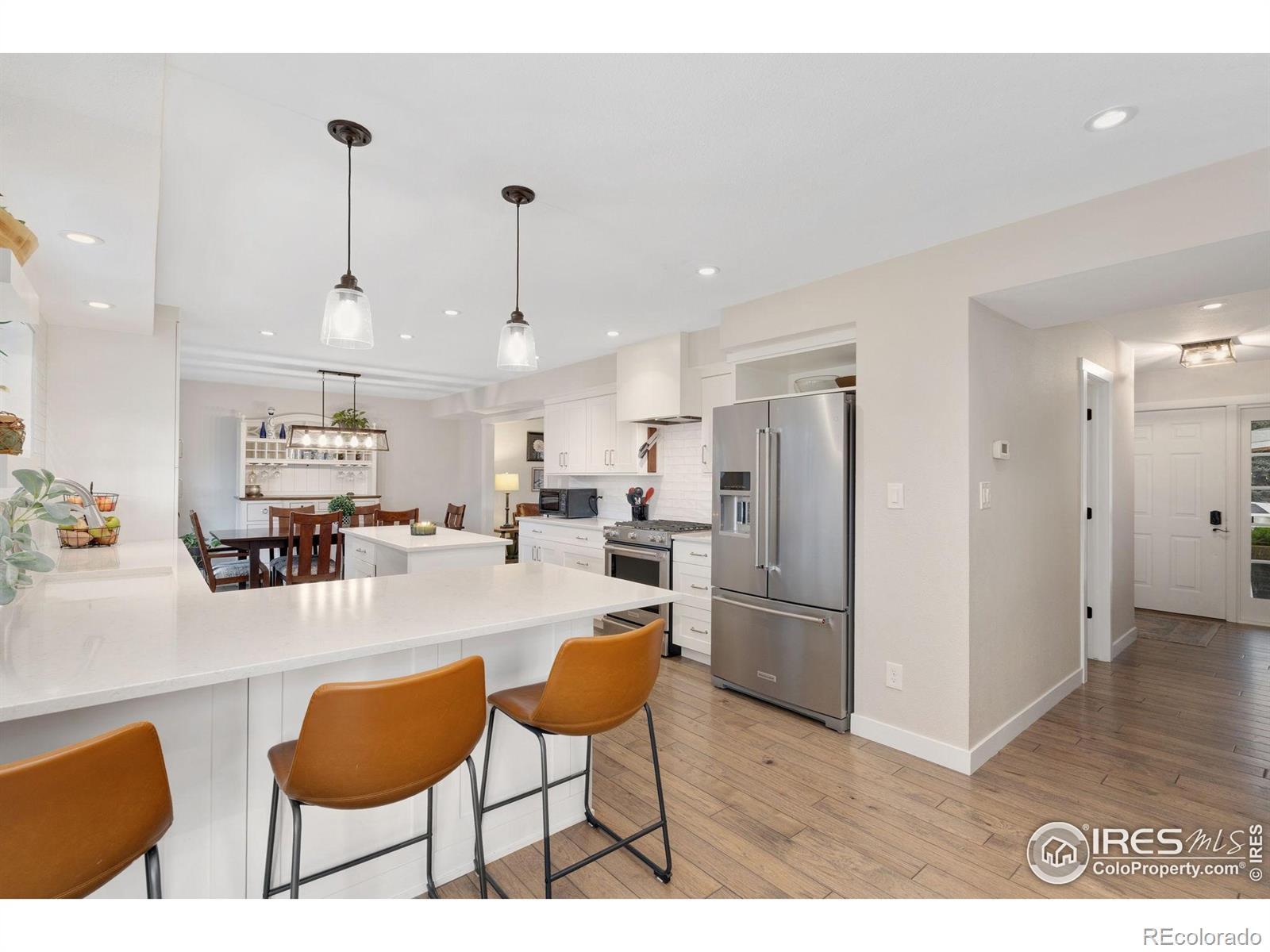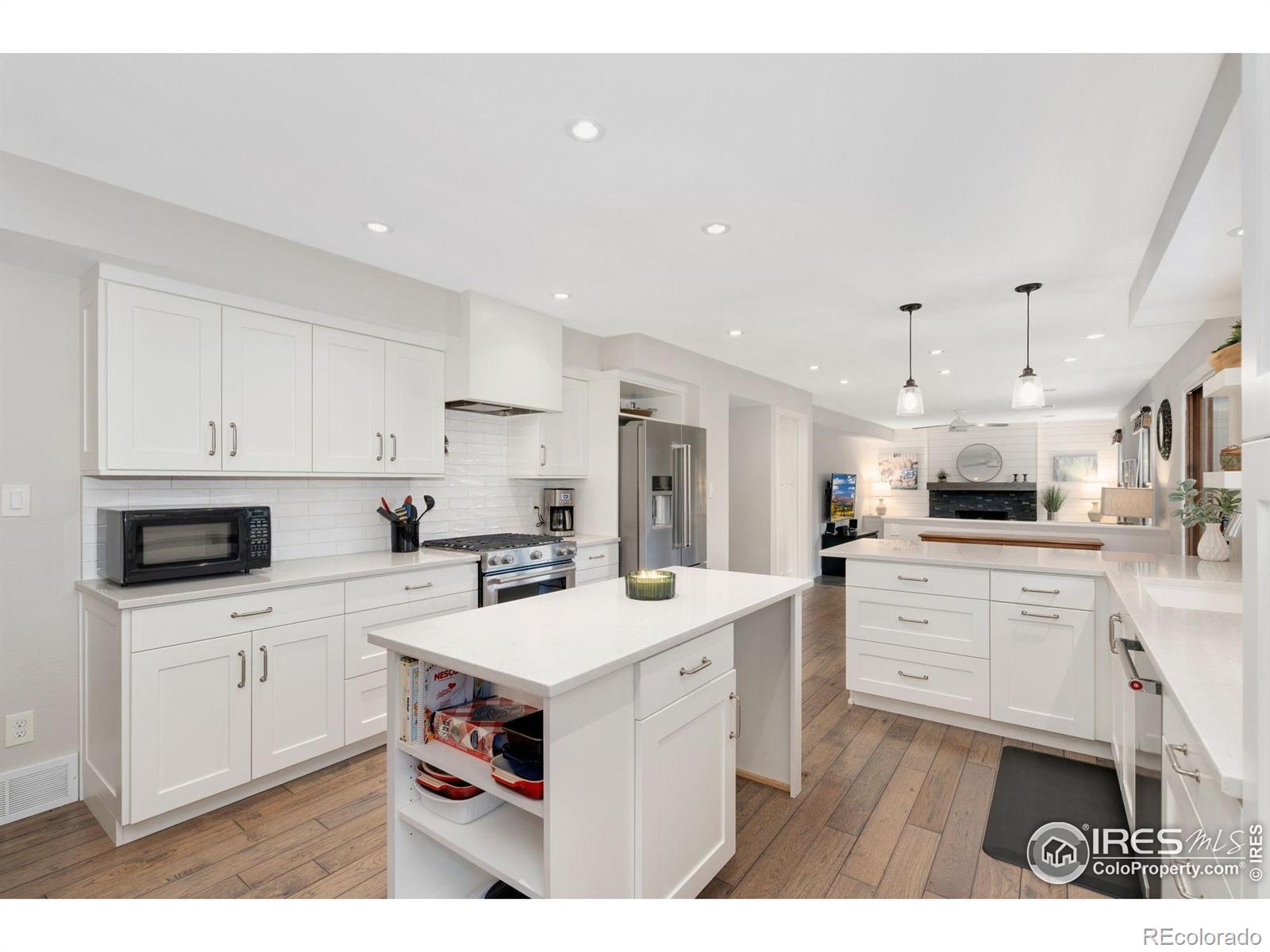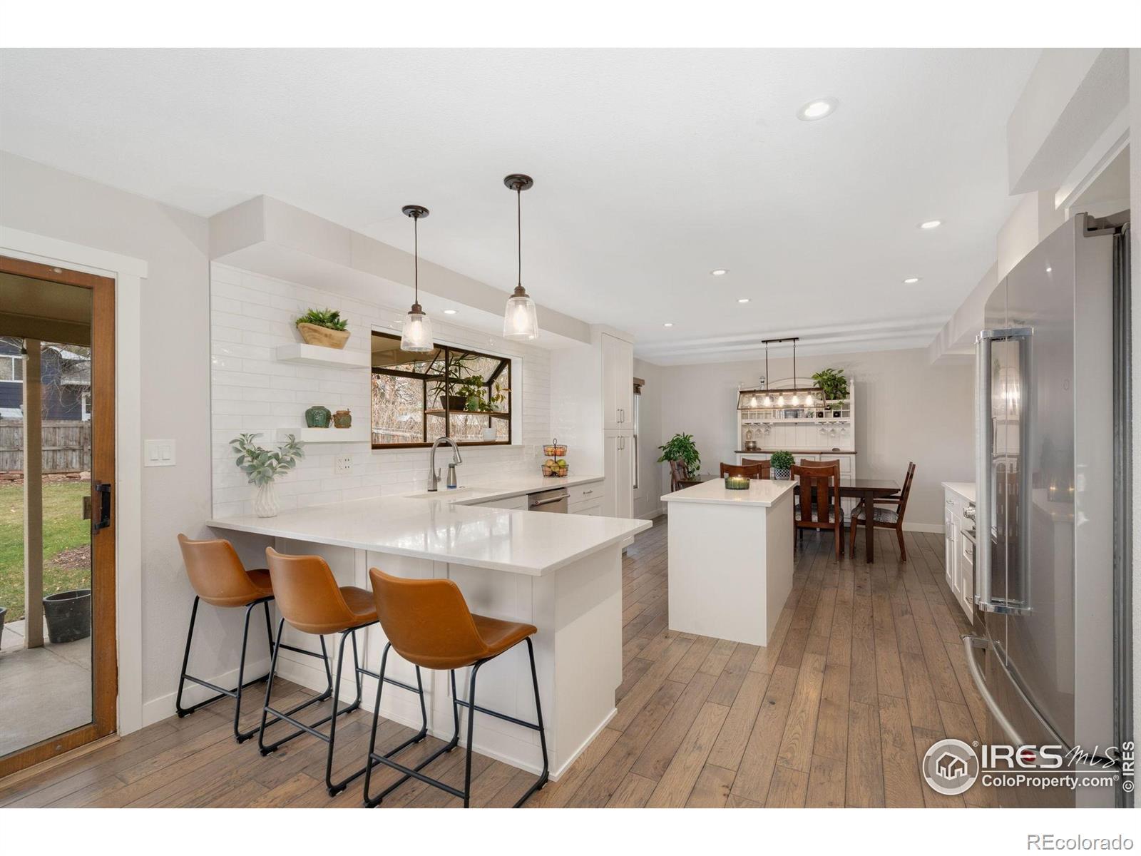 Beautifully remodeled two-story home in the desirable Village West neighborhood of West Fort Collins. This 4 bedroom/3bathroom residence offers an ideal location close to the Foothills, Horsetooth Reservoir, CSU, and all the shopping, dining, and entertainment of Old Town. Enjoy easy access to the Spring Creek Trail, Rolland Moore Park, and the neighborhood pool. Inside, you will find quality finishes throughout, including hickory wood flooring, solid interior doors, new lighting, and fresh paint. The remodeled gourmet kitchen features quartz countertops, a gas range, custom cabinetry, Kitchen Aid stainless steel appliances, and an oversized island that flows seamlessly into the dining area and updated family room. Remodeled primary and powder baths provide modern style and functionality. Multiple living spaces-including a main-level living room, cozy family room with a gas fireplace, and a finished basement rec room-provide flexibility for everyday living and entertaining. Out back you will find a fully fenced yard that is designed for year-round enjoyment with a covered patio, built-in gas fire pit and a new sprinkler system. New furnace in 2025 and new AC in 2020. This turnkey home combines comfort, style, and a sought-after Fort Collins location.