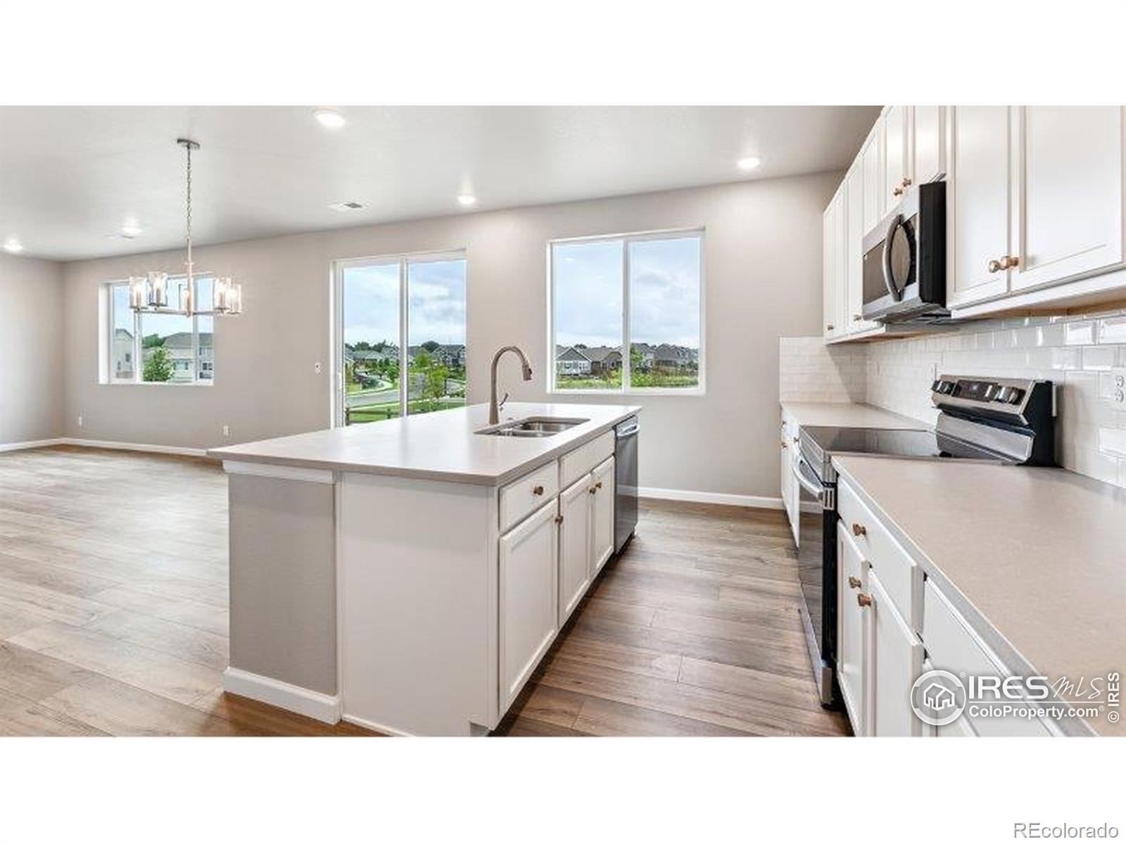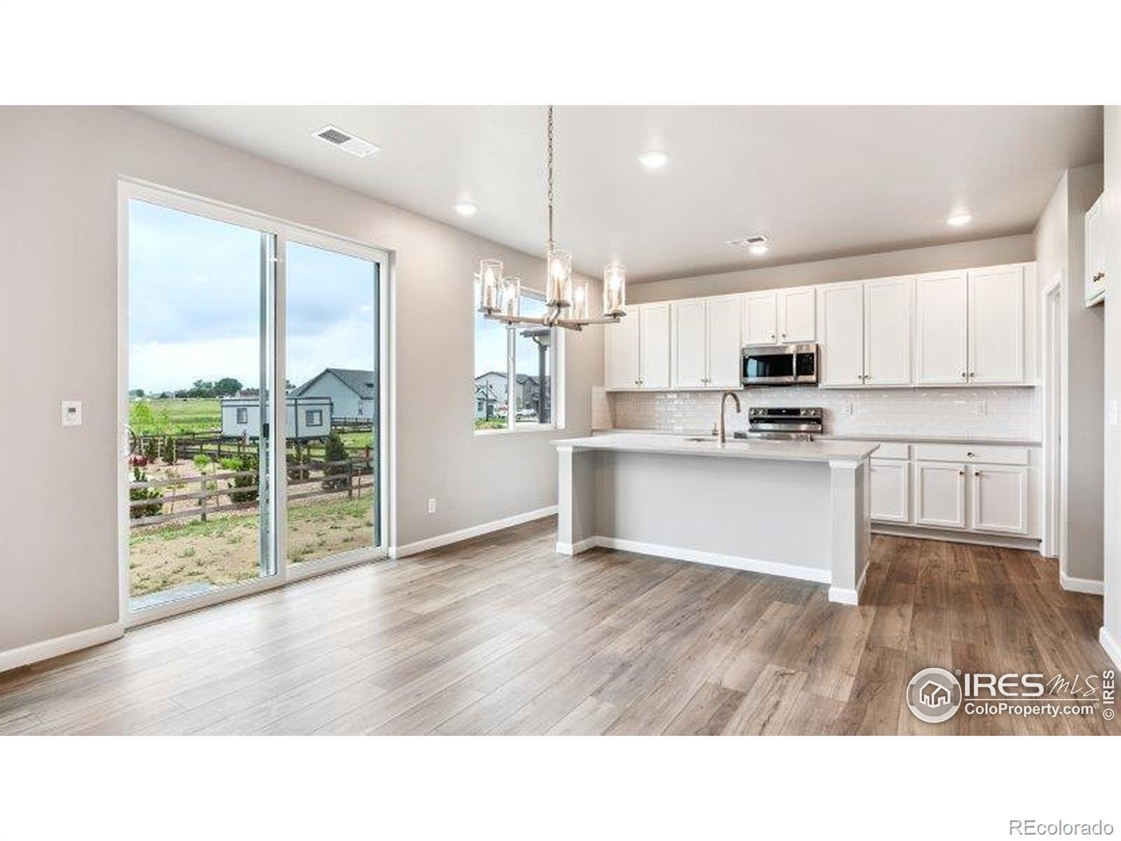 Welcome to Mead, where city and country life come together beautifully. This Beautiful 2 story home has an open floor plan with a remarkable kitchen featuring white cabinets, quartz countertops, stainless electric range, microwave, and dishwasher. A large island accommodates friends or family and there are plenty of cabinets plus a walk-in pantry to store everything you need. The primary bedroom is so roomy with lots of natural light, adjoining ensuite has double sinks, water closet and nice-sized shower with bench. The additional bedrooms also have great light and are close to the hall bath, laundry room with folding counter and loft area which is ideal for an office/tv area or game room. Large 3 car garage with a 24ft deep bay can accommodate those larger vehicles, garage door opener, a/c and whole house air purifier are also included. Highlands Preserve has easy access to I25 and Hwy 66 and is a convenient gateway to Rocky Mountain Nat'l Park. This a High-Performance Home which means it's designed to respect the planet with money-saving innovation to stay healthier and more comfortable, along with home automation technology so it's easier to take on every day.