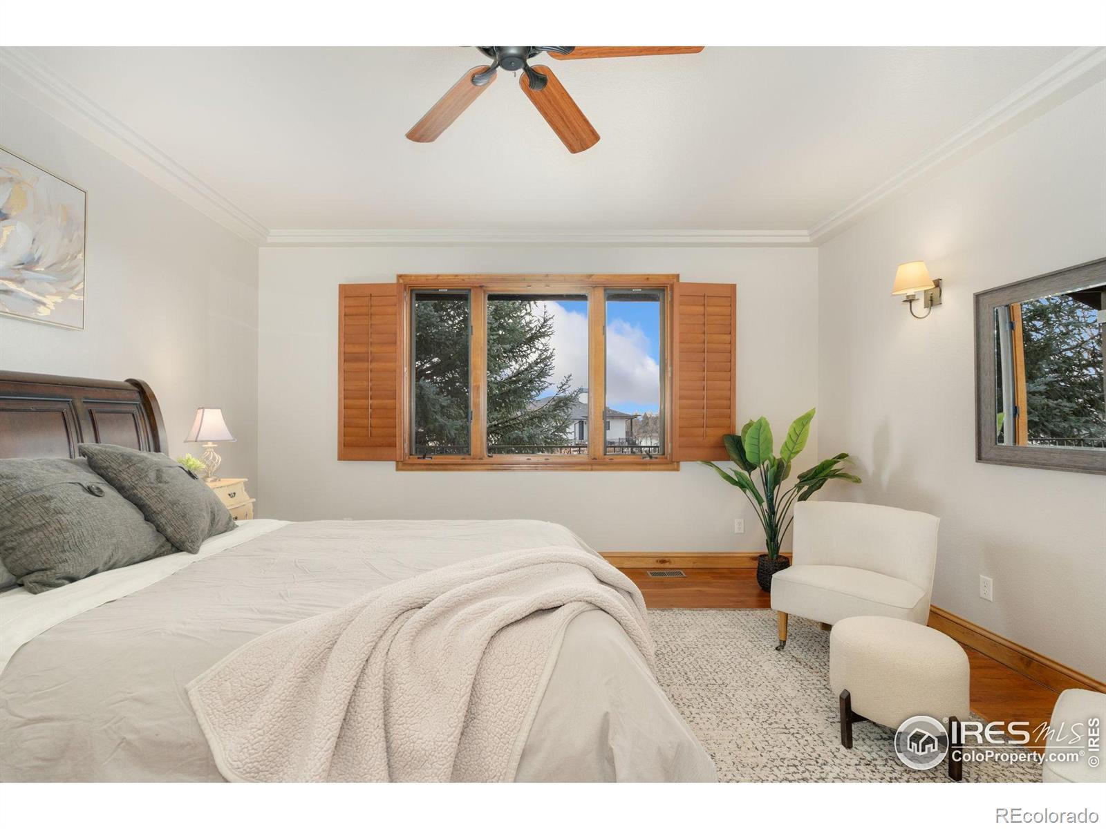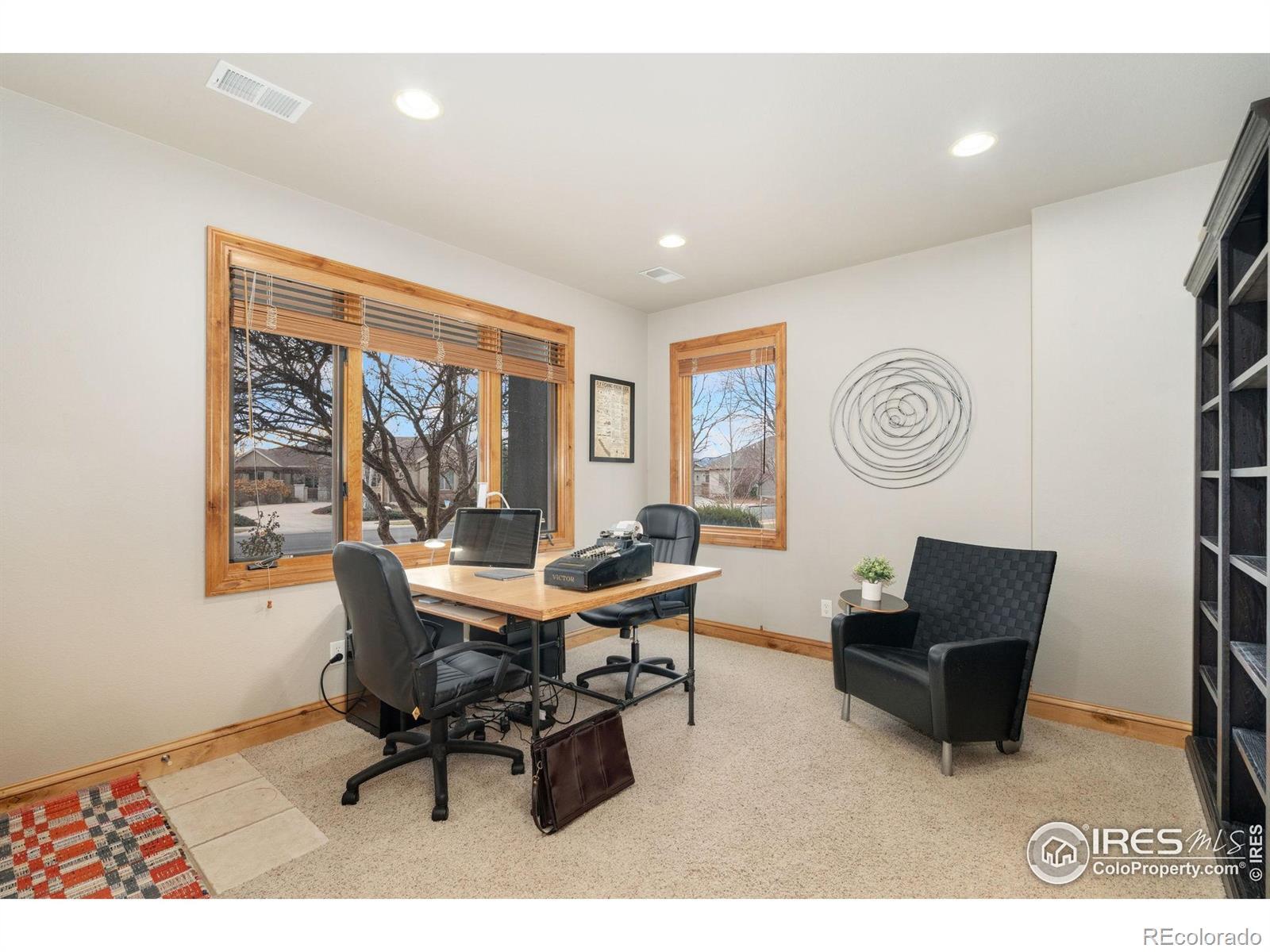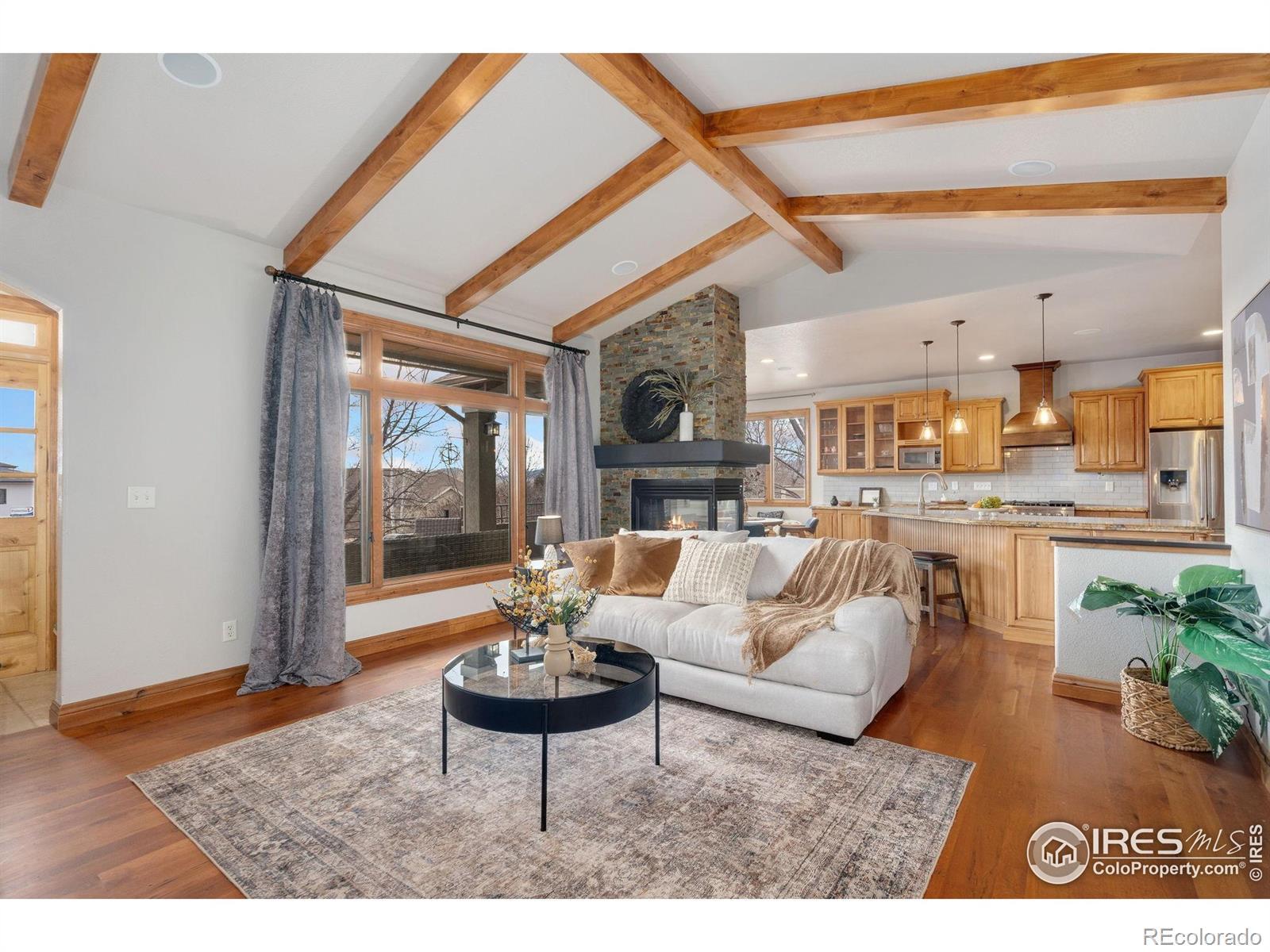2% BUYER INCENTIVE with an accepted contract by December 31, 2025. Buyers can use the 2% toward their closing costs, rate buydown or price adjustment. Custom craftsmanship meets timeless Colorado views! Built in 2000 and ideally positioned in Northeast Fort Collins' desirable Hearthfire neighborhood, this exceptional residence offers 3,162 sq ft of purposefully crafted living space with views of Richards Lake and seasonal mountain views. Abundant quality and character throughout, including exposed wood beams, rich American cherry hardwood flooring, and expansive windows that bring the outdoors in. The flexible floor plan features 4 bedrooms, 4 bathrooms, PLUS a dedicated office or optional 5th bedroom, ideal for work-from-home, guests, or multi-generational living. The open-concept design is both welcoming and functional, anchored by two multi-view gas fireplaces that add warmth and ambiance to the main living areas. The kitchen is well-appointed with generous maple cabinetry, granite slab countertops offering ample prep and serving space, and all appliances included for move-in-ready convenience. Designed for easy ownership, the home features a low-maintenance stucco exterior, copper gutters, and composite decking, perfect for relaxing or entertaining while enjoying lake and mountain views. The walk-out basement expands living and entertaining options with seamless access to outdoor spaces and scenic surroundings. Additional highlights include an oversized rear-load 3-car garage, abundant storage, and a setting that blends privacy with proximity to nature. Hearthfire offers a coveted lifestyle with lake access for paddleboarding, kayaking, or fishing, plus a community clubhouse, outdoor pool, and extensive trail system. Enjoy peaceful mornings overlooking the lake, vibrant Colorado sunsets, and the comfort of a well-crafted home in an established community. Just 13 min to Old Town FTC, 16 min to CSU's main campus. Walk or golf-cart to Fort Collins Country Club.
