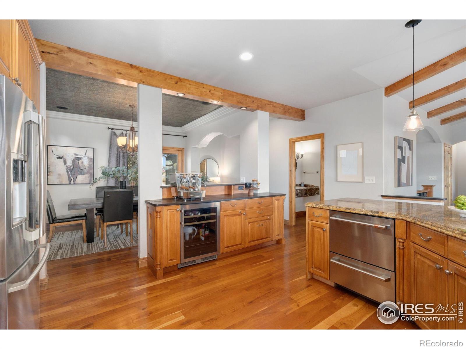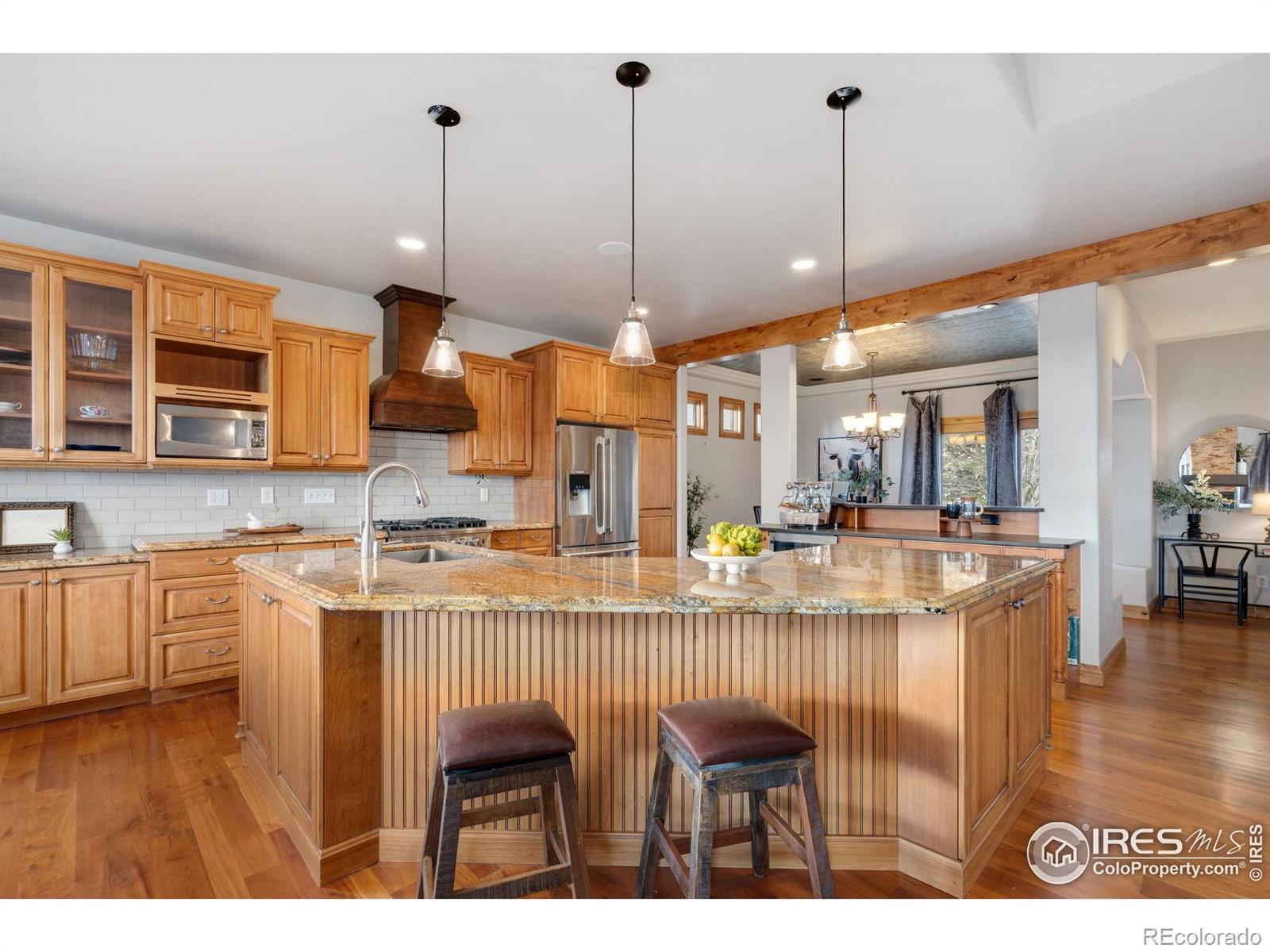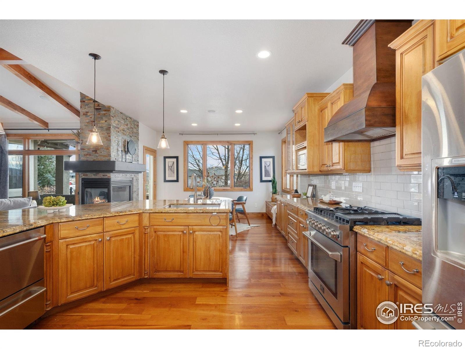 2% BUYER INCENTIVE with an accepted contract by December 31, 2025. Buyers can use the 2% toward their closing costs, rate buydown or price adjustment. Custom craftsmanship meets timeless Colorado views! Built in 2000 and ideally positioned in Northeast Fort Collins' desirable Hearthfire neighborhood, this exceptional residence offers 3,162 sq ft of purposefully crafted living space with views of Richards Lake and seasonal mountain views. Abundant quality and character throughout, including exposed wood beams, rich American cherry hardwood flooring, and expansive windows that bring the outdoors in. The flexible floor plan features 4 bedrooms, 4 bathrooms, PLUS a dedicated office or optional 5th bedroom, ideal for work-from-home, guests, or multi-generational living. The open-concept design is both welcoming and functional, anchored by two multi-view gas fireplaces that add warmth and ambiance to the main living areas. The kitchen is well-appointed with generous maple cabinetry, granite slab countertops offering ample prep and serving space, and all appliances included for move-in-ready convenience. Designed for easy ownership, the home features a low-maintenance stucco exterior, copper gutters, and composite decking, perfect for relaxing or entertaining while enjoying lake and mountain views. The walk-out basement expands living and entertaining options with seamless access to outdoor spaces and scenic surroundings. Additional highlights include an oversized rear-load 3-car garage, abundant storage, and a setting that blends privacy with proximity to nature. Hearthfire offers a coveted lifestyle with lake access for paddleboarding, kayaking, or fishing, plus a community clubhouse, outdoor pool, and extensive trail system. Enjoy peaceful mornings overlooking the lake, vibrant Colorado sunsets, and the comfort of a well-crafted home in an established community. Just 13 min to Old Town FTC, 16 min to CSU's main campus. Walk or golf-cart to Fort Collins Country Club.