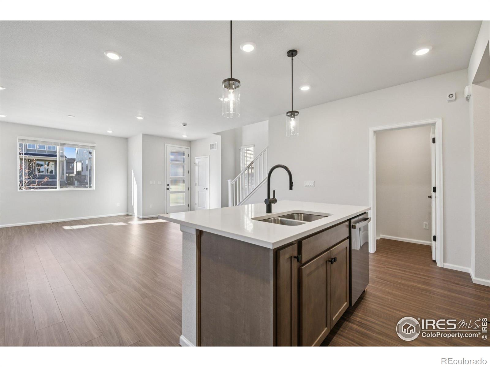 Brand new and ready to move in, this thoughtfully designed, Parade of Homes award-winning floorplan from Risewell Homes features 4 bedrooms and a pocket office in the sought after Sterling Ranch community. This residence lives larger than you'd expect, offering a finished basement and functional spaces for everyone. Welcome inside to luxury vinyl plank flooring throughout the main level. The open concept kitchen boasts Quill cabinetry, quartz countertops and a spacious island. The seamless flow into the dining and great room is ideal for entertaining and everyday living. Ascend the stairs to find 3 bedrooms, including the primary suite with private bath and spacious walk-in closet. Secondary bedrooms utilize the full hall bath and the laundry is conveniently upstairs. The finished basement expands your living space with an additional bedroom, full bath, and versatile recreation room-perfect for a media area, fitness zone, or guest suite. Enjoy the low maintenance lifestyle with mountain views from the front porch and the greenbelt just steps away. Located in Sterling Ranch, you'll enjoy access to neighborhood parks, trails, and community amenities, all while being just a short drive from shopping, dining, and major highways. Sterling Ranch offers a destination lifestyle with abundant community amenities! The Overlook Clubhouse boasts 4900 square feet of modern facilities, including a great hall with catering kitchen, fitness center with in-house classes, two outdoor pavilions and a beautiful deck area overlooking the spacious outdoor pool with family dressing rooms nearby. You'll enjoy use of the new pickleball courts and playground at Prospect Park.