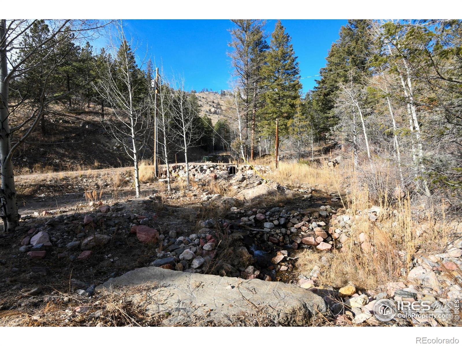 Nestled in the breathtaking Rocky Mountains just minutes from charming Glen Haven and Rocky Mountain National Forest, this rare 3.32-acre parcel offers the perfect canvas for your dream mountain cabin.The land is thoughtfully leveled and build-ready, with essential utilities already in place: a reliable septic system and electrical service, saving you time and expense as you bring your vision to life. A small, tranquil stream meanders gently in front of s the property, its soothing waters providing a peaceful soundtrack to mountain living and a serene spot for relaxation.Surrounded by majestic, towering pines and shimmering aspen groves, the landscape bursts with natural beauty-golden leaves in fall, evergreen splendor year-round.