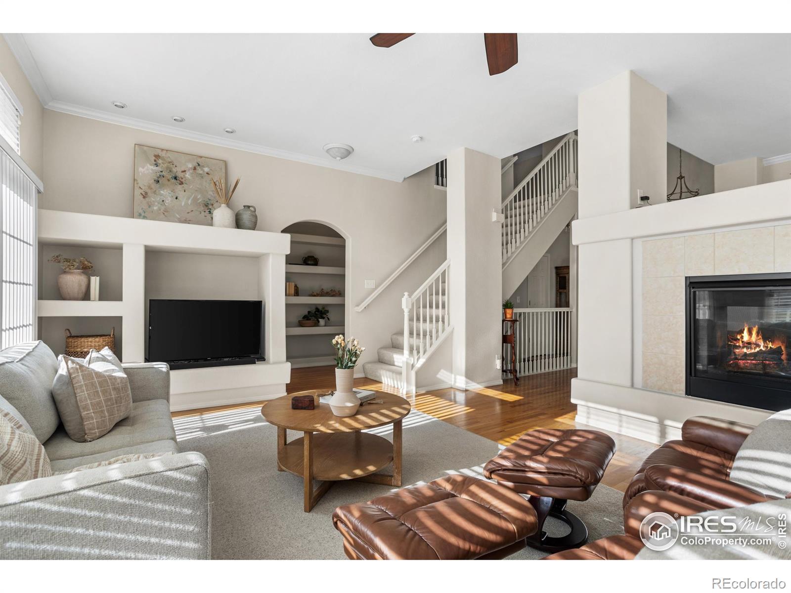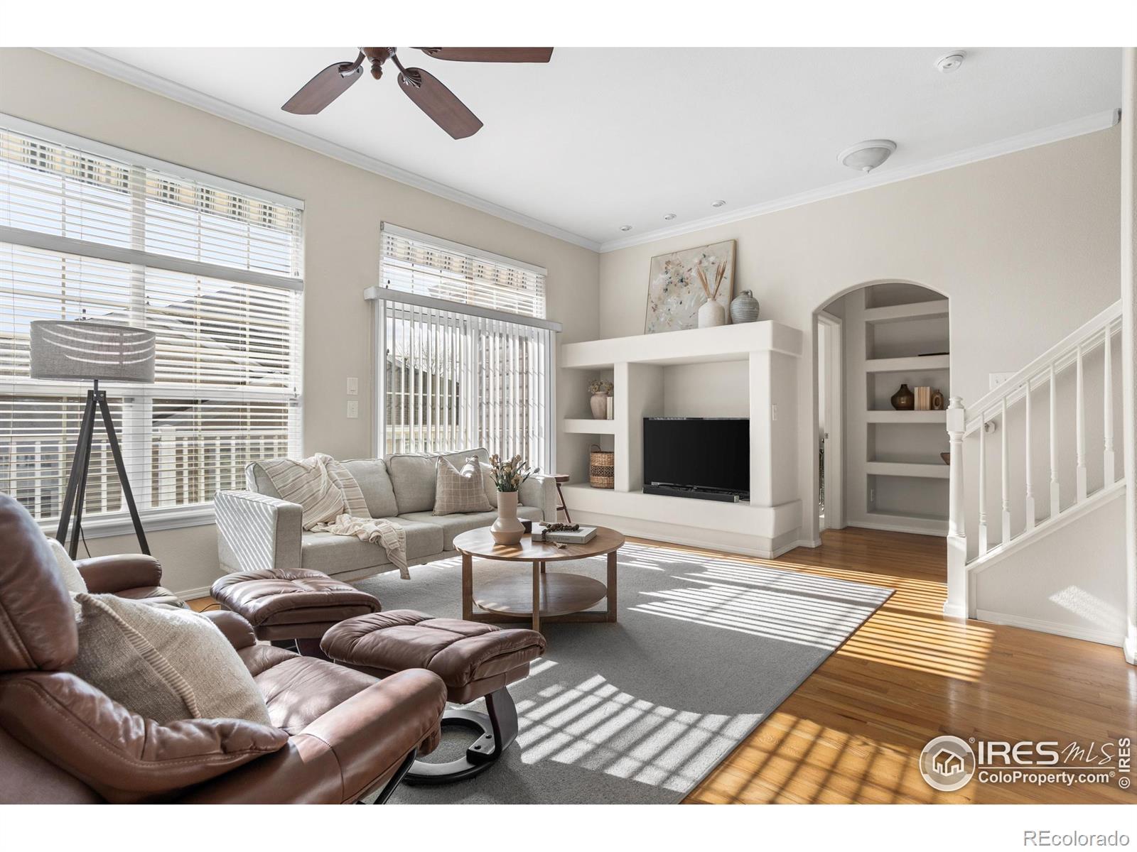 Welcome to this beautifully maintained 2-story townhome in The Promenade at Emerald Estates, offering comfort, style, and an unbeatable location. Fresh updates include new roof, windows, interior and exterior paint, and vinyl fencing, plus a Trex deck, covered patio, and back awning-perfect for outdoor enjoyment. Inside, you'll find oak hardwood floors, a dramatic 17' entry, crown molding, and a two-sided fireplace anchoring the living room with custom built-ins. The main-floor primary suite features plush wool carpet and a luxurious 5-piece bath with granite counters and a tiled shower with a bench, white cabinets with crown molding, granite countertops, full tiled backsplash, pantry, roll-out shelving, and stainless steel appliances, including electric range, refrigerator, dishwasher, and microwave. Upstairs offers a versatile loft, bedroom, and full bath, while the finished basement adds another bedroom and full bath along with a rec room and ample storage space for extra flexibility. HOA covers snow removal, lawn care, pool, water/sewer for the common areas, exterior maintenance, common areas, and management. Prime location with light rail less than 1 mile away-this one checks all the boxes! Solar is paid in full