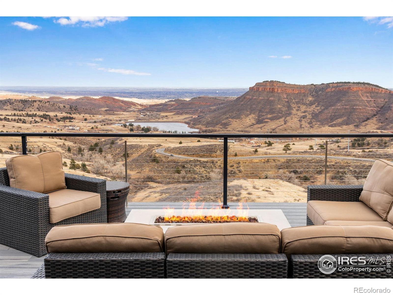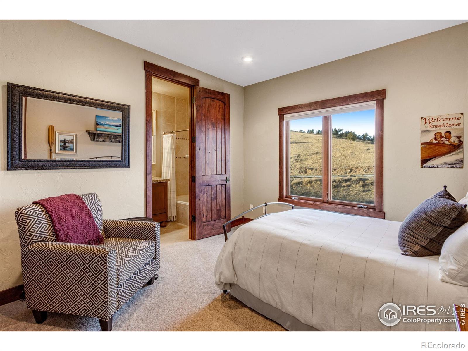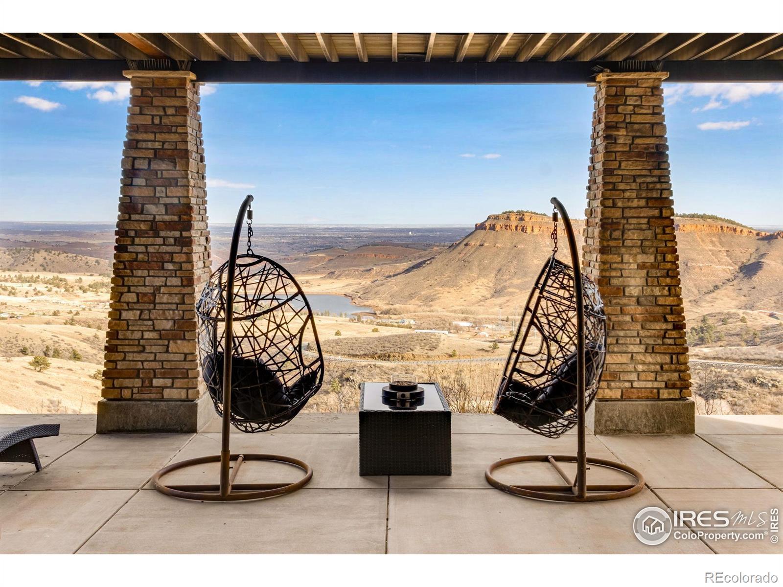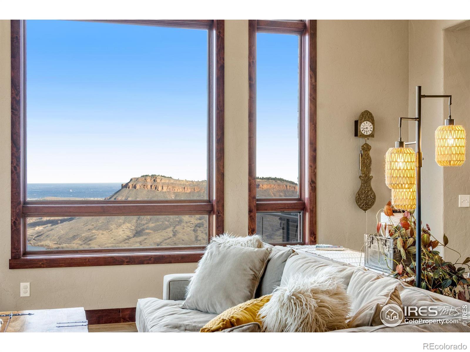 Enjoy all the finest landscape that Colorado has to offer from this beautifully appointed custom home. Minutes from Carter Lake and Flatiron Reservoir, this is the outdoor lovers perfect setting. Entertaining is a dream with the large patio, expansive deck and custom wet bar. City lights sparkle at night and water and red rock views stun during the day. Unmatched sunsets and sunrises as this home captures 360 degree views. This home offers a main floor primary suite as well as an additional main level ensuite and office. High ceilings with large windows and open floor plan make for comfortable and well thought living. Two spacious bedrooms with bathroom upstairs. Large recreation room compete with wet bar and bathroom in the lower level. Lower-level walks out to large patio with more views! Oversized 3 Car Garage and additional storage shed.