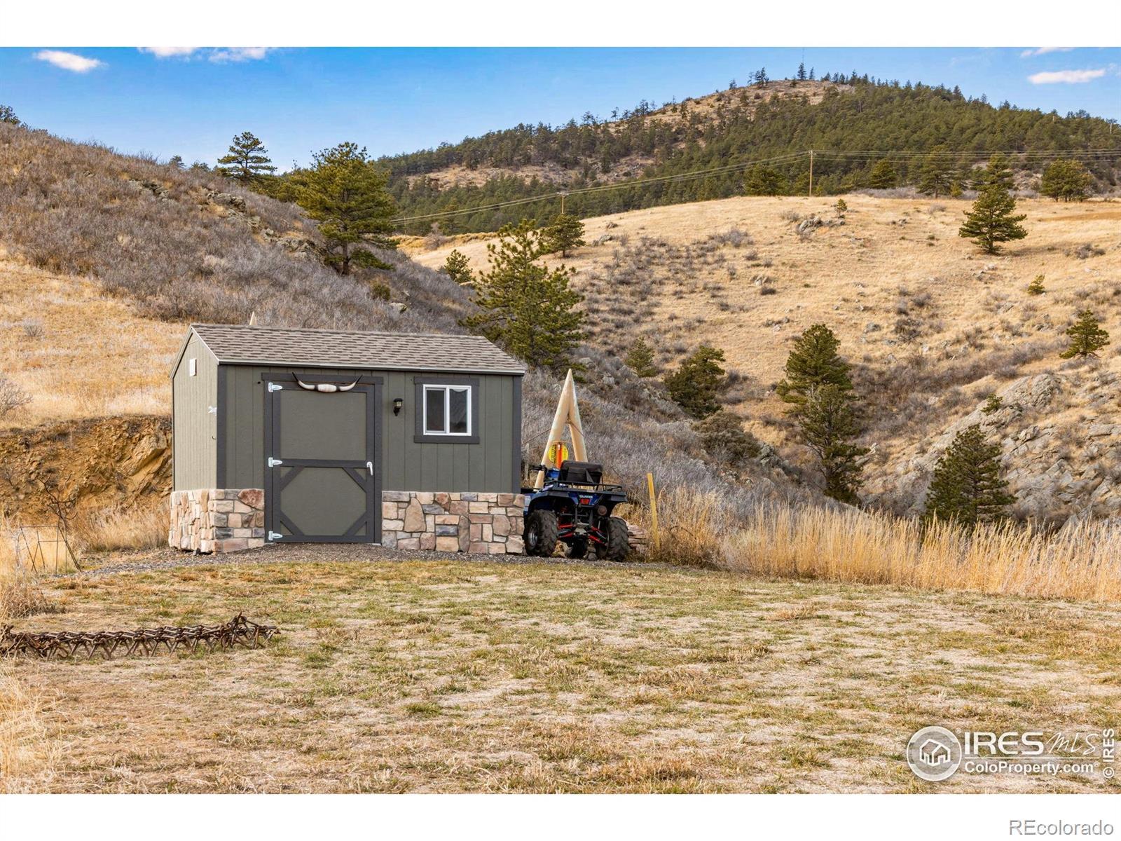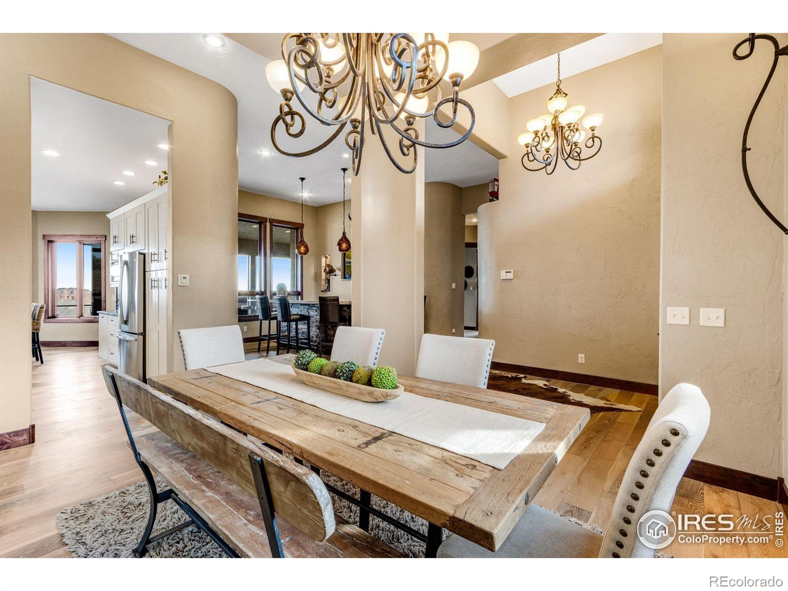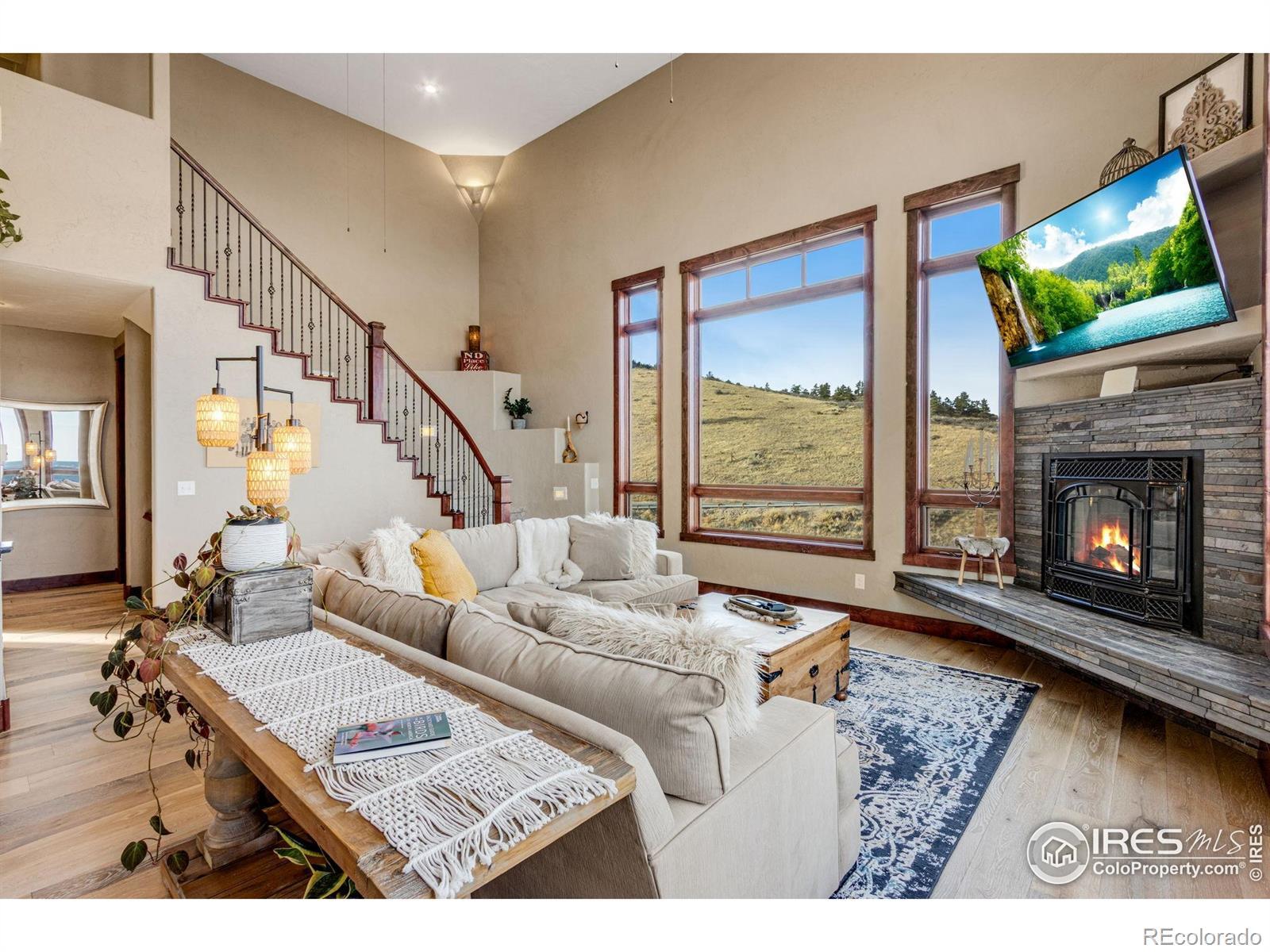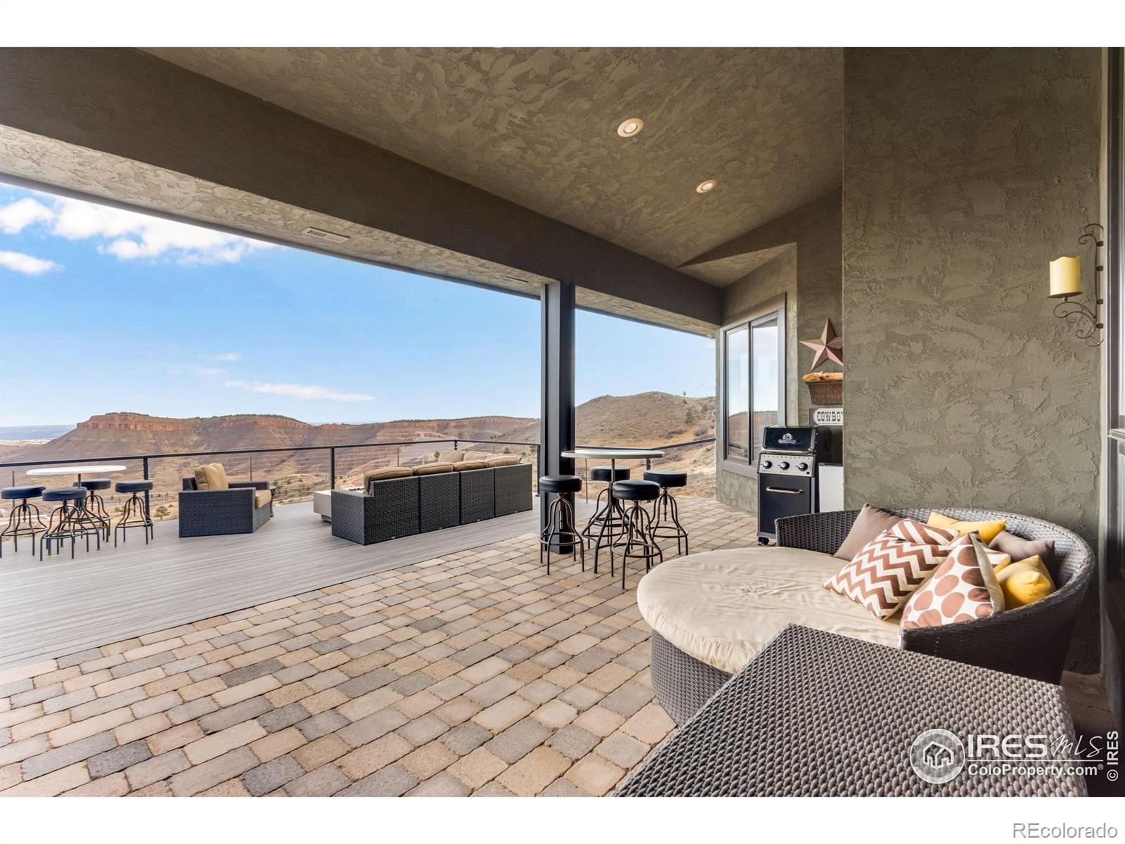 Enjoy all the finest landscape that Colorado has to offer from this beautifully appointed custom home. Minutes from Carter Lake and Flatiron Reservoir, this is the outdoor lovers perfect setting. Entertaining is a dream with the large patio, expansive deck and custom wet bar. City lights sparkle at night and water and red rock views stun during the day. Unmatched sunsets and sunrises as this home captures 360 degree views. This home offers a main floor primary suite as well as an additional main level ensuite and office. High ceilings with large windows and open floor plan make for comfortable and well thought living. Two spacious bedrooms with bathroom upstairs. Large recreation room compete with wet bar and bathroom in the lower level. Lower-level walks out to large patio with more views! Oversized 3 Car Garage and additional storage shed.