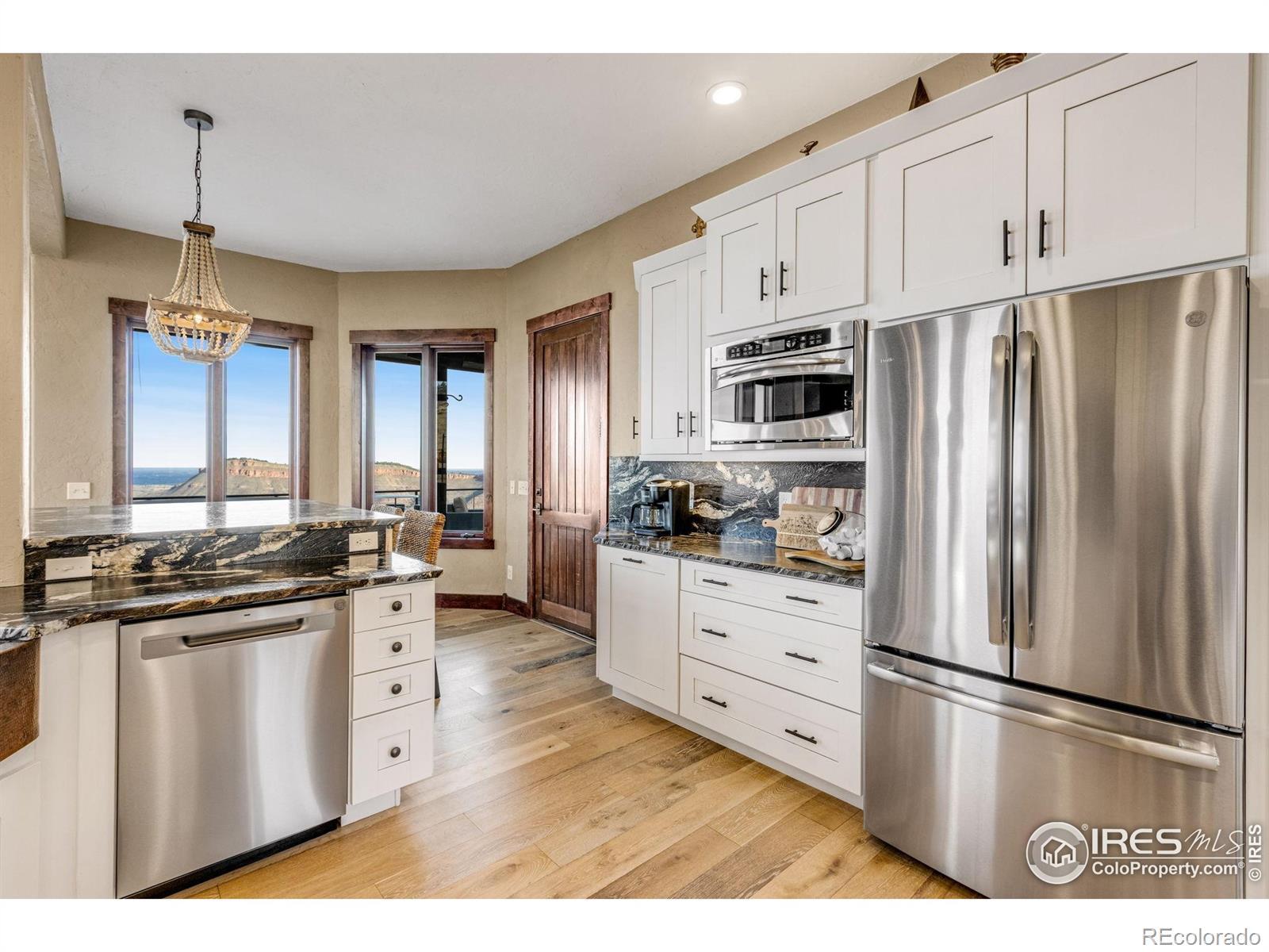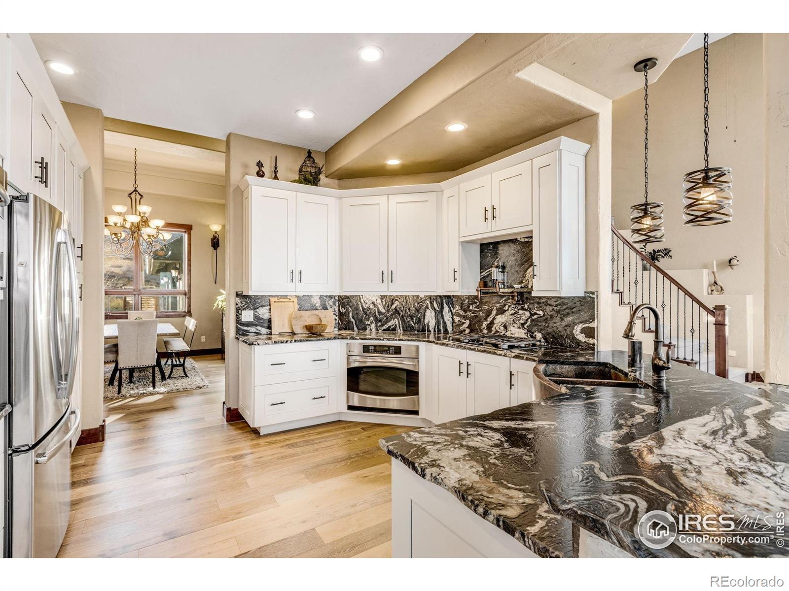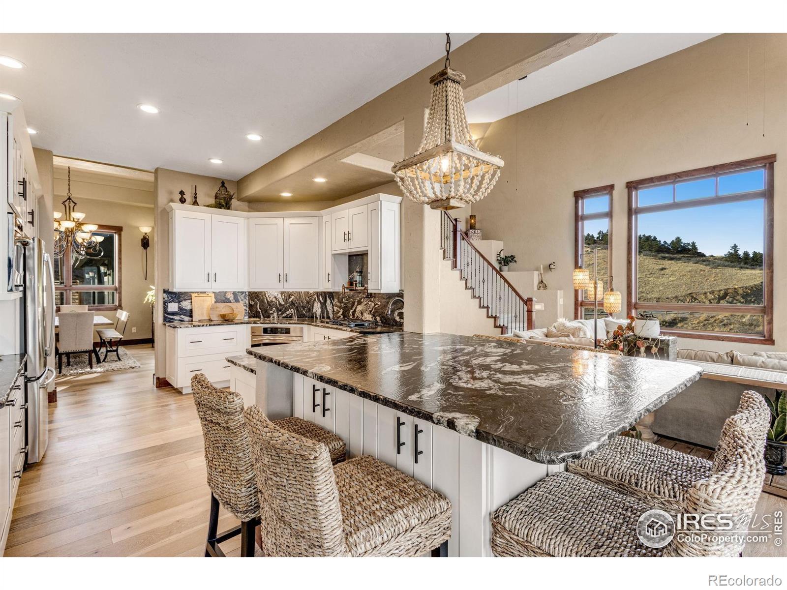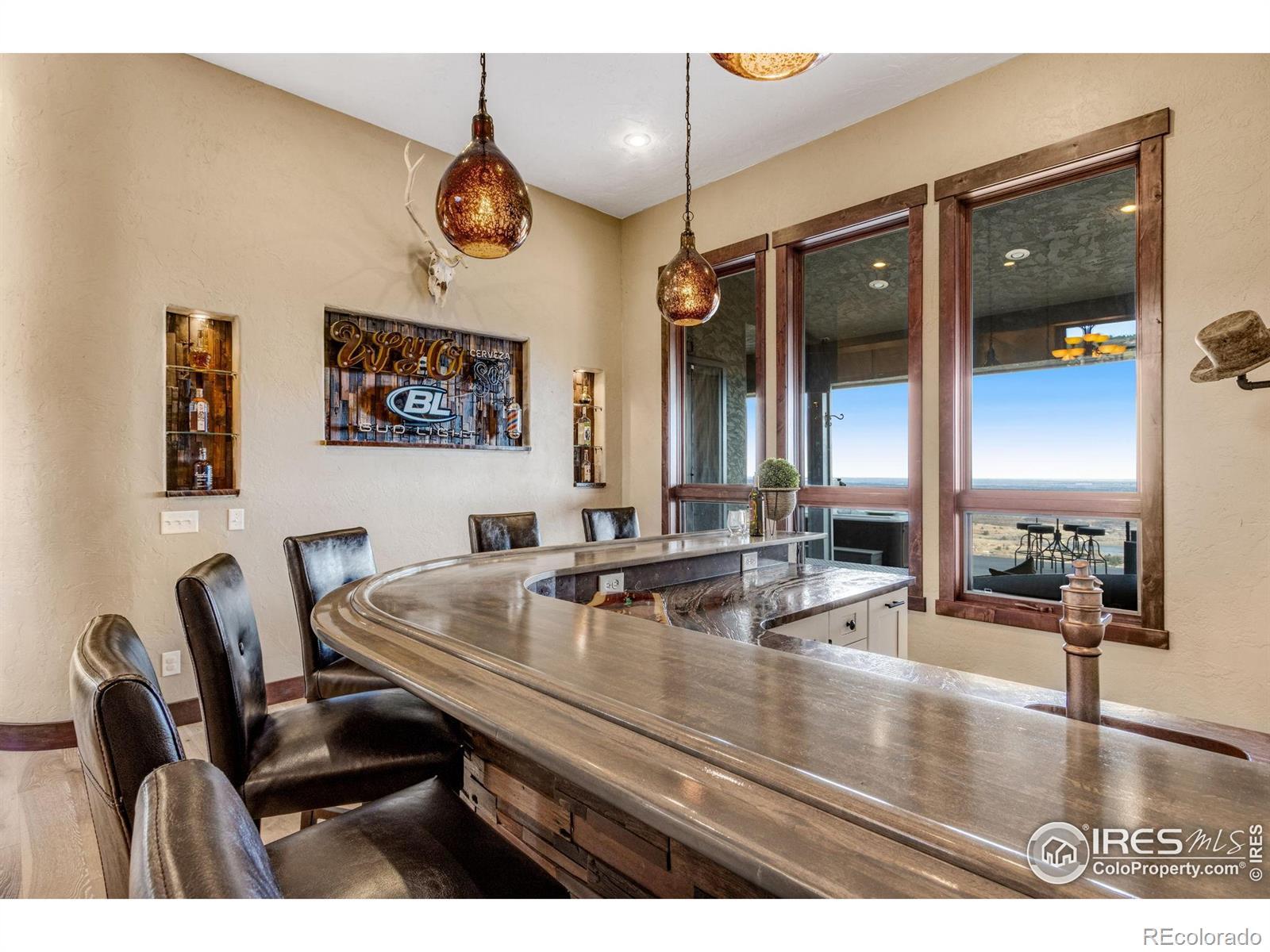Enjoy all the finest landscape that Colorado has to offer from this beautifully appointed custom home. Minutes from Carter Lake and Flatiron Reservoir, this is the outdoor lovers perfect setting. Entertaining is a dream with the large patio, expansive deck and custom wet bar. City lights sparkle at night and water and red rock views stun during the day. Unmatched sunsets and sunrises as this home captures 360 degree views. This home offers a main floor primary suite as well as an additional main level ensuite and office. High ceilings with large windows and open floor plan make for comfortable and well thought living. Two spacious bedrooms with bathroom upstairs. Large recreation room compete with wet bar and bathroom in the lower level. Lower-level walks out to large patio with more views! Oversized 3 Car Garage and additional storage shed.