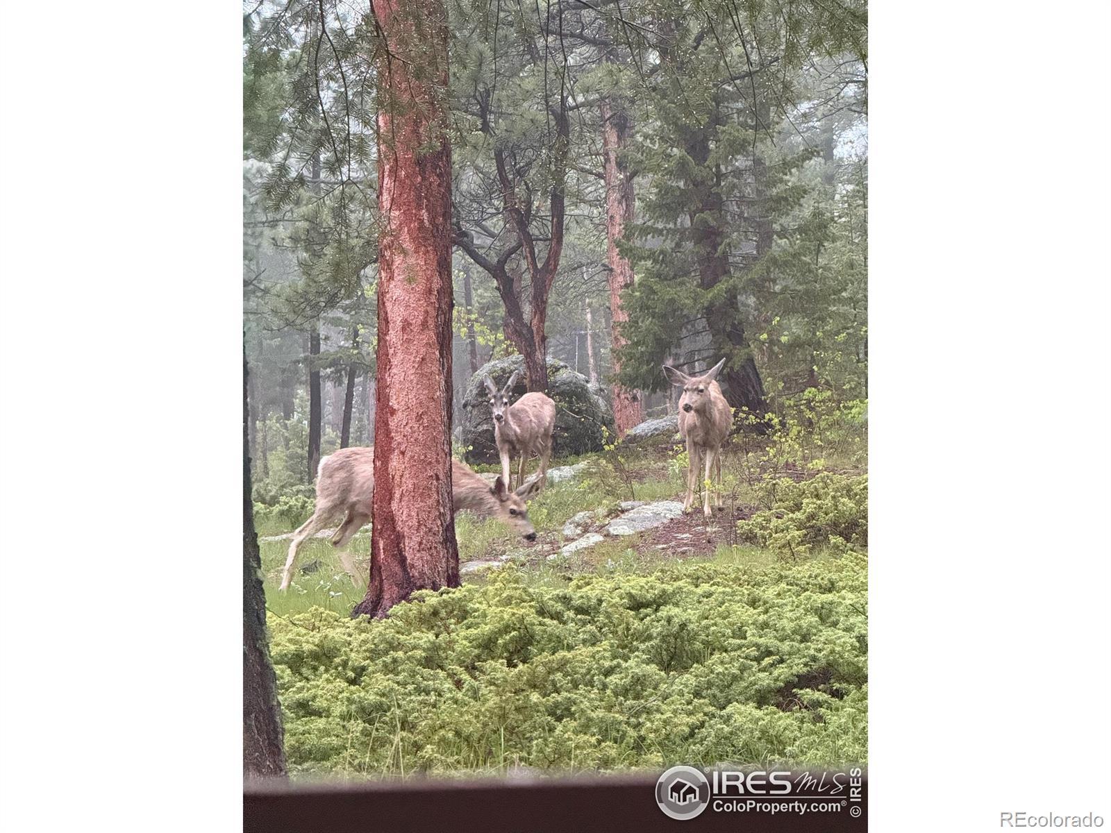 This is a place for people who come to the mountains to build a life. Quietly set among pine and aspen groves, this updated mountain home PLUS 2400 SF BARN/WORKSHOP sits on FIVE ACRES of usable land. The picturesque site is walkable & alive with seasonal wildflowers and glows with color in autumn as the aspens turn. There are no visible or audible neighbors here. Just quiet, wildlife, and land where you can garden, hike and watch the butterflies. Inside, vaulted ceilings and large windows open to the surrounding trees and sky. An upstairs loft that provides additional flex space. The main level primary bedroom supports single-level living and includes a five-piece bath with a steam shower. Two additional bedrooms are inviting. The interior has been updated over time, with newer flooring upstairs, updated bathrooms featuring quartz counters, and a modern steel stair railing. The kitchen is anchored by slate floors, granite counters, and light wood cabinetry and generous culinary space. A wood-burning stove brings warmth to the heart of the home. Twelve-inch-thick walls, radiant in-floor heat, and a geothermal cooling system help regulate comfort year-round. A south-facing sunkissed patio creates outdoor living space, staying warm through much of the year with an outdoor kitchen with a built-in gas grill and smoker. Four raised garden beds are already in place. A gazebo offers a shaded place to daydream. A chicken coop and woodshed sit nearby. Designed to function in all seasons, from bluebird days to snow days with solar system + generator. Walk to a private trail with long back range views or head downhill to riverside hiking. National Forest access, skiing, and renowned recreation are close by. Boulder is an easy, scenic drive to shopping and other everyday services. RMNP and Estes Park are close enough for lunch or an afternoon hike. If this looks great on your screen, I promise it will be even better in person.