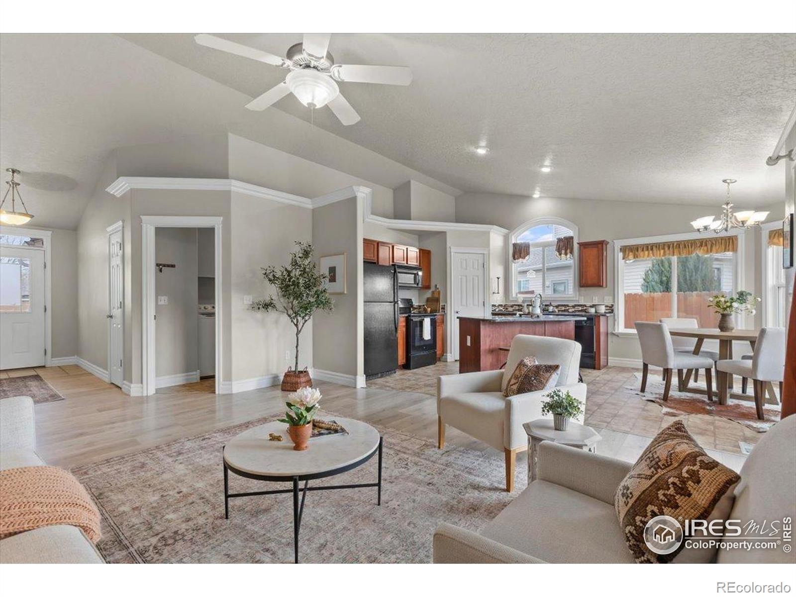 1003 Elgin offers one of the best values in Fort Collins. Where else can you find a well-maintained ranch-style home backing to open space for under $500,000? This inviting home features a bright, open-concept layout with vaulted ceilings and abundant natural light from south- and west-facing windows. With three bedrooms-including a spacious primary suite with a private bath-there's room to relax and spread out. The kitchen is designed for both function and style, offering generous prep space, stone countertops, a central island, and a large pantry. Step outside to a sizable backyard that abuts HOA-owned open space, perfect for evening walks and enjoying stunning western sunsets. Even more trails and open space await just across the street. Complete with two full bathrooms and a two-car garage, this home checks all the boxes for comfort, functionality, and value. Don't miss your opportunity-come see it for yourself!