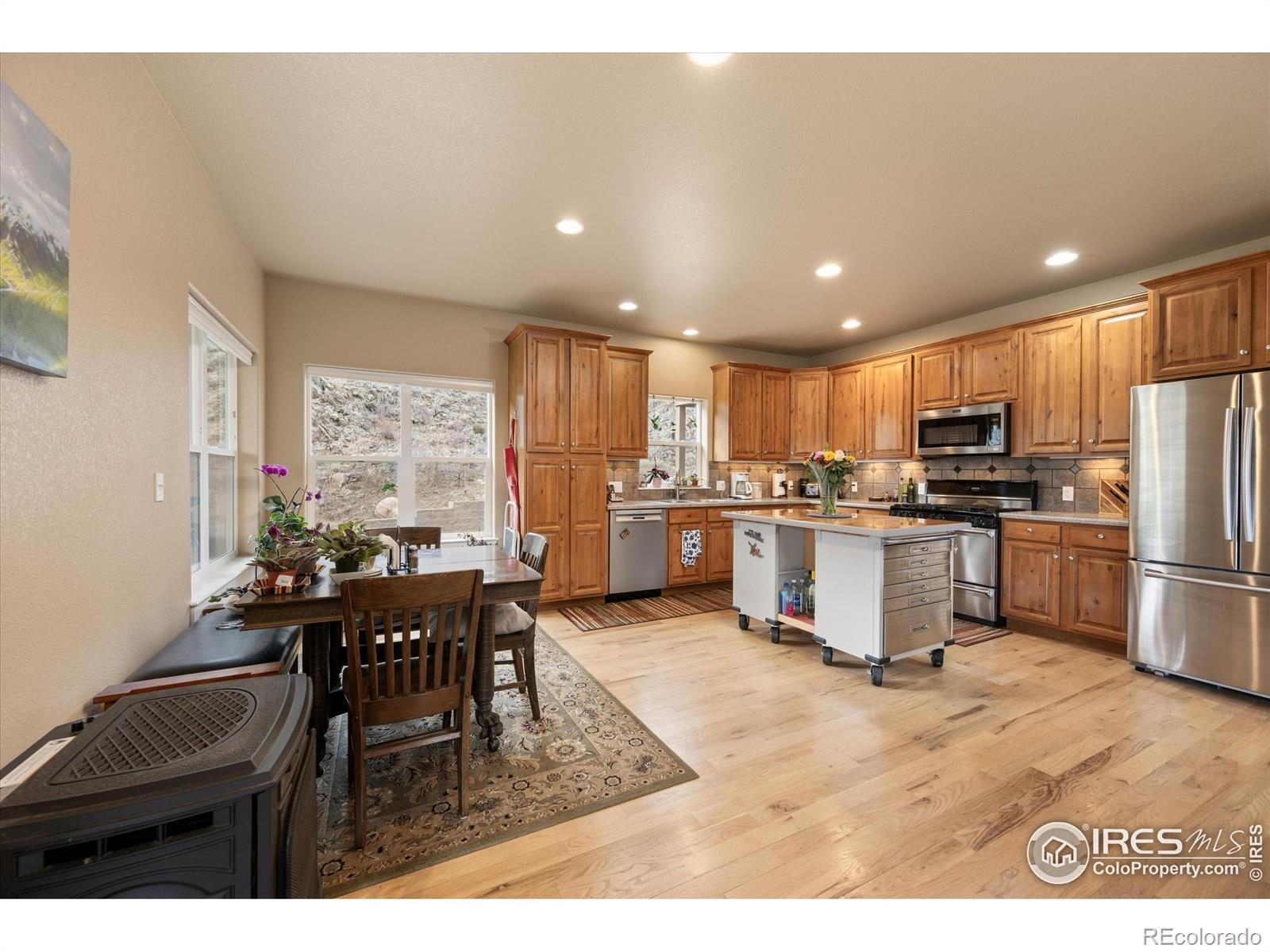 This welcoming home blends everyday comfort with rustic charm and endless adventures. The main level offers a cozy living room with wood floors and generous windows that frame sweeping mountain views. The primary suite is a true retreat, with a walk-in closet, private bath, and radiant floors for comfort during those chilly mornings. Upstairs, two additional bedrooms and a spacious family room offer flexible space for relaxing, working from home, crafts, workout space, or office. The walk-out basement adds a quiet bedroom with peaceful views, along with a large storage and utility area. Step outside and embrace your own private escape-unwind in the hot tub beneath Milky Way skies, share stories around the gas fire pit, or simply soak in the calm of your surroundings. An oversized garage offers room for parking, shop space, or hobbies, while the 962 sq ft heated and insulated shop with 10-foot door is ideal for larger vehicles, equipment, projects, and toys. Horses will enjoy grazing in the lush meadow, supported by a 1/10th interest in Fry & Haskins Ditch water rights. Backing to National Forest, the property is a haven for wildlife, including deer, moose, bear, and a wide variety of colorful birds. Just along the main road, the Cache La Poudre Canyon delivers world-class fishing, while nearby Mishawaka hosts live summer music under the stars while dining. Watch rafters drift by, or be inspired to join them. Red Feather Lakes, only 25 minutes away. In either area you will find recreational opportunities, from skiing and hunting, to hiking, kayaking, cross-country skiing, and snowshoeing, or plein-air painting and photography. Ft Collins only an hour away, Steamboat Springs about an 1-1/2 hours away. This true Colorado Lifestyle property offers comfort, convenience, and year-round outdoor enjoyment. Note that websites showing insurance pricing are not represented by the owner or this broker; buyers should contact their own insurance providers for local information.