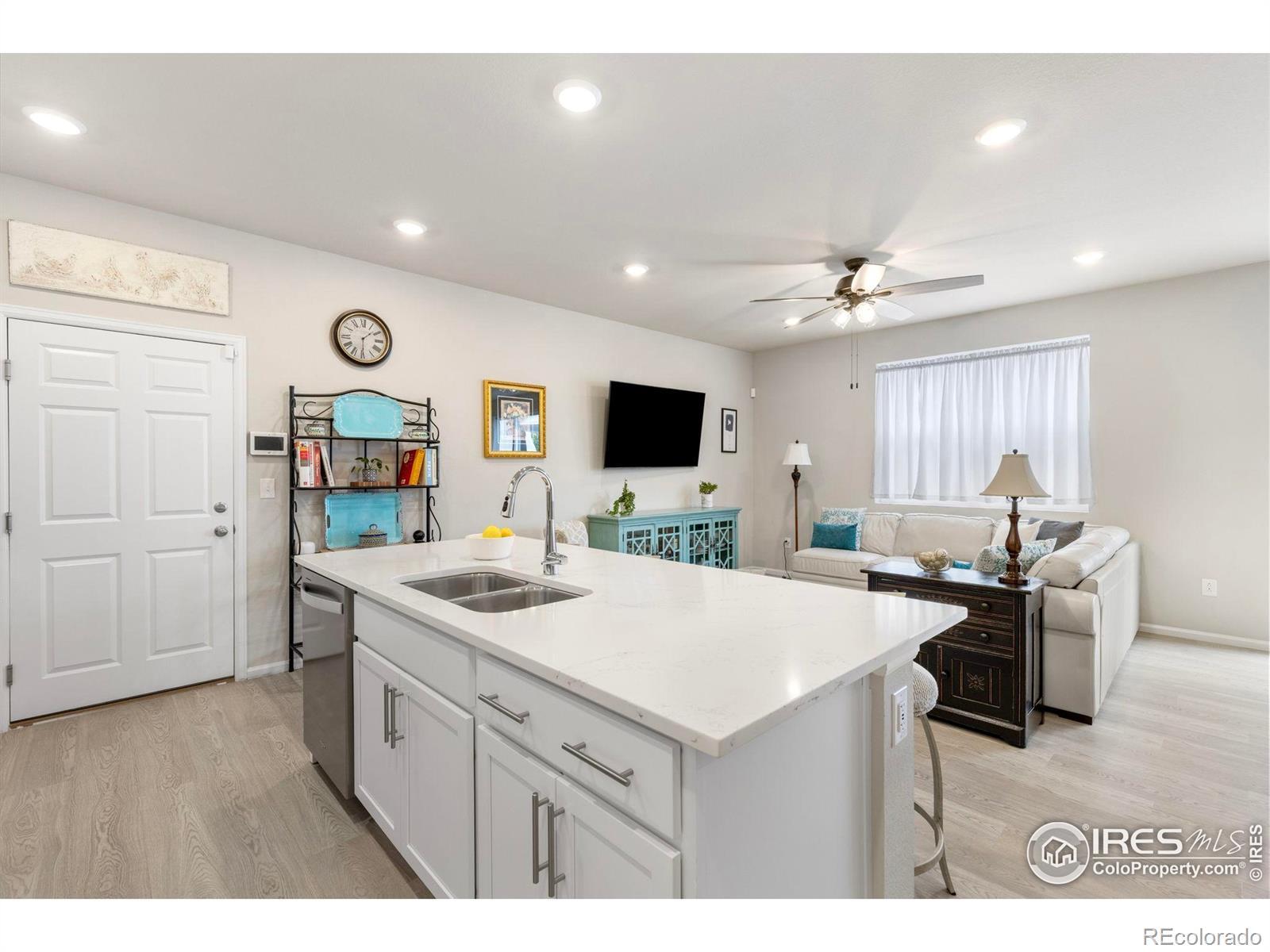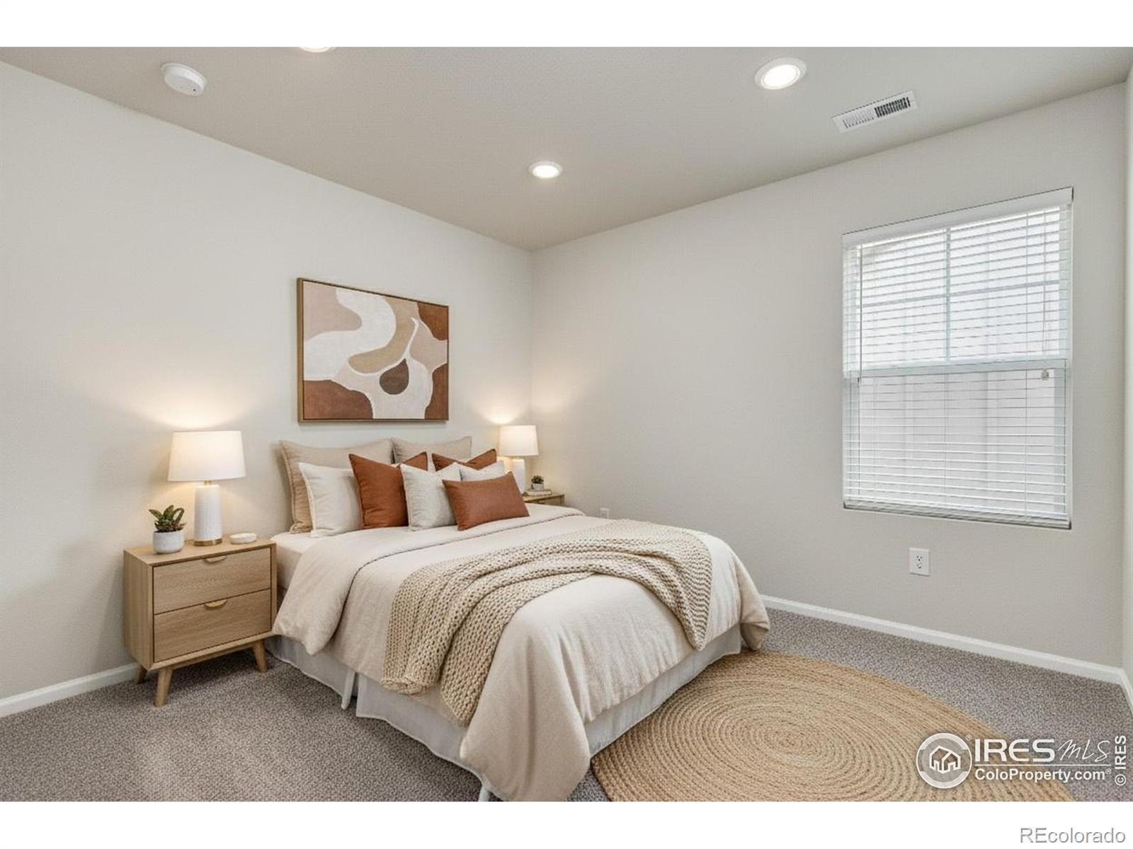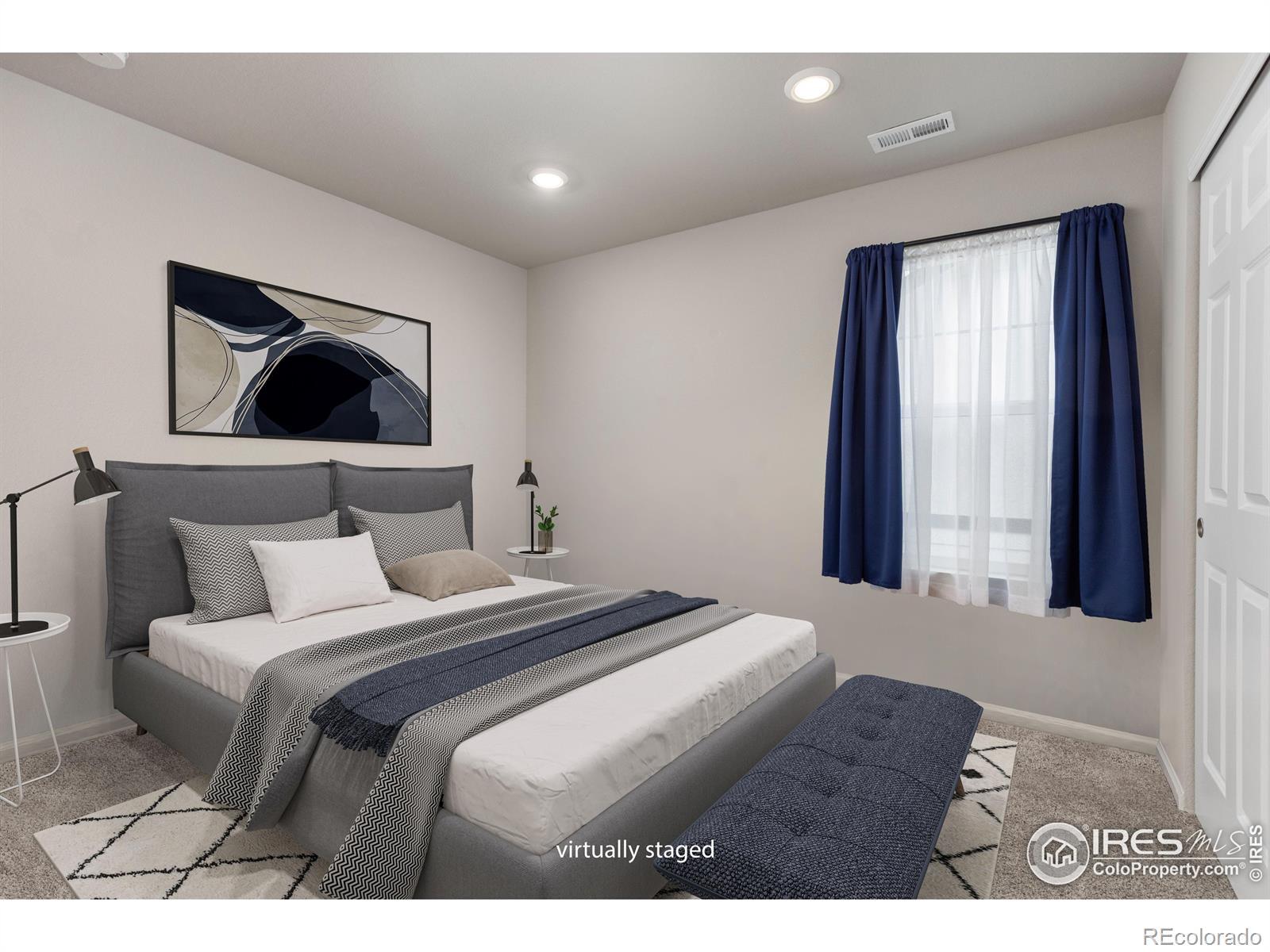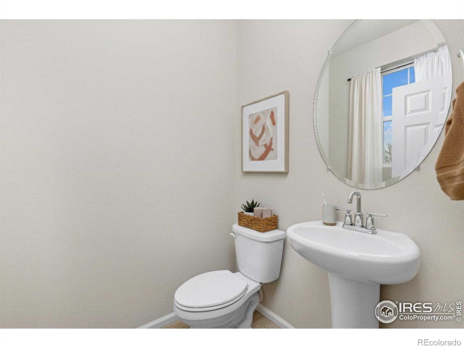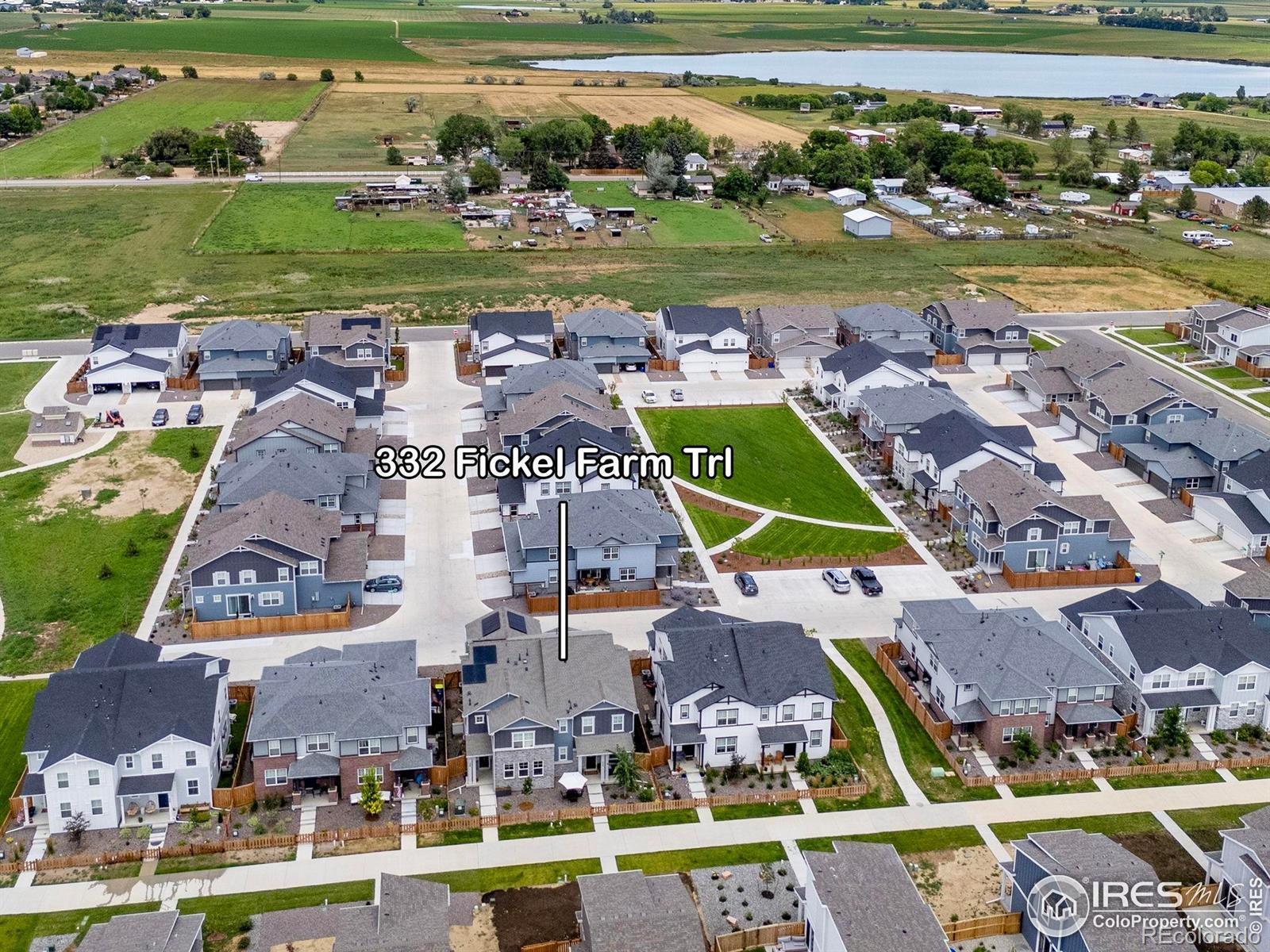 A spacious, zero-maintenance, energy-efficient 3-bedroom, 2.5-bath smart home in idyllic Berthoud, offering no Metro District tax and a low 0.66% property tax rate. Ideally located just steps from Pioneer Park-with a pond, soccer fields, basketball courts, and playgrounds-this home sits in a quiet neighborhood with no through traffic, surrounded by established, tree-lined streets. At the heart of the home is an exceptionally large, light-filled kitchen that anchors the entire main level. Designed for both everyday living and entertaining, it features expansive 42" cabinetry, an oversized 8-foot quartz island, walk-in pantry, gas range, Whirlpool appliances, and abundant lighting. The kitchen flows seamlessly into the dining and living areas beneath nine-foot ceilings and expansive low-e windows. A cedar picket fence frames the irrigated xeriscape front yard with mature shade trees, a covered porch, and space for outdoor dining or grilling. Sliding doors open to a private, cedar-fenced side yard with turf for easy upkeep. The main level also includes a half bath and a bright flex space ideal for an office or playroom. Upstairs, the primary suite offers a sitting area and generous walk-in closet, joined by two large bedrooms, a full bath, and convenient laundry. The nearly finished basement provides approximately 600 sq. ft. of carpeted living space with bright lighting, pre-plumbing for a future bath, and excellent storage-ideal for a playroom, office, or creative studio. Additional highlights include Carrier HVAC, radon mitigation (<1 pCi/L), smart garage opener, oversized garage with soaring ceilings, and modern energy-efficient systems throughout. This home offers a peaceful, low-maintenance lifestyle with access to top-rated Thompson schools, historic downtown Berthoud, Carter Lake, and over 15 miles of trails. Turn-key homes with this kitchen, location, and tax advantage are rare.