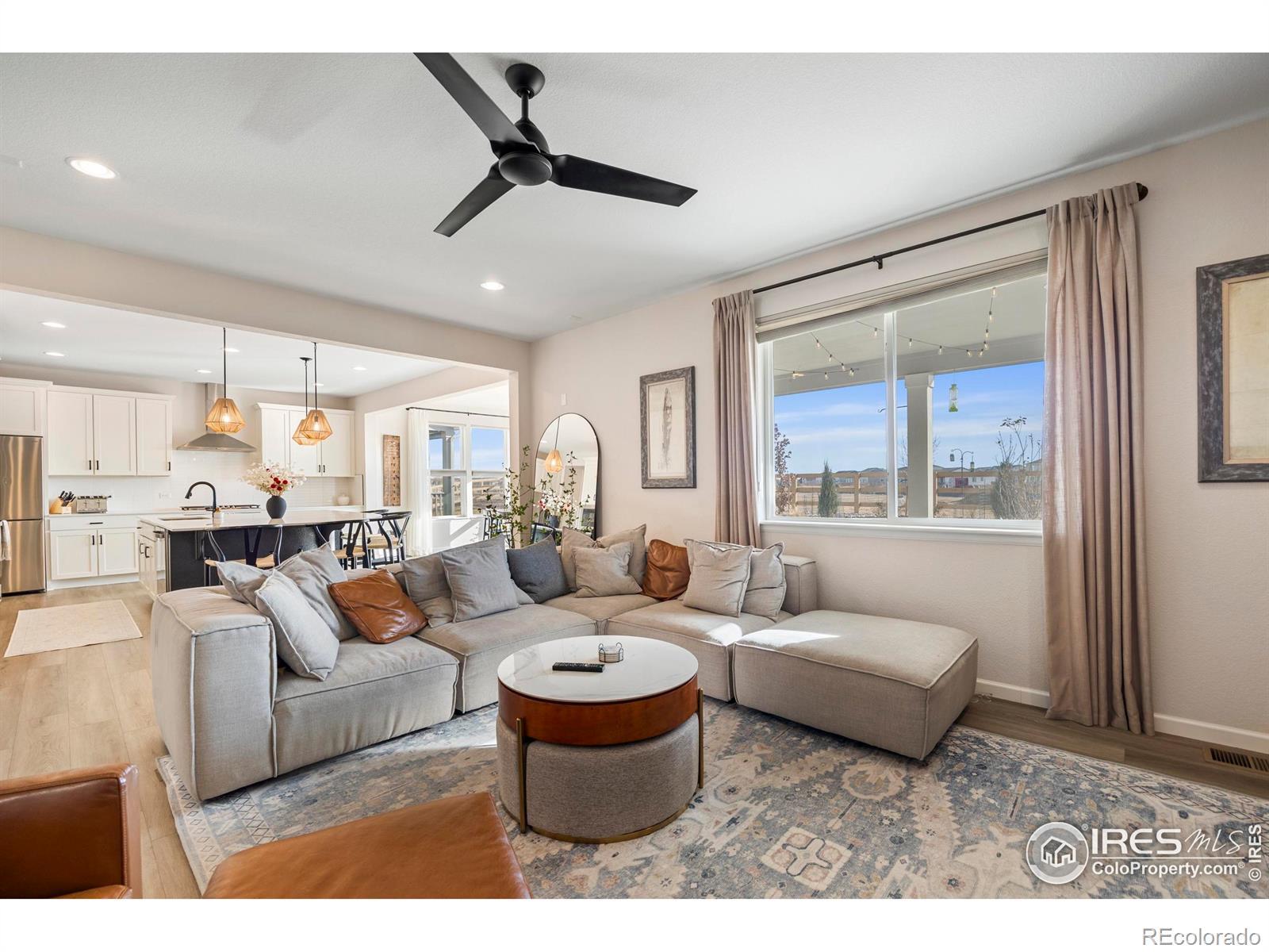 Welcome to this impeccably designed home showcasing designer finishes and thoughtful details throughout. The open-concept main floor is crafted for elevated entertaining and effortless daily living, highlighted by an inviting great room with a cozy corner fireplace. At the heart of the home, the gourmet kitchen is both striking and functional, featuring an oversized quartz center island, stainless steel appliances, and an expansive walk-in pantry. The kitchen flows seamlessly into a light-filled sunroom/dining area with vaulted ceilings-an elegant space ideal for intimate gatherings or relaxed mornings. A stylish office, and powder bath complete the main level. Upstairs, you'll find the primary bedroom, three generously sized secondary bedrooms, a versatile loft, and a conveniently located laundry room. The private primary suite features a luxurious spa-inspired oversized shower and walk-in closet, creating a true sanctuary.The finished basement extends the home's versatility, offering a spacious recreation room, an additional bedroom, and a beautifully finished full bath with walk-in shower that is perfect for hosting guests or creating a private escape. In the backyard, the landscaping has been thoughtfully designed with a flagstone walkway to the custom entertainment area featuring a 16-foot paver patio complete with built-in bench seating, encircling a smokeless fire pit featuring a custom stone surround. The yard utilizes high-end, low-maintenance turf on a leveled lot, offering great activity space, and the area is illuminated by comprehensive landscape lighting. Other features include a French drain system running the length of the backyard, epoxy on the garage floors and upgraded window coverings! Come experience all that Prairie Song has to offer! Community plans include The Nest lifestyle center, planned to open 2028 and expected to feature a water park with waterslide, indoor and outdoor flex spaces, gathering areas, and expansive community trails!