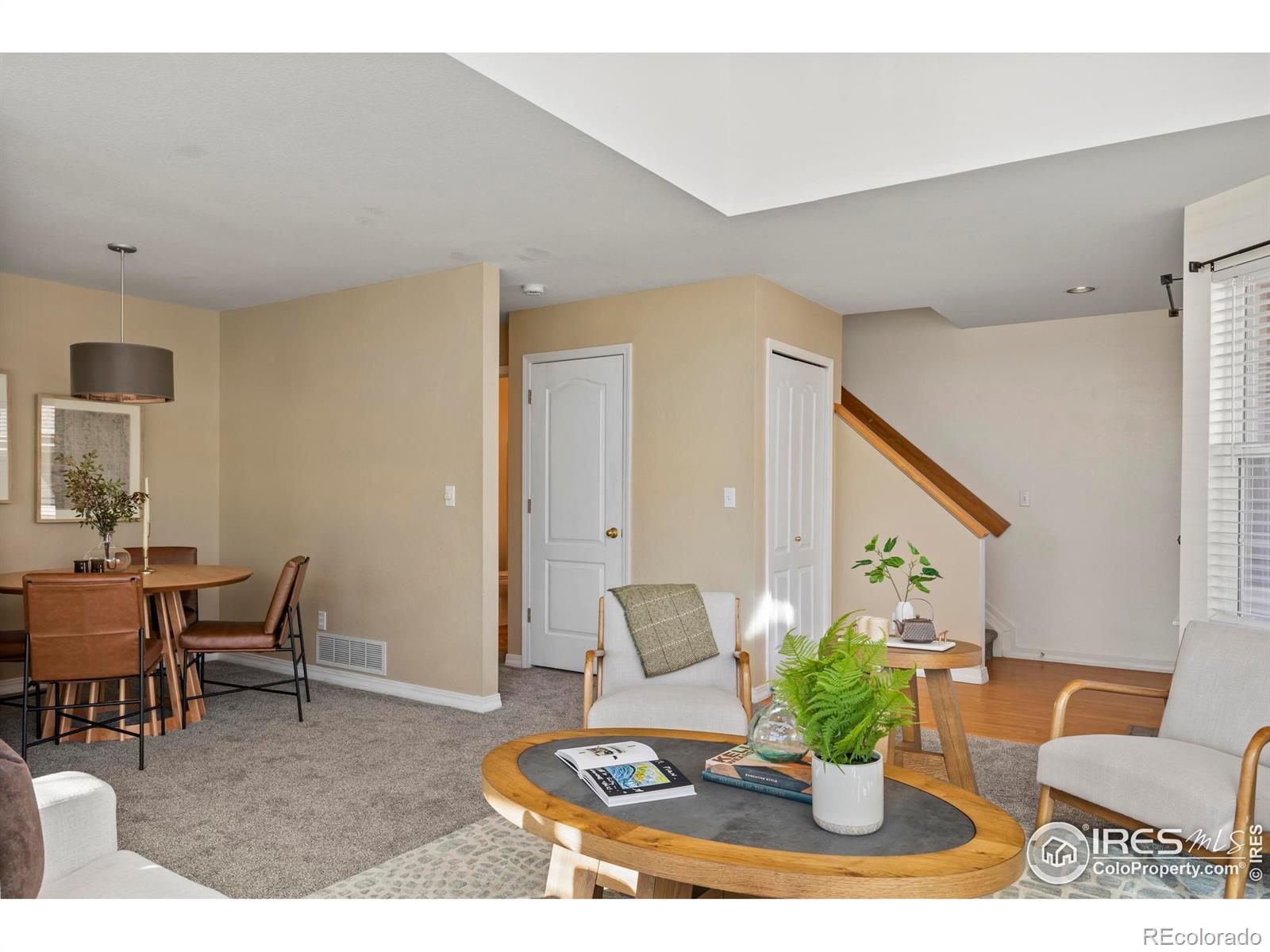 New Furnace, New A/C, New Appliances, New Carpet!! Keep your $$$ in the bank!! This end unit offers you peace of mind for the New Year! A 3-bed/3-bath home with a newer water heater, new smoke detectors, newer patio door and several windows, and 1-car detached garage that's steps away from your front door. Great vaulted, open floor plan. Private patio with gate for your furry friends. A roomy kitchen with laminate floors, plenty of cabinets and room for your bristro table/chairs. Dining room/flex space. Upstairs you'll love the large primary bedroom with double closets, ceiling fan and full bathroom. Upper 2nd bedroom or office space. Amazing private, finished basement with a 3rd bedroom, living room and 3/4 bathroom could provide a great opportunity for additional income. Newer washer/dryer included. HOA includes water/sewer, exterior maint., haz. ins., trash and park. Easy access to Open Space and the Power Trail. No Metro District.