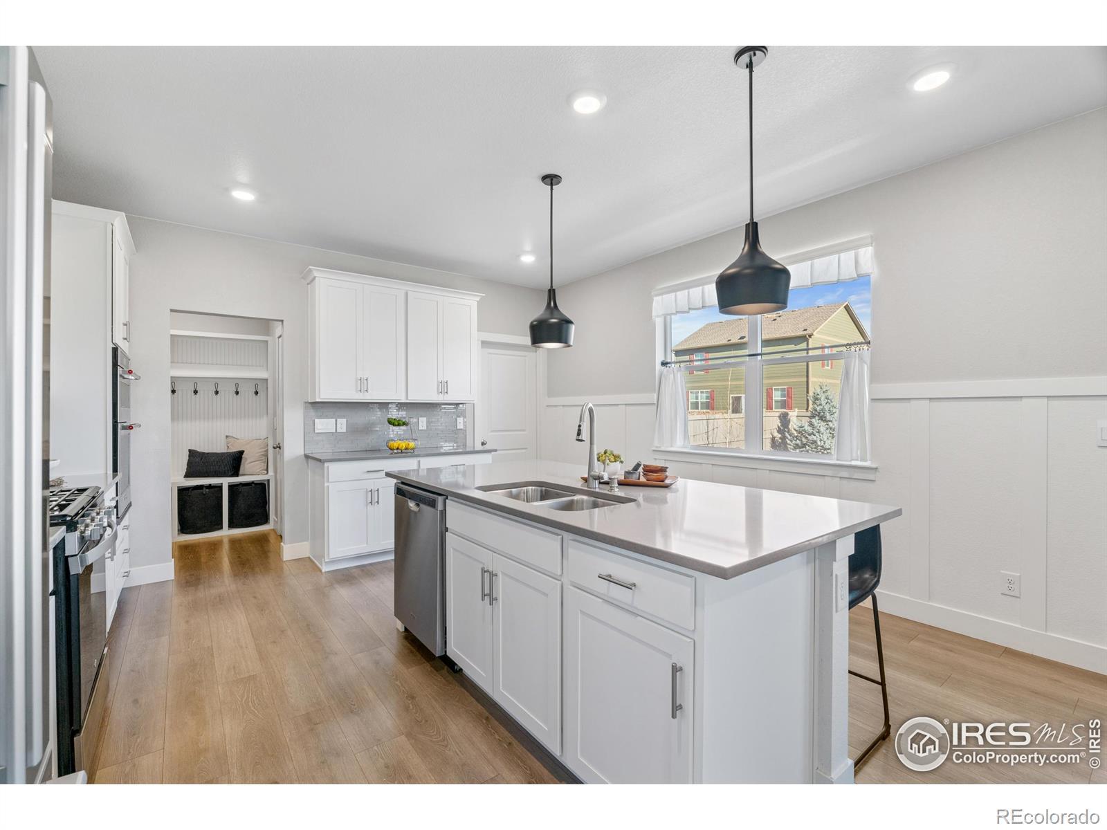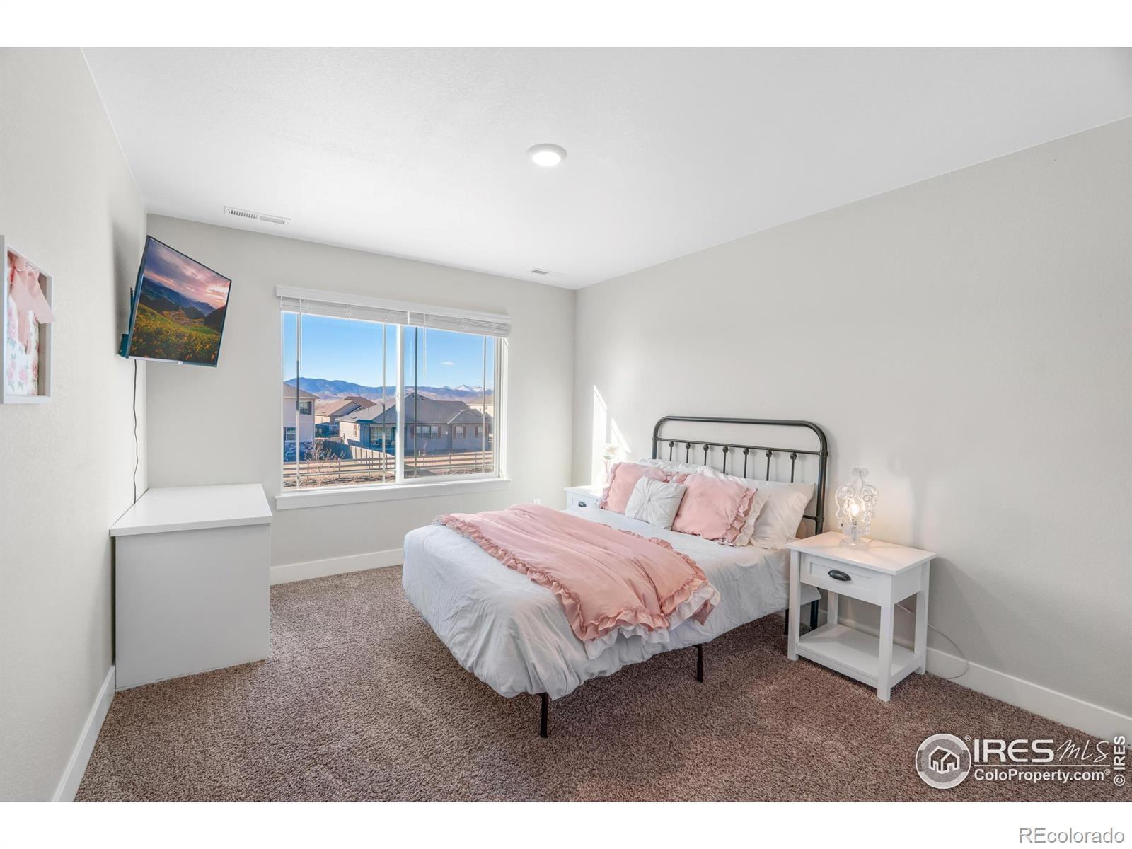Open House Saturday 10am-Noon & Sunday 11am-1pm! This extensively upgraded 5-bedroom, 5-bath home offers a rare combination of high-end finishes, a fully finished basement, and arguably one of the nicest backyards in the neighborhood. The gourmet kitchen features double ovens, a gas range, quartz countertops, soft-close cabinetry, custom lighting, and a built-in eat-in nook with a custom booth. Thoughtful upgrades continue throughout the home, including a flexible upstairs layout with a guest ensuite and a finished lower level with a 3/4 bath and added electrical panel. Set on a quiet street that faces backyards rather than driveways, the home enjoys minimal traffic along with mountain views and peeks of Loveland Reservoir. The backyard is a true highlight-professionally landscaped with an oversized patio, artificial turf, fencing, cobblestone accents, and mature and newly planted trees, creating a beautiful, low-maintenance outdoor space ideal for entertaining or relaxing. Located in one of Berthoud's most desirable communities, residents enjoy neighborhood amenities including a pool, splash pad, playgrounds, dog parks, and trails, plus access to TPC Colorado's resort-style pool, fitness center, and dining perks. Walkable to Berthoud Elementary, the Recreation Center, and Waggener Farm Park, and ideally positioned between Fort Collins, Boulder, and Denver, this home delivers the best of Northern Colorado living. Preferred lender offering a rate incentive!