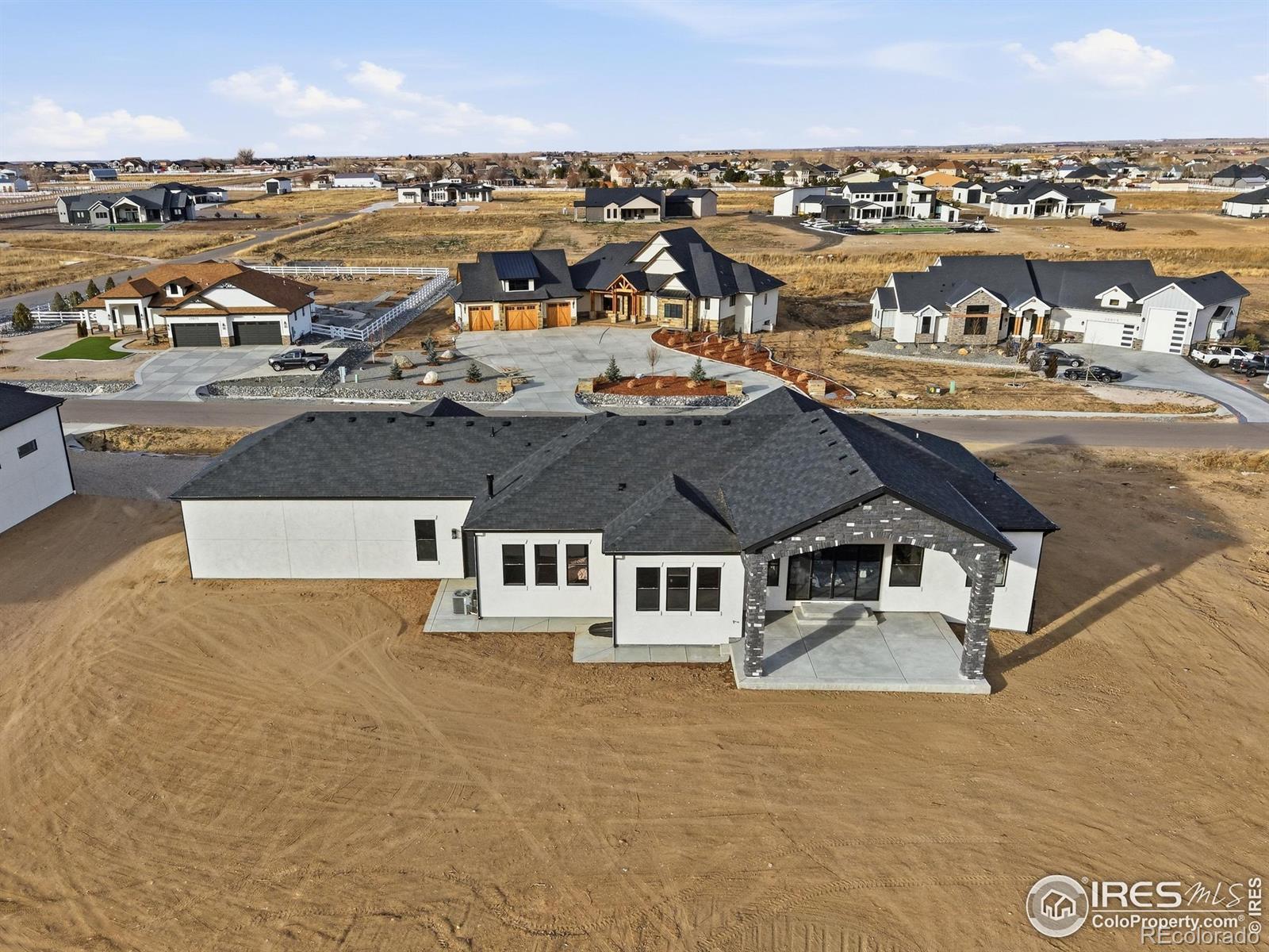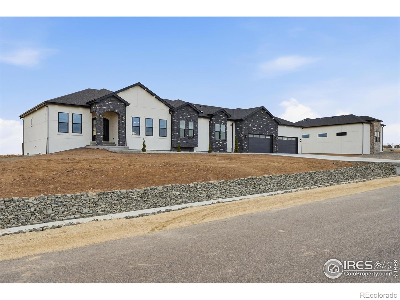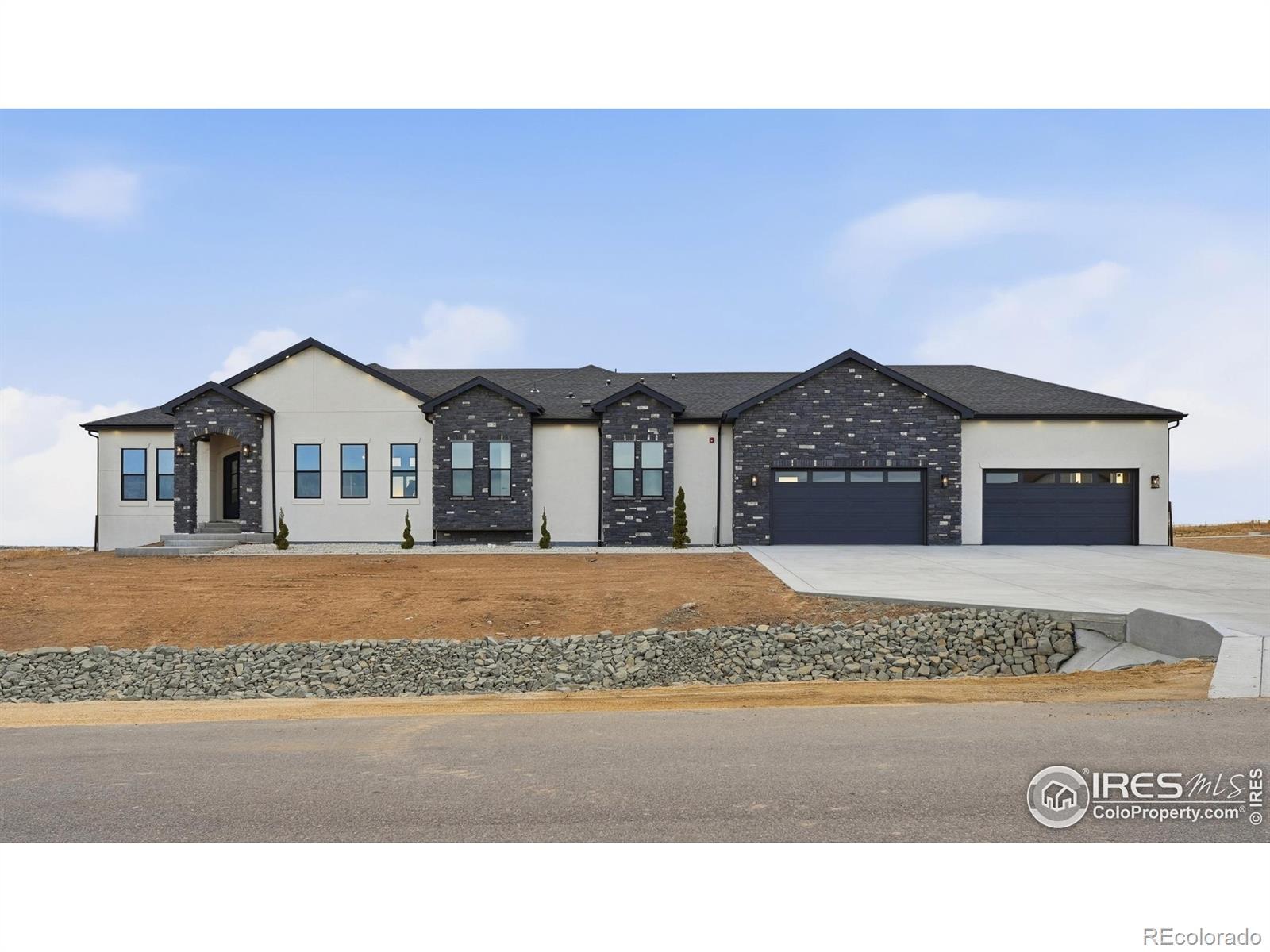 Experience the rare blend of modern luxury and Colorado ranch living in this exceptional new-construction residence, thoughtfully designed for those who value space, comfort, and intentional living. Set on a generous lot within a peaceful ranch-style community, this home offers the freedom of open surroundings with the convenience of nearby city access. From the moment you arrive, the striking modern elevation and covered porches invite you to slow down and enjoy the setting. Inside, expansive windows and soaring ceilings fill the open-concept layout with natural light, creating an effortless flow between the great room, dining area, and chef-inspired kitchen, ideal for both intimate moments and memorable gatherings. A statement fireplace anchors the living space, adding warmth and character year-round. The main-level primary suite is a true retreat, offering privacy, comfort, and a spa-like bath designed for relaxation at the end of the day. Additional main-floor bedrooms and a dedicated office provide flexibility for family, guests, or working from home. The fully finished basement extends the lifestyle even further, featuring multiple bedrooms and baths, an entertainment space, bar area, gym, and room to host, unwind, or create a multigenerational living environment. Every space has been designed with purpose and ease in mind. A rare four-car garage offers abundant room for vehicles, storage, and recreation, perfect for those who embrace an active Colorado lifestyle. Surrounded by wide-open skies and a sense of breathing room, this ranch-style neighborhood offers a peaceful escape while remaining minutes from Brighton's shopping, dining, schools, and commuter routes to Denver and DIA. This is more than a home, it's a place to live expansively, gather meaningfully, and enjoy the luxury of space, both inside and out