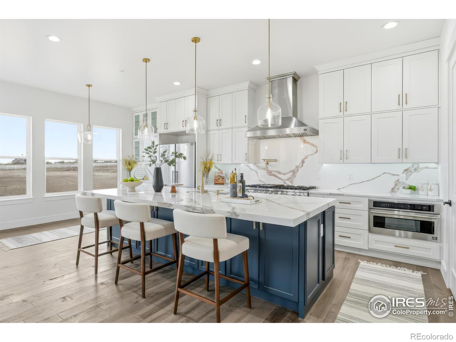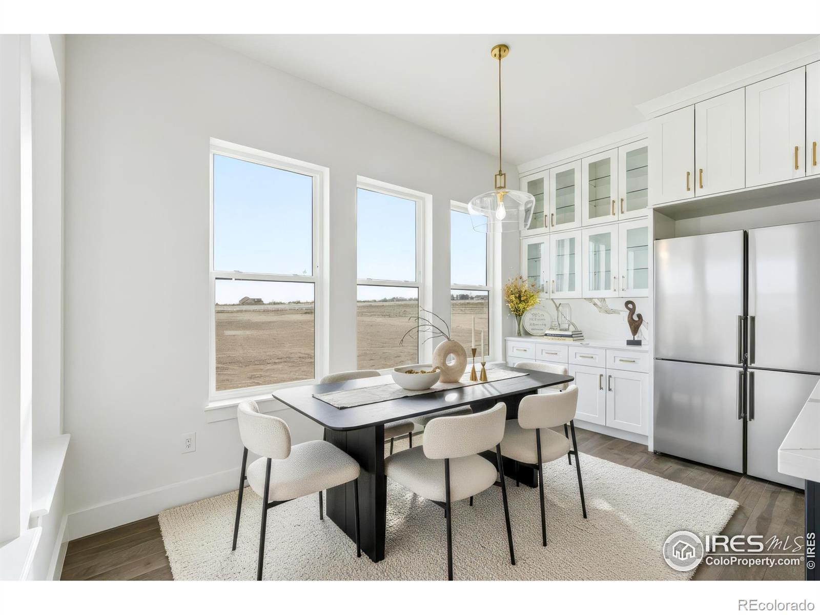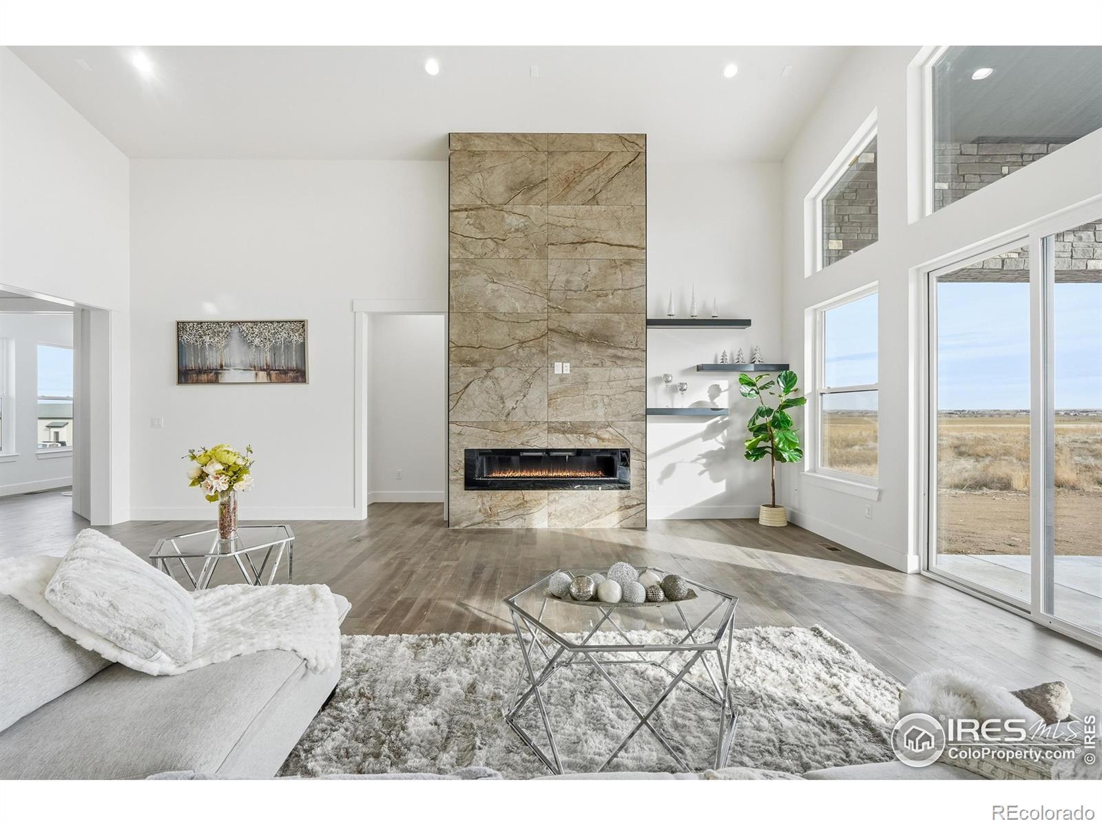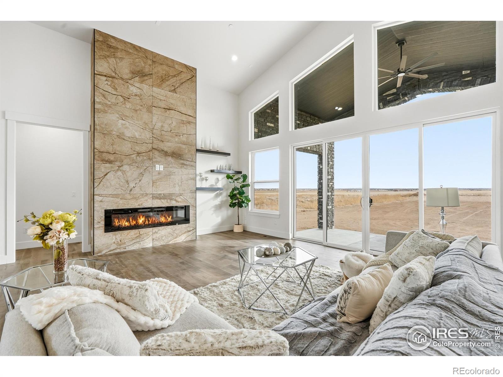 Experience the rare blend of modern luxury and Colorado ranch living in this exceptional new-construction residence, thoughtfully designed for those who value space, comfort, and intentional living. Set on a generous lot within a peaceful ranch-style community, this home offers the freedom of open surroundings with the convenience of nearby city access. From the moment you arrive, the striking modern elevation and covered porches invite you to slow down and enjoy the setting. Inside, expansive windows and soaring ceilings fill the open-concept layout with natural light, creating an effortless flow between the great room, dining area, and chef-inspired kitchen, ideal for both intimate moments and memorable gatherings. A statement fireplace anchors the living space, adding warmth and character year-round. The main-level primary suite is a true retreat, offering privacy, comfort, and a spa-like bath designed for relaxation at the end of the day. Additional main-floor bedrooms and a dedicated office provide flexibility for family, guests, or working from home. The fully finished basement extends the lifestyle even further, featuring multiple bedrooms and baths, an entertainment space, bar area, gym, and room to host, unwind, or create a multigenerational living environment. Every space has been designed with purpose and ease in mind. A rare four-car garage offers abundant room for vehicles, storage, and recreation, perfect for those who embrace an active Colorado lifestyle. Surrounded by wide-open skies and a sense of breathing room, this ranch-style neighborhood offers a peaceful escape while remaining minutes from Brighton's shopping, dining, schools, and commuter routes to Denver and DIA. This is more than a home, it's a place to live expansively, gather meaningfully, and enjoy the luxury of space, both inside and out