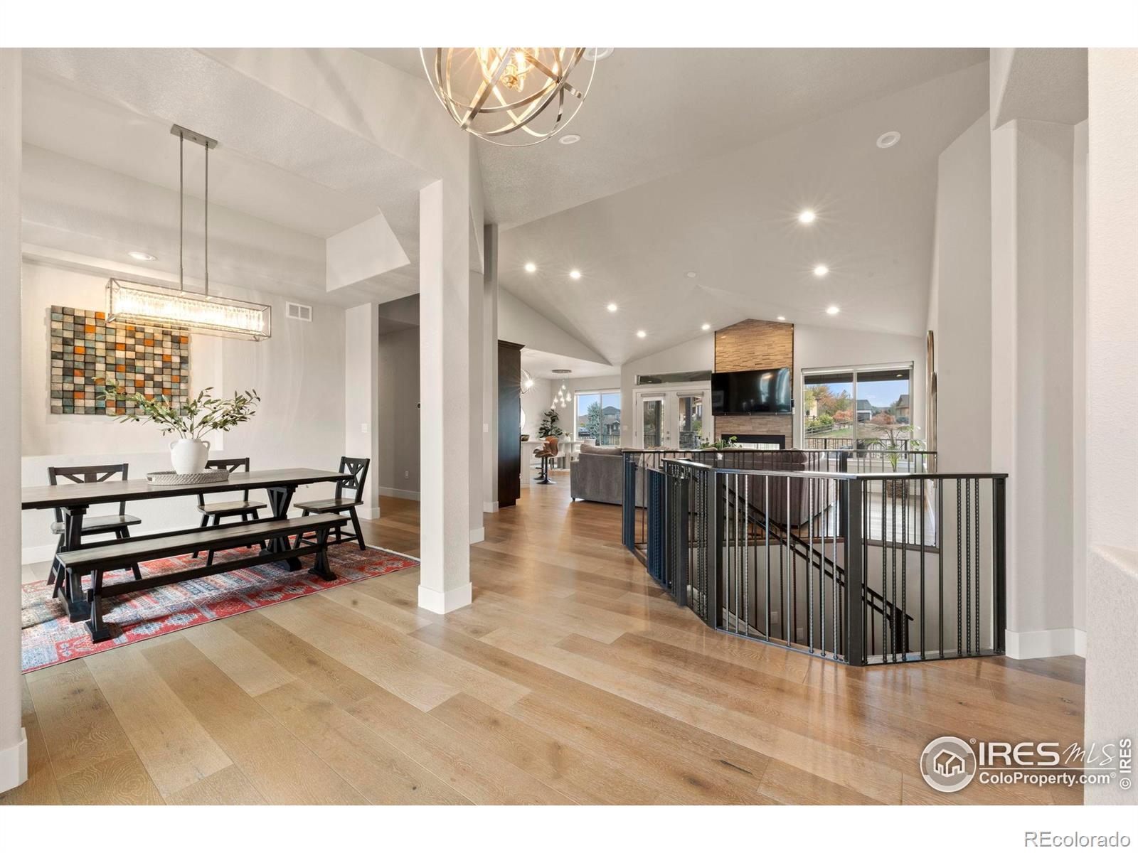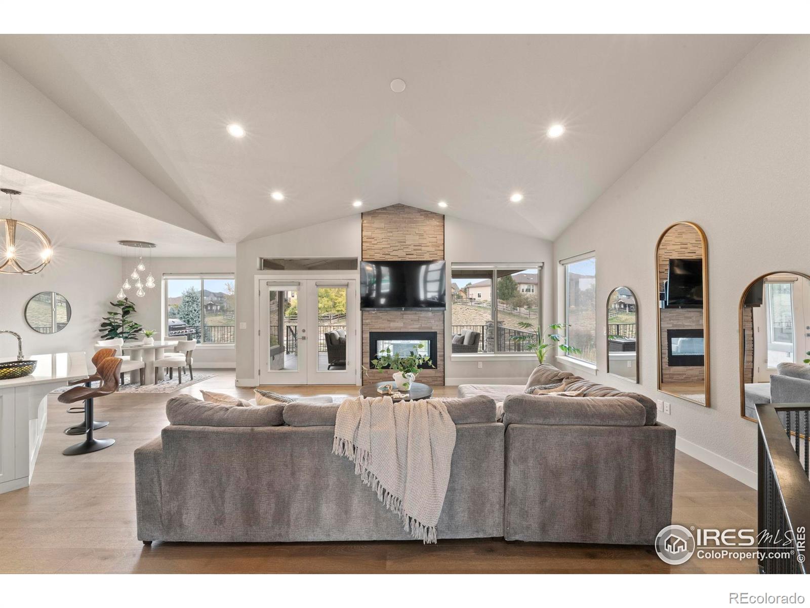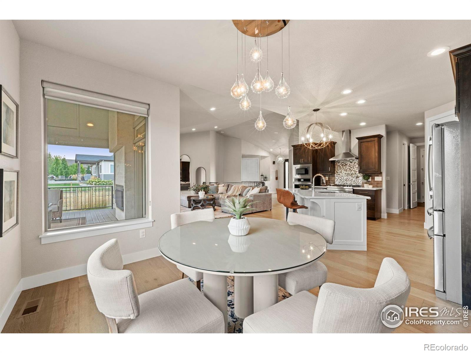 ***OPEN HOUSES SAT 1/17 from 10-12 & SUN 1/18 from 11-2p!*** Set against serene greenbelts on two sides with soft mountain glimpses, this exceptional custom ranch home offers a rare blend of privacy, luxury, and lifestyle in Windsor's coveted HighPointe Estates. Designed with both sophistication and everyday living in mind, the open layout is highlighted by vaulted ceilings, wide-plank engineered hardwood flooring, and thoughtfully curated designer lighting. At the heart of the home, the chef-inspired kitchen features premium JennAir appliances, modern cabinetry, and an oversized island ideal for entertaining and casual gatherings alike. Expansive indoor-outdoor living continues onto the covered deck, where a dramatic double-sided fireplace overlooks the landscaped yard and tranquil greenbelt walking path beyond. The primary suite serves as a true retreat, complete with a spa-style bathroom offering a soaking tub, oversized walk-in shower, dual vanities, a private laundry space, and a bright, spacious walk-in closet. Downstairs, the finished basement is designed for hosting and relaxation with a built-in projector, Sonos surround sound, and custom metal railings that elevate the modern aesthetic. An oversized 1,112 sqft 3+ car garage with epoxy floors provides exceptional storage and flexibility. Just a short walk from the community pool, tennis courts, clubhouse, and playground, this home delivers refined living in one of Windsor's most desirable neighborhoods where luxury meets the Colorado lifestyle.
