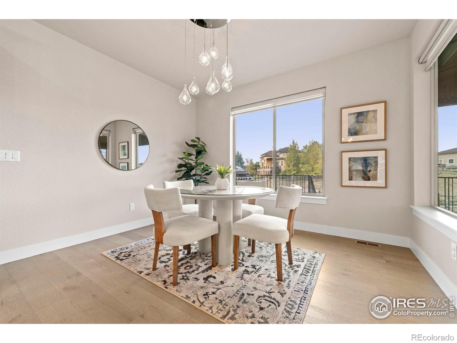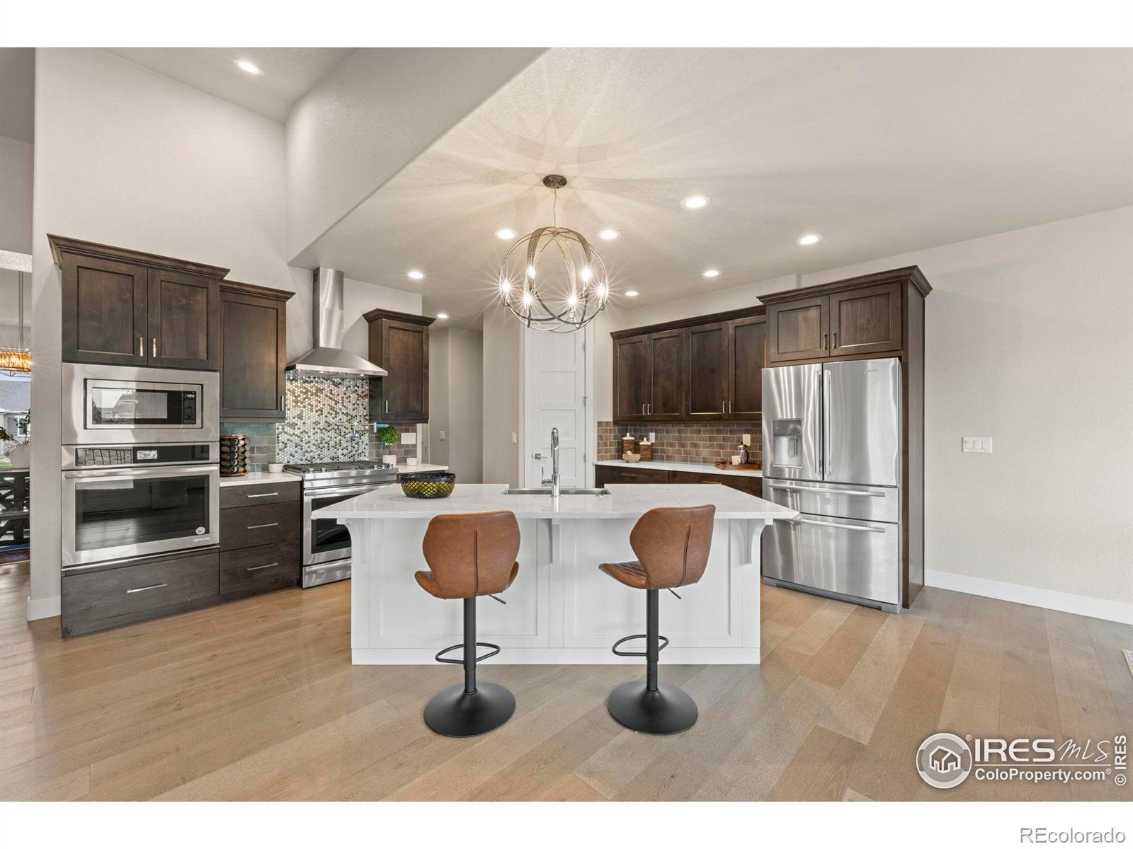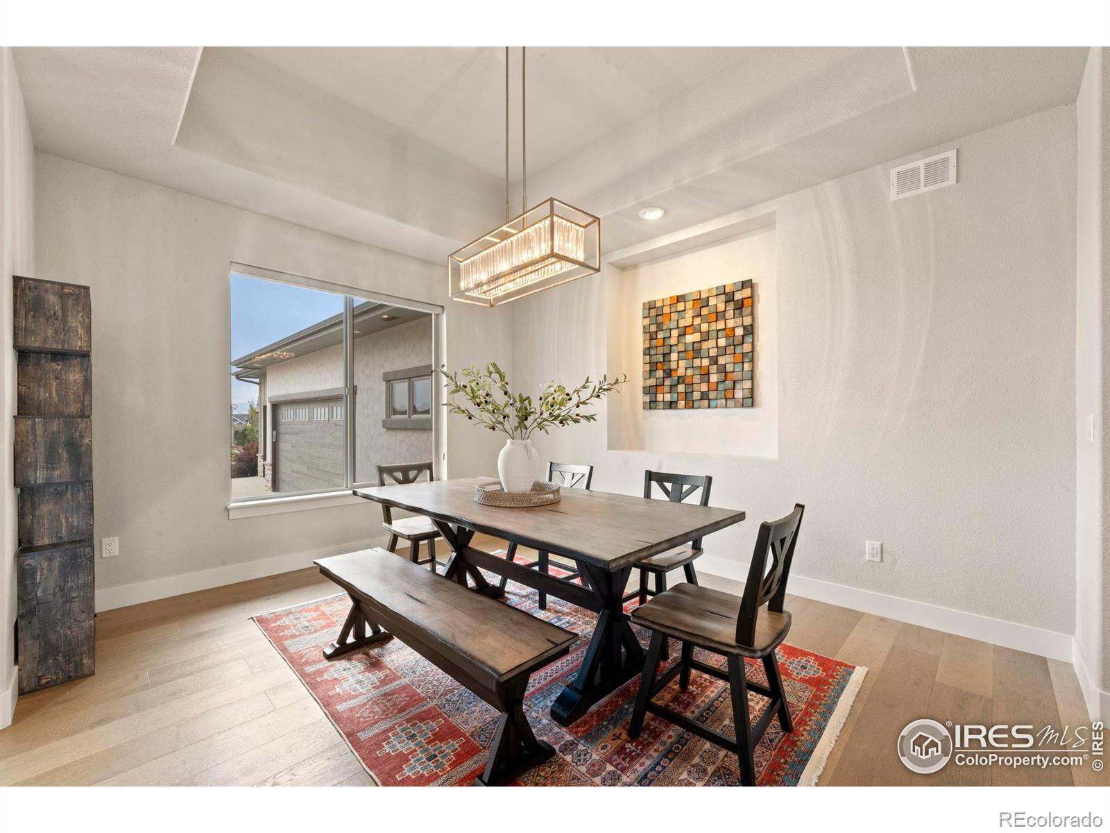 ***OPEN HOUSES SAT 1/17 from 10-12 & SUN 1/18 from 11-2p!*** Set against serene greenbelts on two sides with soft mountain glimpses, this exceptional custom ranch home offers a rare blend of privacy, luxury, and lifestyle in Windsor's coveted HighPointe Estates. Designed with both sophistication and everyday living in mind, the open layout is highlighted by vaulted ceilings, wide-plank engineered hardwood flooring, and thoughtfully curated designer lighting. At the heart of the home, the chef-inspired kitchen features premium JennAir appliances, modern cabinetry, and an oversized island ideal for entertaining and casual gatherings alike. Expansive indoor-outdoor living continues onto the covered deck, where a dramatic double-sided fireplace overlooks the landscaped yard and tranquil greenbelt walking path beyond. The primary suite serves as a true retreat, complete with a spa-style bathroom offering a soaking tub, oversized walk-in shower, dual vanities, a private laundry space, and a bright, spacious walk-in closet. Downstairs, the finished basement is designed for hosting and relaxation with a built-in projector, Sonos surround sound, and custom metal railings that elevate the modern aesthetic. An oversized 1,112 sqft 3+ car garage with epoxy floors provides exceptional storage and flexibility. Just a short walk from the community pool, tennis courts, clubhouse, and playground, this home delivers refined living in one of Windsor's most desirable neighborhoods where luxury meets the Colorado lifestyle.