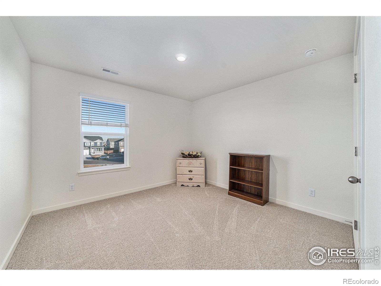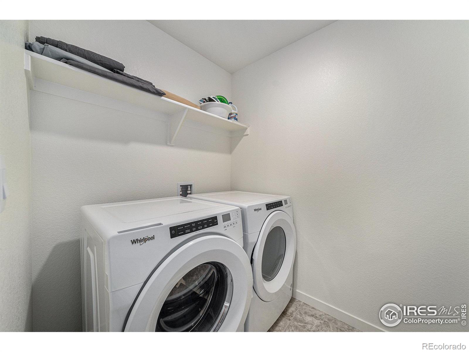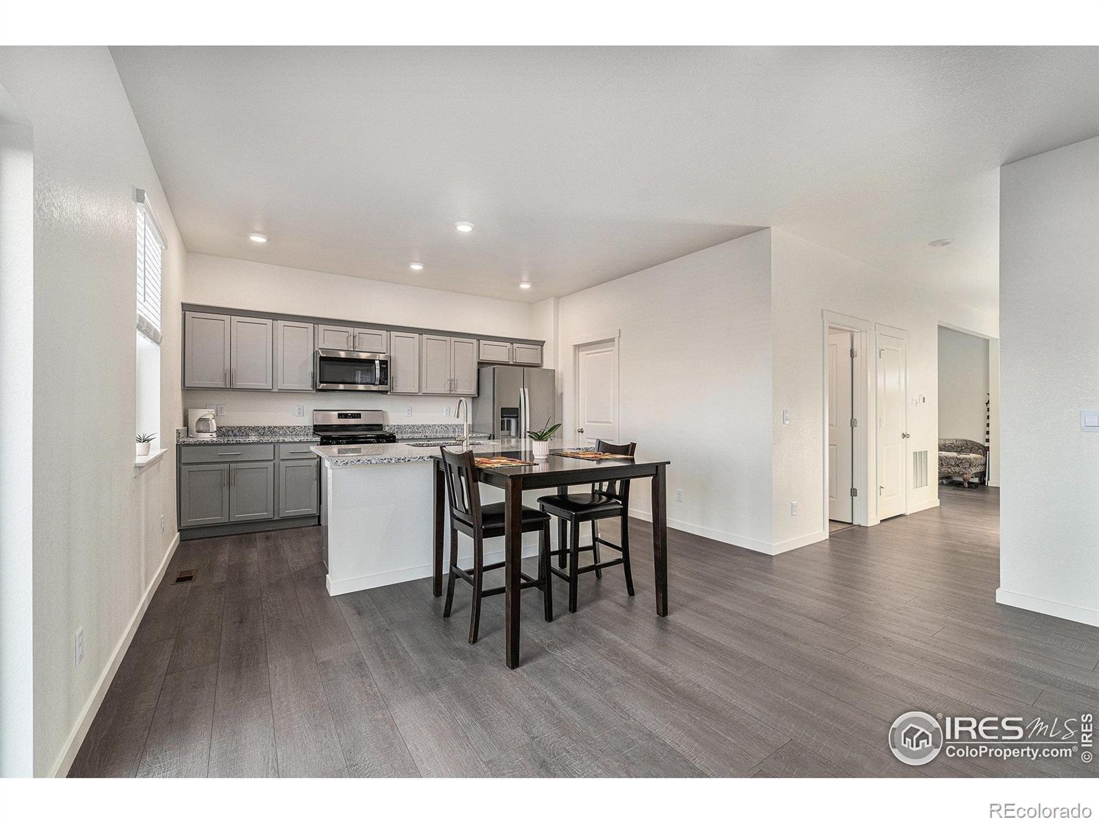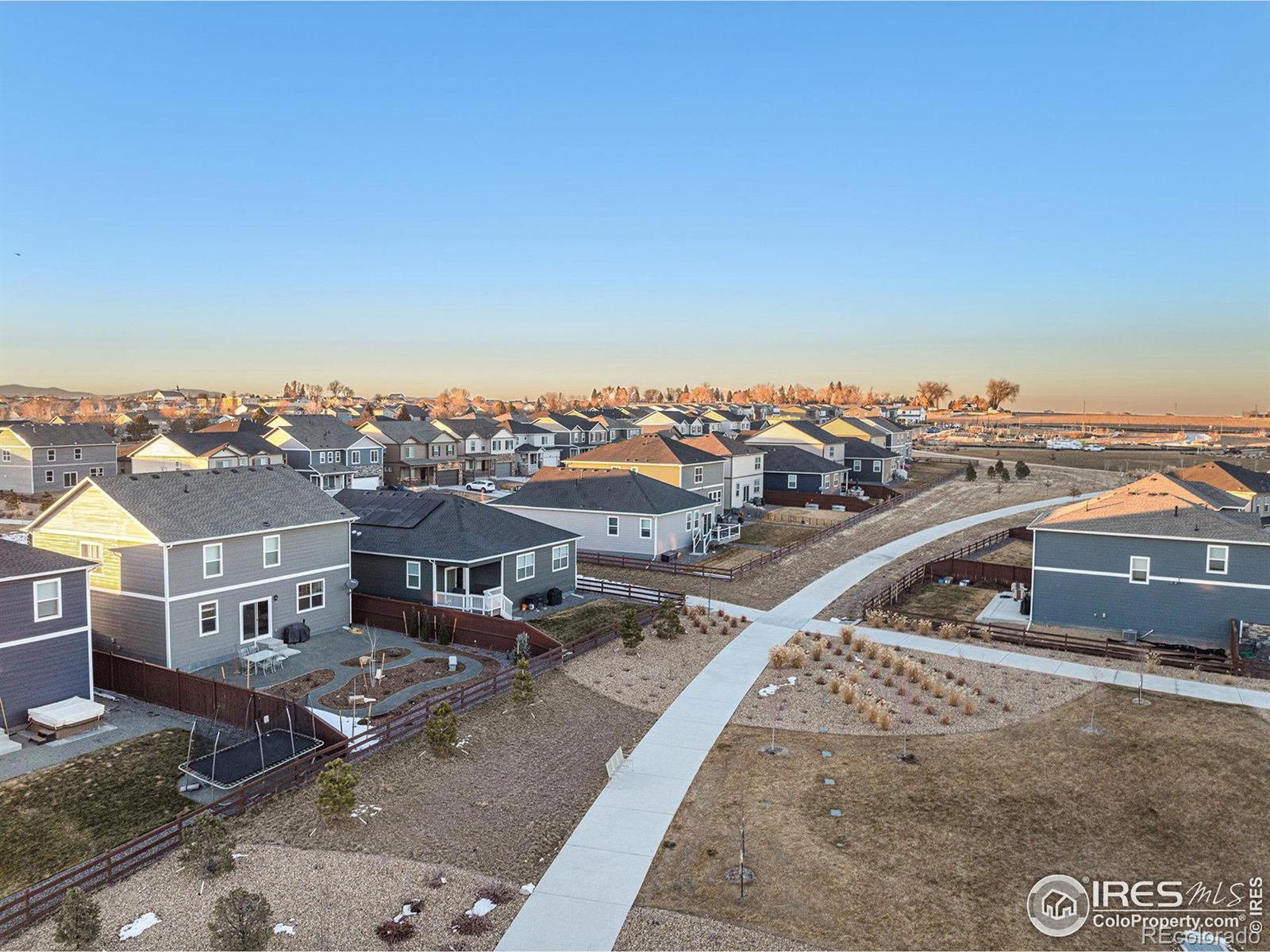 Welcome to this nearly new, move-in-ready two-story home in Johnstown, Colorado, located at 439 Bluebird Road. This spacious 4-bedroom, 3-bathroom home offers 2,481 square feet and sits on one of the best lots in the neighborhood, backing directly to one of the community's five parks with a walking path that leads to the main park just steps away. Conveniently located near I-25, this home offers an easy commute while maintaining a peaceful, park-like setting. The open-concept main level features wide-plank luxury vinyl flooring and a beautifully appointed kitchen with Breckenridge Gray cabinetry, granite countertops, stainless steel appliances, a gas range, and a walk-in pantry. The stainless-steel refrigerator is included, making this home truly move-in ready. Additional features include a tankless water heater, Smart Home technology, and a 4-foot crawlspace for extra storage. Upstairs, the primary suite includes an expansive walk-in closet and a private ensuite with double vanity sinks and quartz countertops. Three additional bedrooms, a full bathroom with double vanities and quartz counters, a loft, a large linen closet, and a walk-in laundry room complete the upper level. Washer and dryer are included, along with new custom blinds throughout. Enjoy the professionally xeriscaped backyard, designed for low maintenance with a natural Colorado feel. Relax or entertain while overlooking the open park space just beyond your backyard. This exceptional Johnstown CO home for sale combines modern finishes, a prime park-backing lot, and a desirable location.