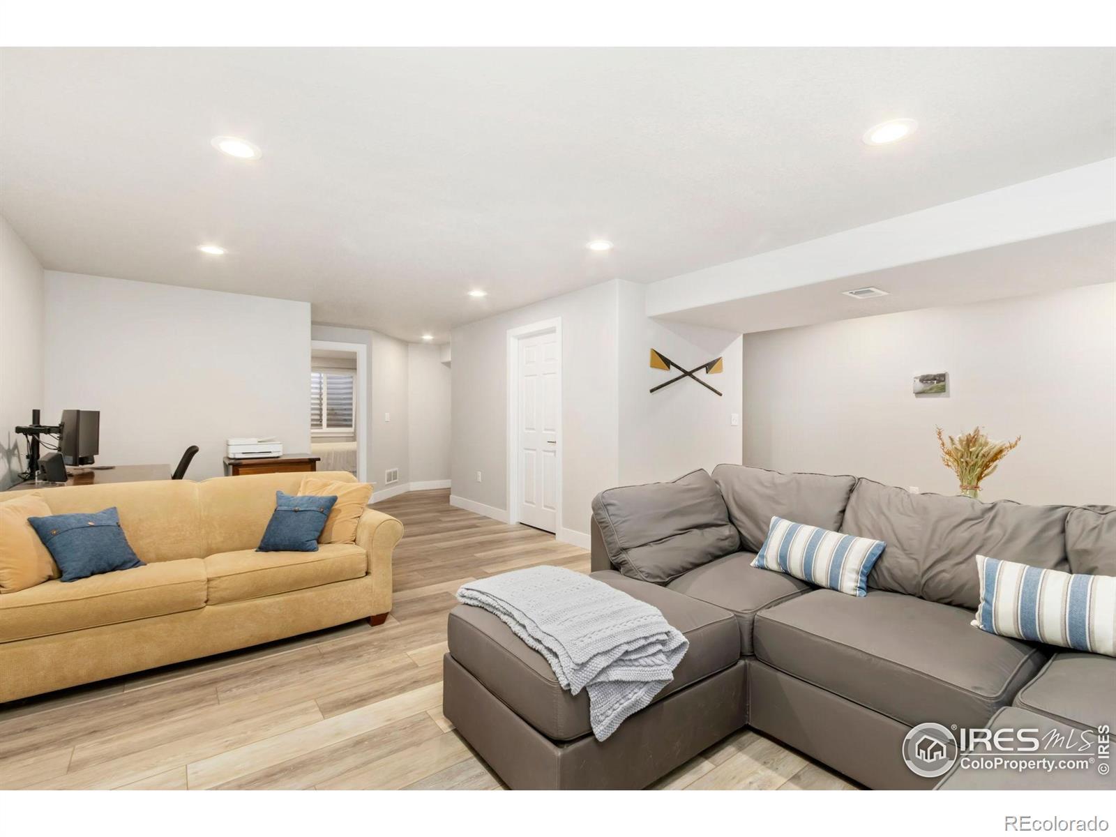 Nestled at 1526 Corydalis Court on a peaceful cul-de-sac in southwest Fort Collins, this beautifully maintained ranch-style home is the epitome of comfort meeting style in one of the city's most desirable west-end neighborhoods. With 4 spacious bedrooms, 3 bathrooms, and 2,459 sq ft of thoughtfully designed living space, it's a perfect blend of everyday livability and entertaining flair. Inside, warm luxury vinyl plank floors flow through an open-concept layout that seamlessly connects the living, dining, and kitchen areas - the kitchen itself shining with sleek quartz countertops, crisp white cabinetry, and a stylish tile backsplash. The generous primary suite includes its own sitting area and dual closets, while the finished basement provides flexible space with a media room, guest quarters, and a 3/4 bath. . Outside, enjoy front and back patios, a fenced yard with mature landscaping, and the easy walkability to Westfield Park, nearby schools, and scenic Fort Collins trails. This home balances thoughtful upgrades with timeless appeal - a truly fabulous Colorado residence.