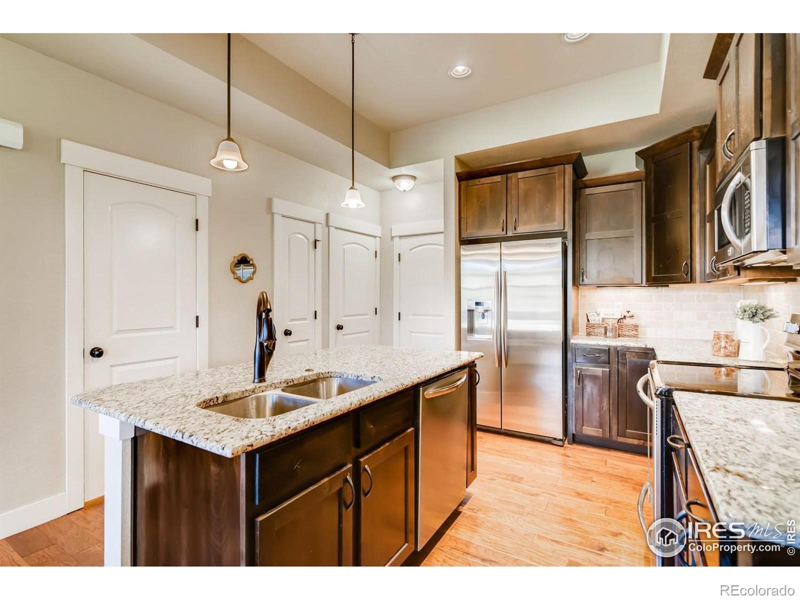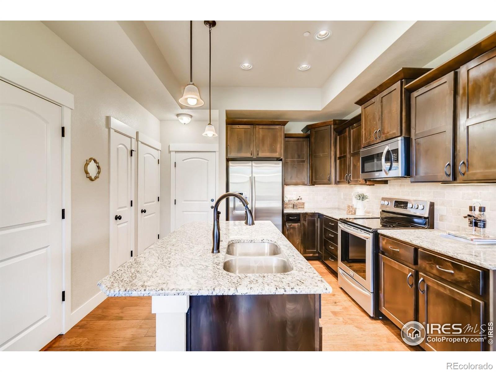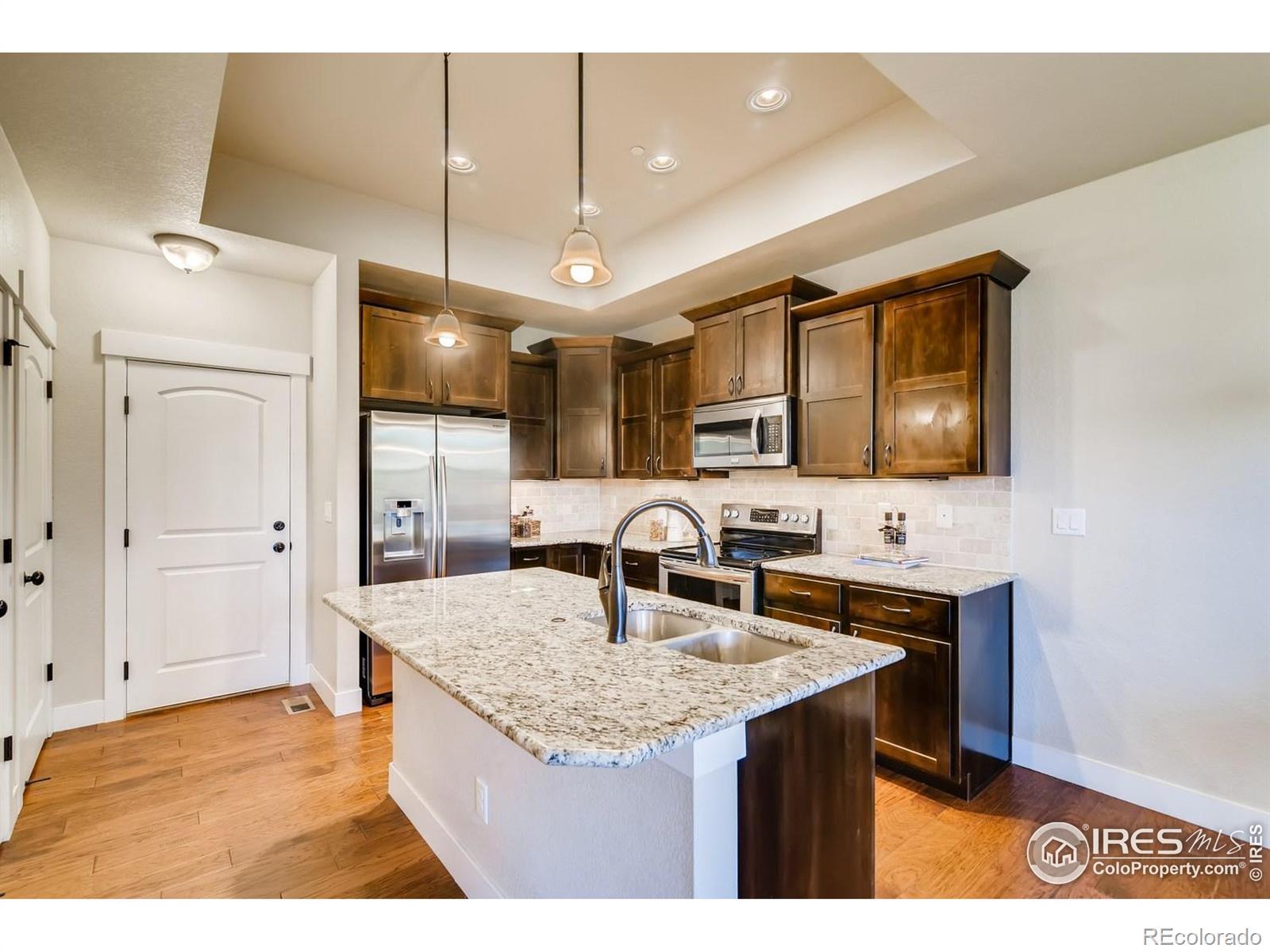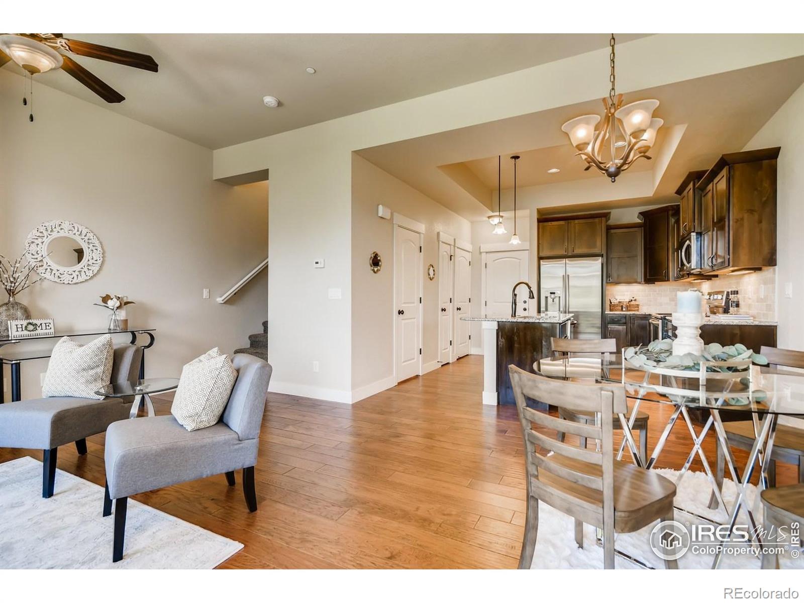 Easy living in the Rigden Farm community! This two-story townhouse-style unit in the Lagrange Condos offers a perfect lock-and-leave lifestyle with low-maintenance living and quick access to all that Fort Collins has to offer. The main level is designed for comfort and flow, featuring engineered hardwood flooring throughout, a cozy fireplace, and seamless connection between the living, dining, and kitchen spaces. Whip up your favorite meals in the kitchen that features granite countertops, stainless steel appliances, and ample prep space and storage. Upstairs, you'll find two spacious bedroom suites, each with its own private bathroom and walk-in closet. Additionally, an office loft offers a flexible space that can be used as a dedicated workspace, a reading nook, or a creative corner. The finished basement extends your living space further with an entertainment area, plus an additional bedroom and bathroom for guests. The home includes a convenient 2-car garage, providing ample space for vehicles and storage. Spend more time enjoying your home and less time worrying about maintenance with the HOA handling most exterior upkeep. Convenient location, with proximity to local shopping centers, restaurants, parks, and other amenities. Just a few blocks to King Soopers, Orange Theory, Qdoba, William Oliver's Publick House, and Krazy Karl's Pizza. This condo is an ideal choice for a personal home or a passive income opportunity!