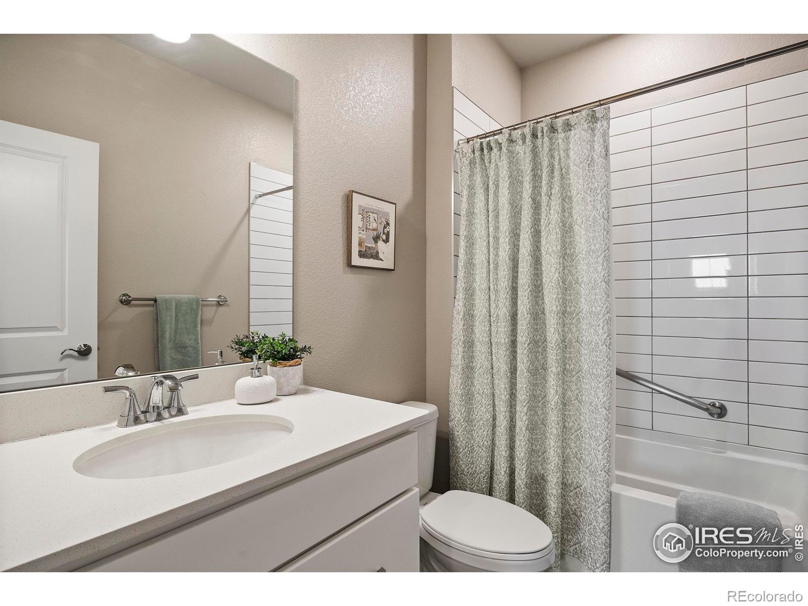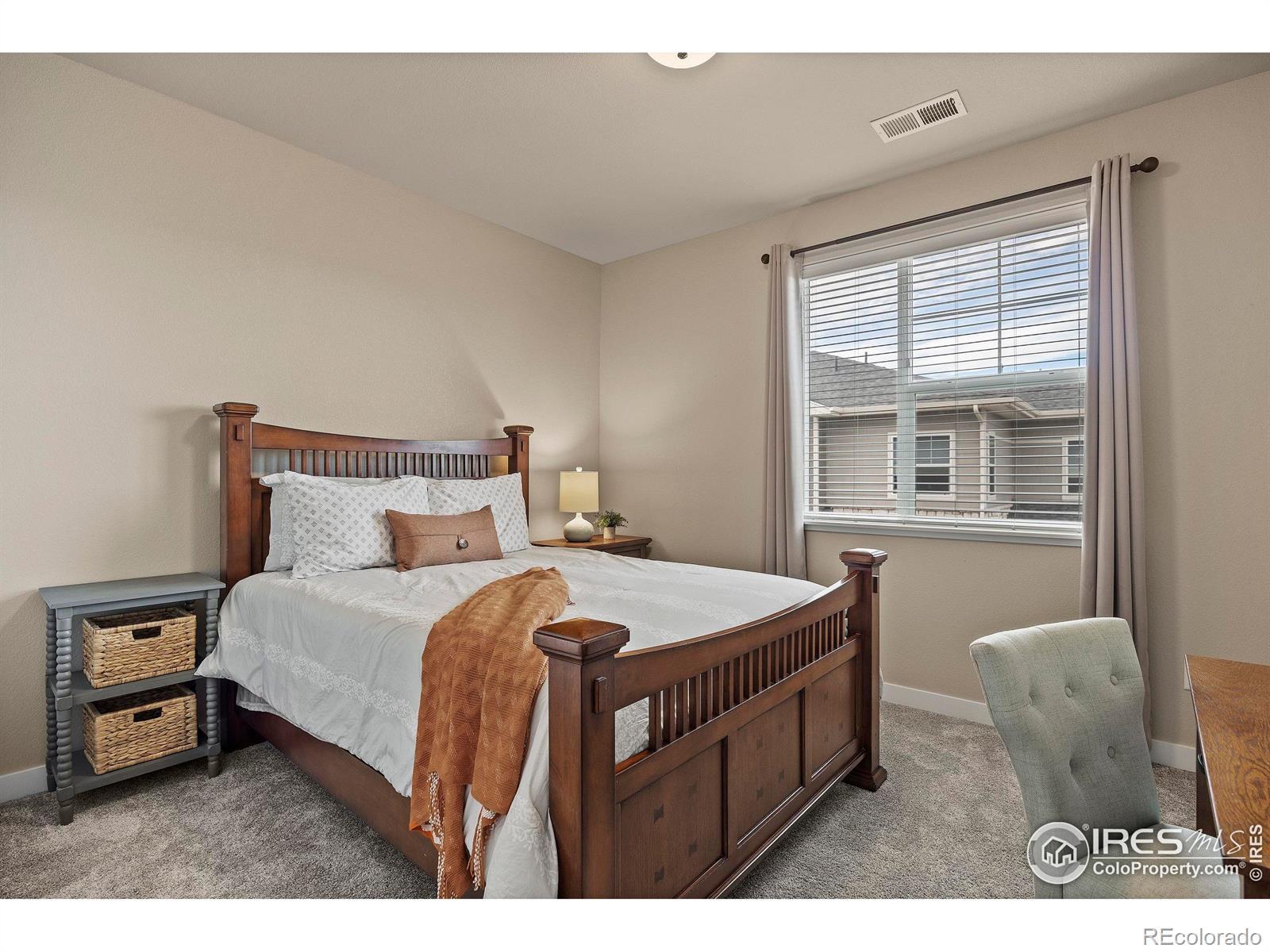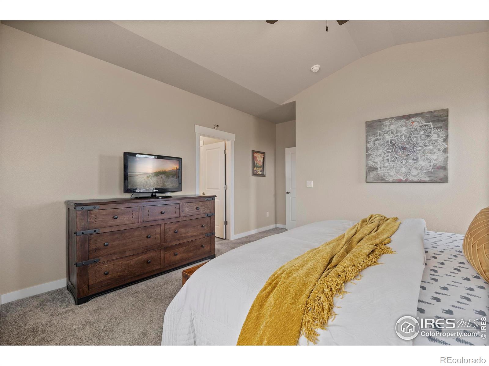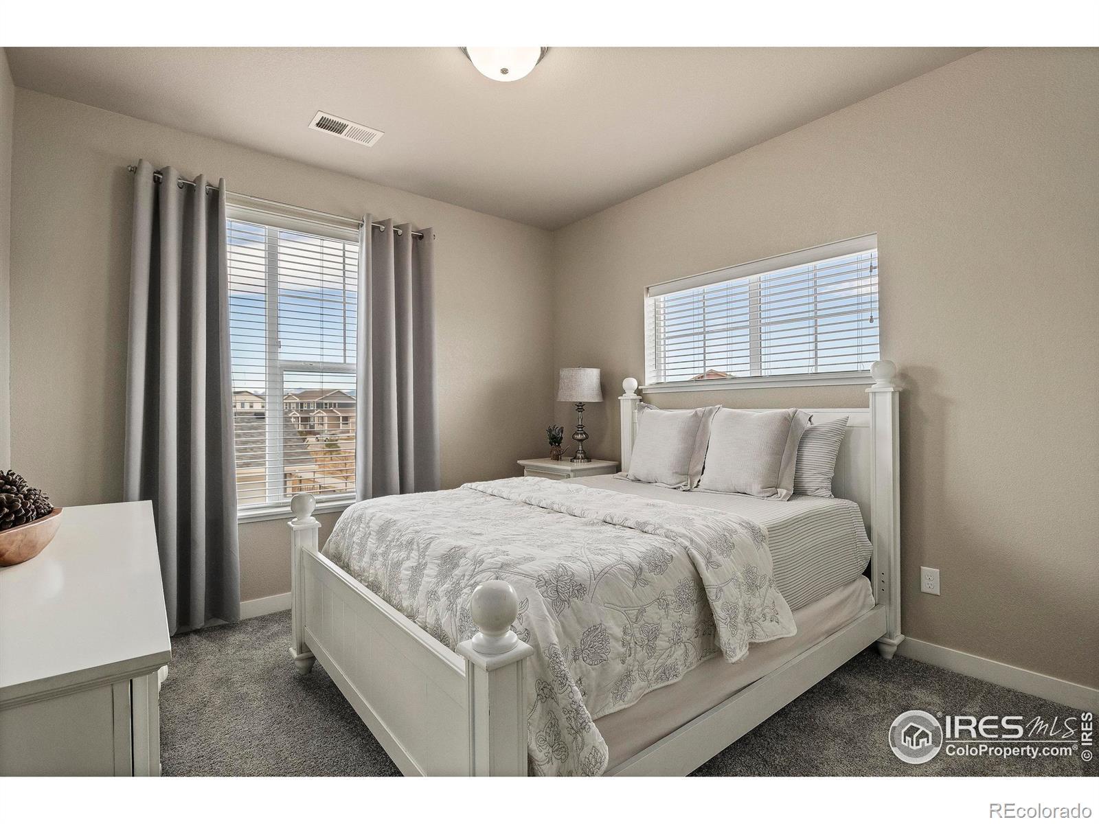 Built by Landmark in 2023, this elegant 3BD, 3BA attached townhome-style condo offers a sophisticated blend of modern finishes, quality construction, thoughtful layout, and timeless appeal.The open-concept main level is beautifully appointed with wide-plank laminate flooring, quartz countertops in the kitchen and baths, and a gas stove. Brushed nickel plumbing fixtures and lighting add a polished touch, while the stainless steel refrigerator anchors the sleek, contemporary kitchen-perfect for both everyday living and elevated entertaining. Past the kitchen is a conveniently-located attached two-car garage, alley-load.The upper level provides a serene retreat with three well-appointed bedrooms, two full baths, a versatile loft ideal for a home office or lounge, and the convenience of second-floor laundry. Window treatments and a tankless hot water heater are among many of the features of this beautiful home. The other major components still have a long life and this home is in pristine condition, having been very lightly lived in by the original owner.Overlooking open space, this end-unit has an exclusive feel, with lots of room to breathe and a fenced front porch! Surrounded by natural open spaces, this home is ideally situated within the coveted Lakes at Centerra community- an award-winning and amenity-rich community features miles of trails, glistening lakes, many different species of wildlife, an excellent neighborhood school, easy access to Centerra's shops, and more. Community pool is also in the works!
